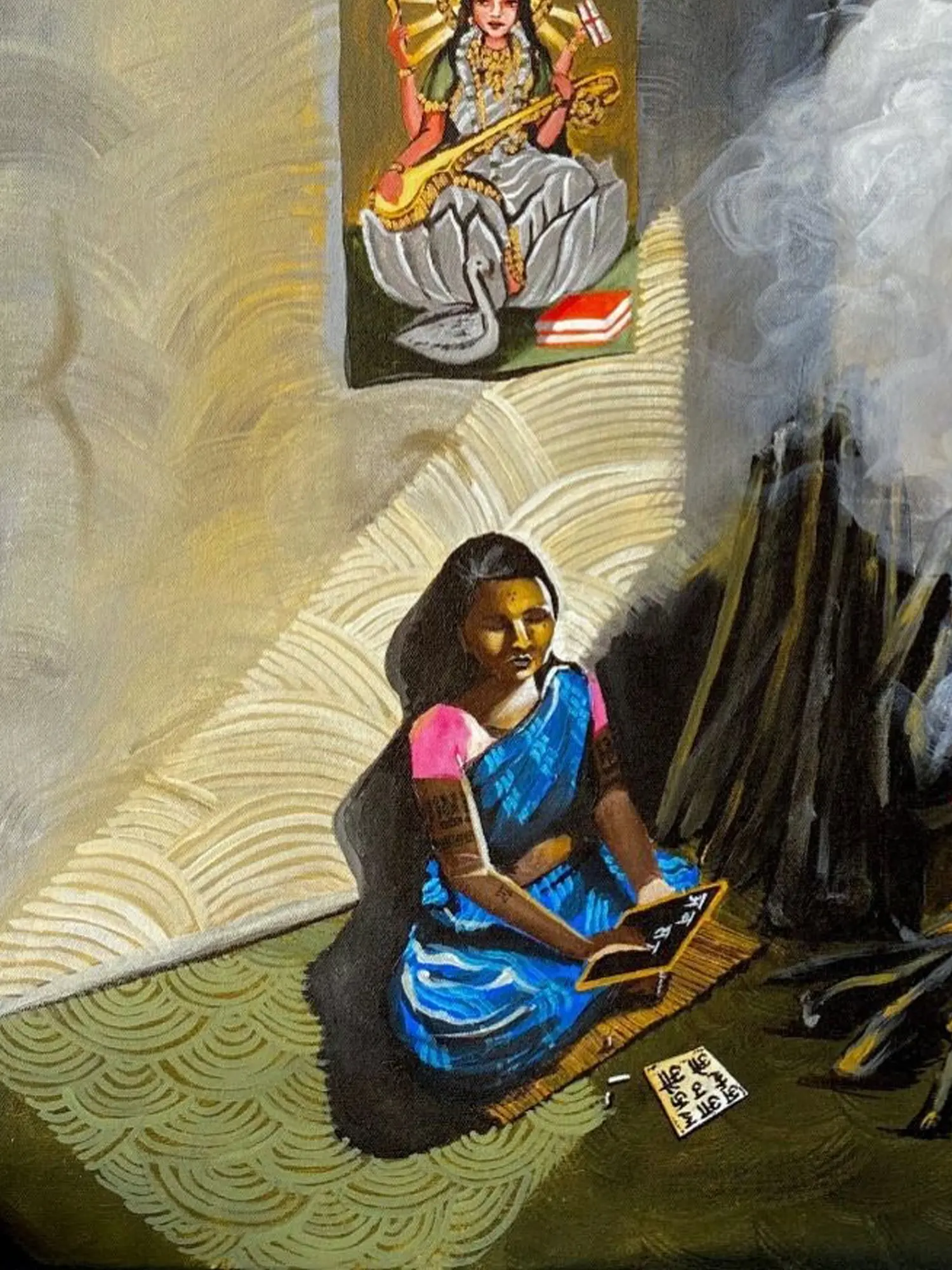 Shree Shakti Saraswati | Acrylic On Handmade Paper | By Shruti Subramani