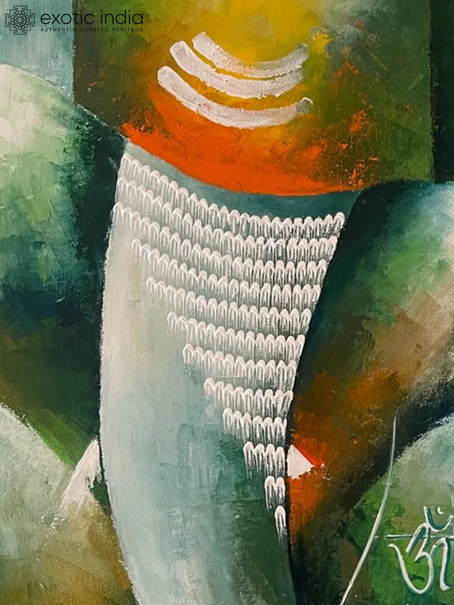 Colorful Lord Ganapati Seated on Lotus | Painting by Pragga Majumder