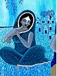 The use of varying shades of blue in the painting signifies spirituality and the vast expanse of the universe. The subtle variations in tone add a sense of movement and depth, drawing the viewer into the enchanting world of the Gandharvis' music. The overall blue palette envelops the painting with a serene and introspective ambiance for your space.