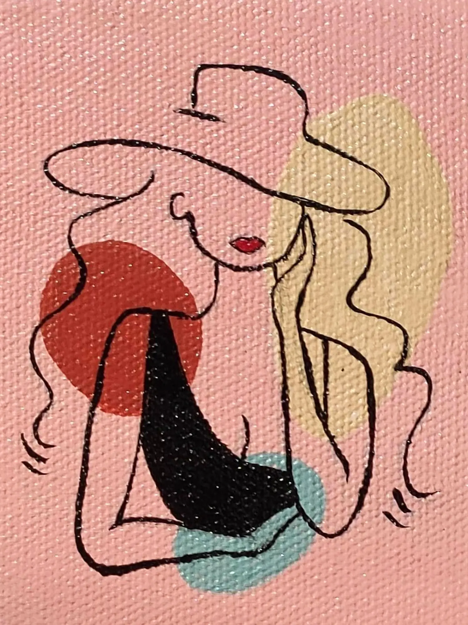 In her Acrylic on Stretched Canvas, Shraddha Shirsat skillfully employs the retro board print style to portray a glamorous lady, infusing the artwork with nostalgic charm. Against a light pink backdrop, the figure comes to life through bold black lines, enhancing the elegance and poise of the subject. The strategic use of dots not only adds a touch of vintage allure but also contributes to the overall retro aesthetic.