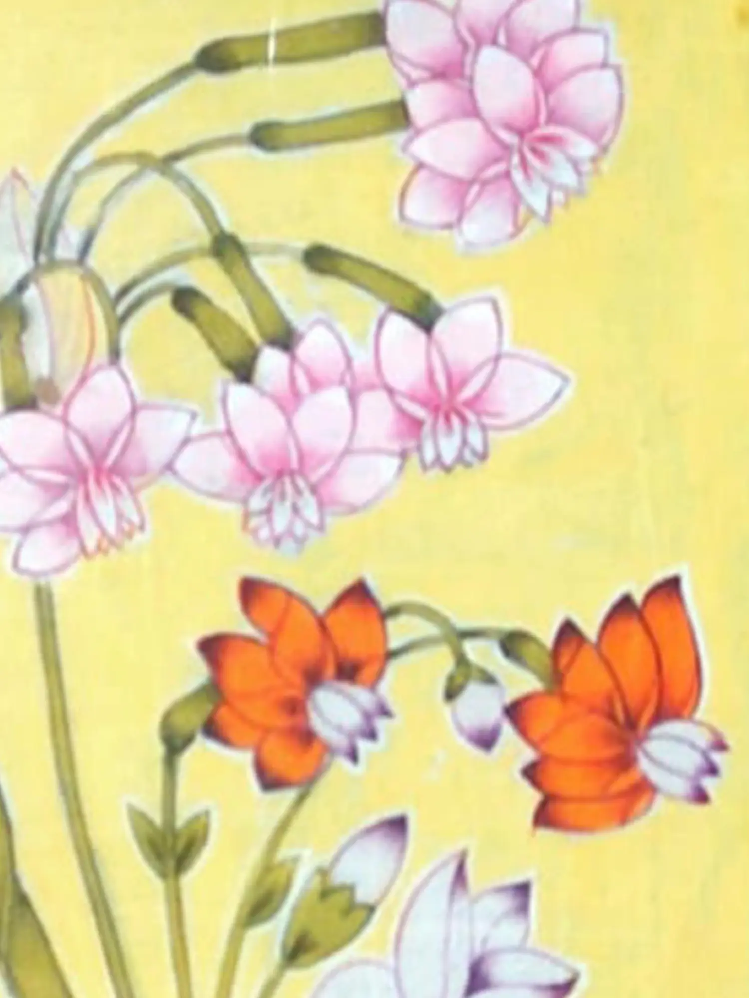 Drawing inspiration from the rich heritage of Mughal miniature paintings, renowned for their exquisite detail and celebration of flora, this work embodies a similar reverence for nature's delicate architecture. This artistic tradition often infused its creations with symbolic meanings, and here, the blooming flowers can be seen as representations of purity, renewal, and the transient beauty of life, echoing ancient aesthetic sensibilities. You will find a timeless elegance that resonates with centuries of artistic appreciation.