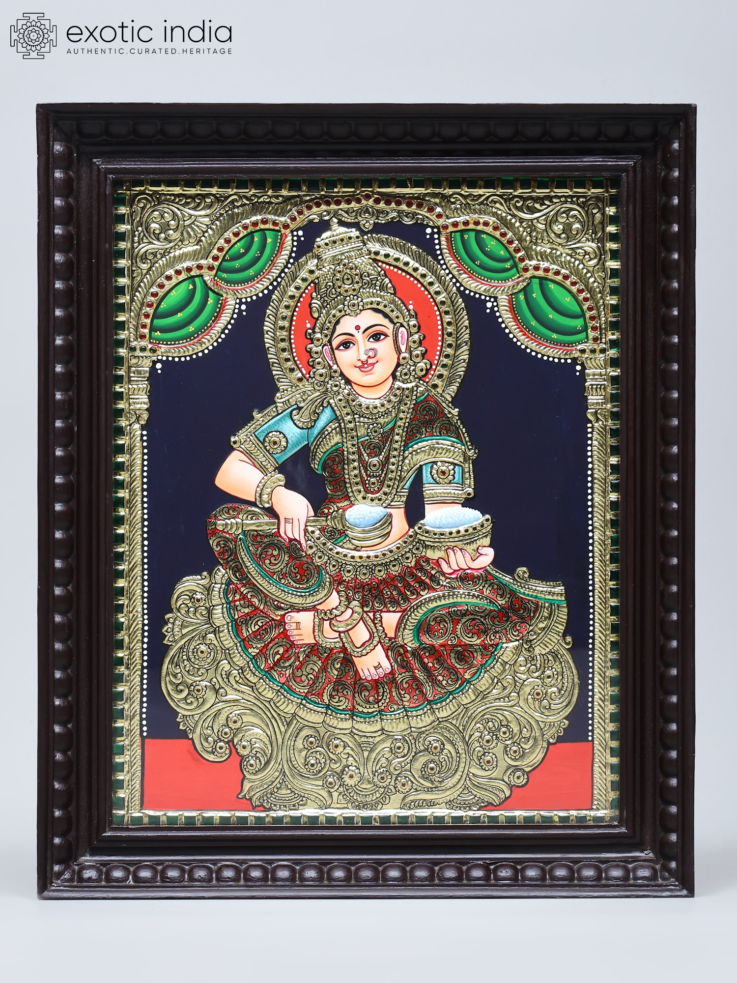 Goddess Annapurna Tanjore Painting | Traditional Colors With 24K Gold | Teakwood Frame | Gold & Wood | Handmade | Made In India
