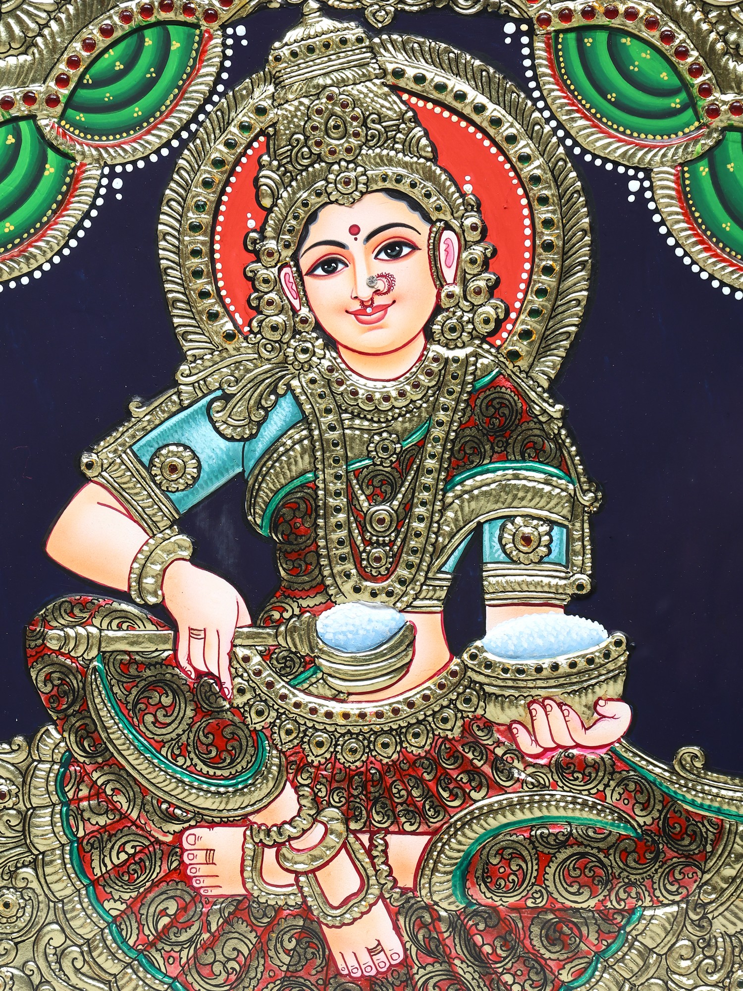 Goddess Annapurna Tanjore Painting | Traditional Colors With 24K Gold | Teakwood Frame | Gold & Wood | Handmade