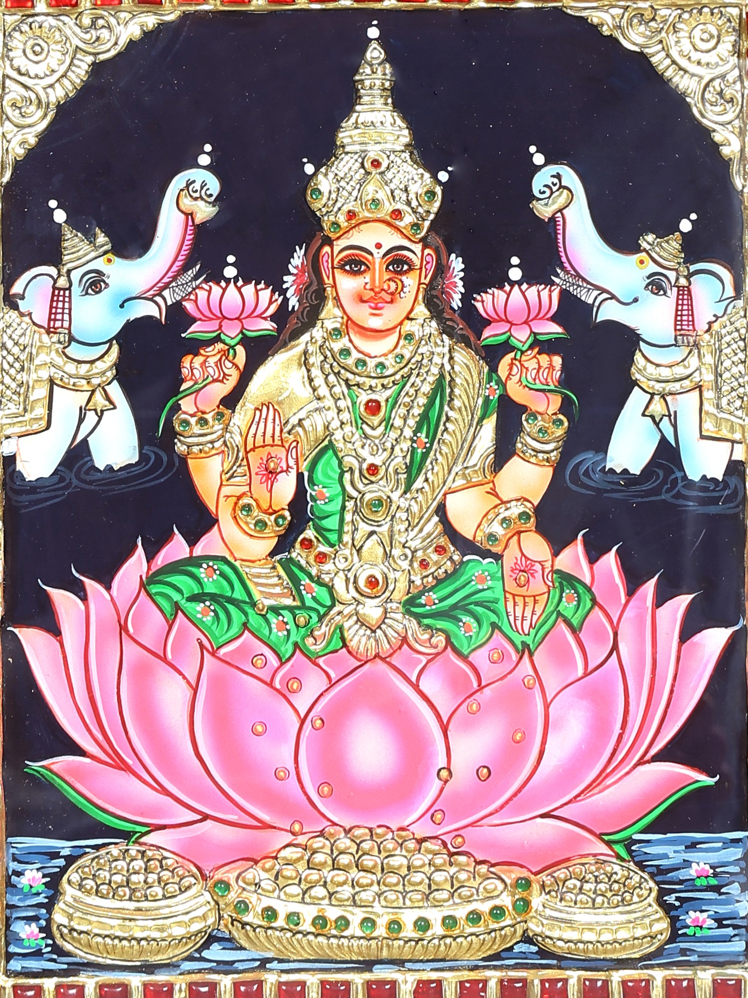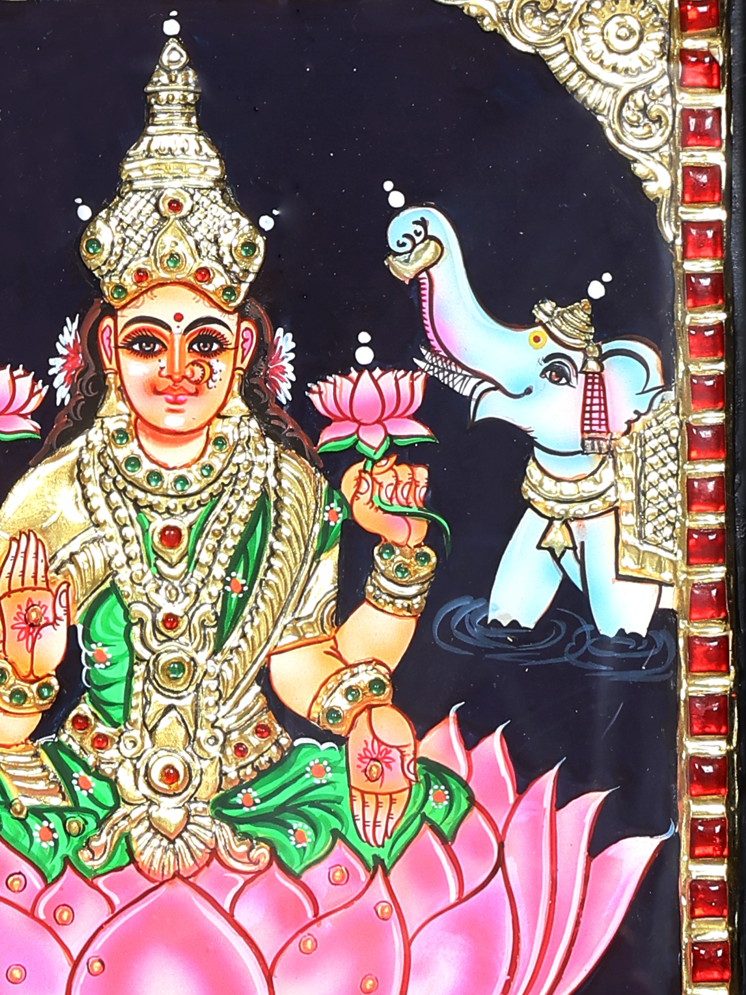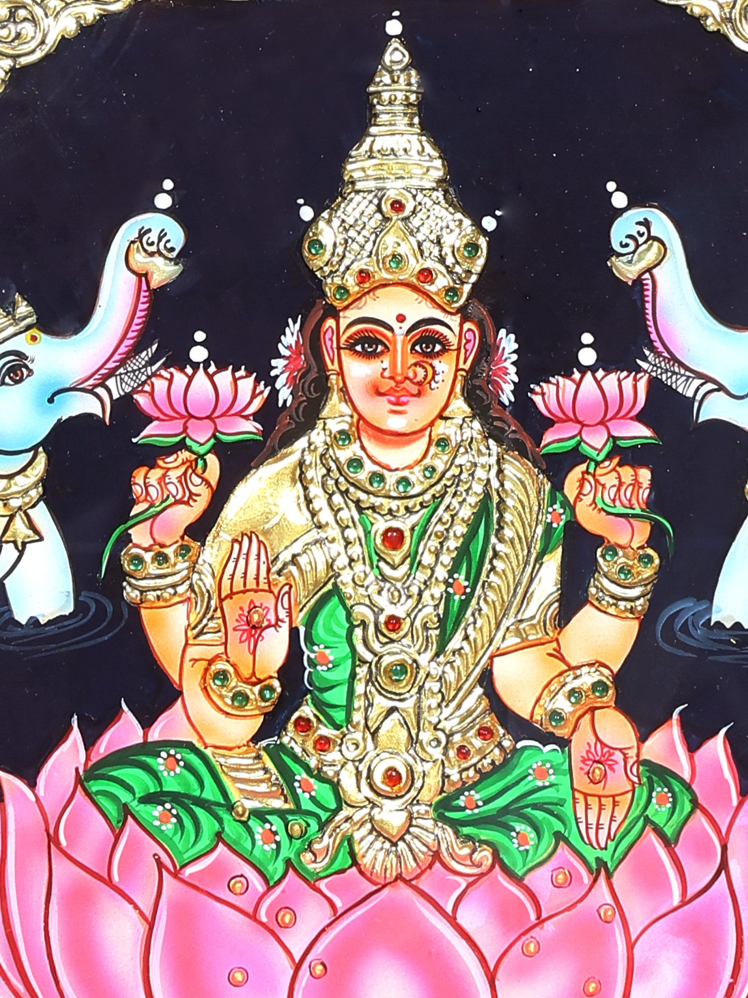 Goddess Gajalakshmi | 24 Karat Gold Work | Framed Tanjore Painting