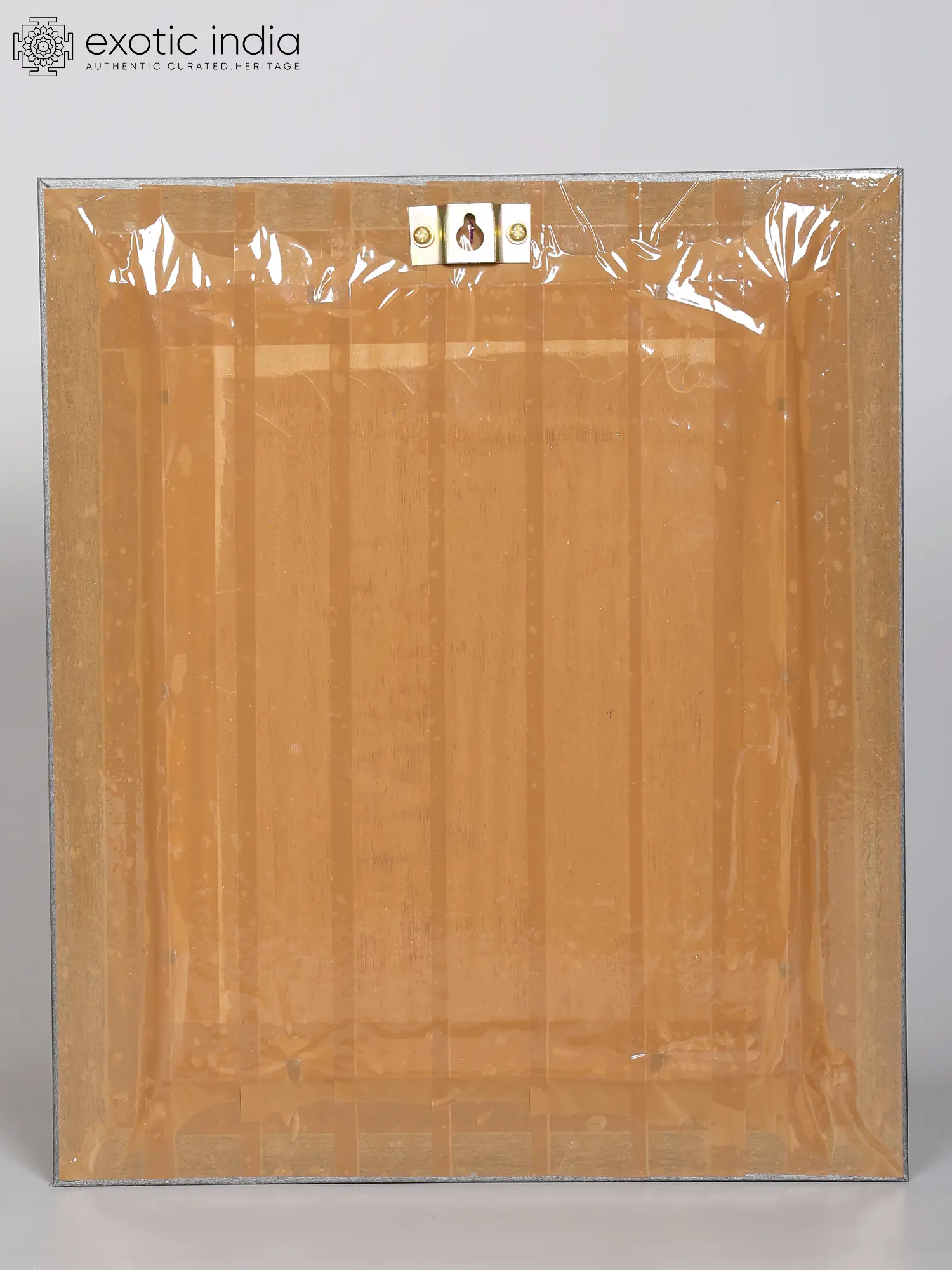 Tanjore paintings, originating from the town of Thanjavur in Tamil Nadu, are renowned for their unique style and enduring appeal. This painting is made using the traditional gesso work technique, where the canvas is layered with a paste made from chalk powder, tamarind seed powder, and Arabic gum. This creates a raised surface that is then adorned with vibrant colors and shimmering gold foil. The meticulous application of gold leaf, a hallmark of Tanjore art, adds a regal and captivating dimension. Precious and semi-precious stones are often embedded to enhance the visual splendor, making each piece a treasure to behold. The artists employ a distinctive color palette, dominated by rich reds, greens, blues, and yellows, each shade carefully chosen to enhance the overall aesthetic. The skilled artisans who create these paintings infuse each piece with devotion and dedication, ensuring that the tradition of Tanjore art continues to thrive.