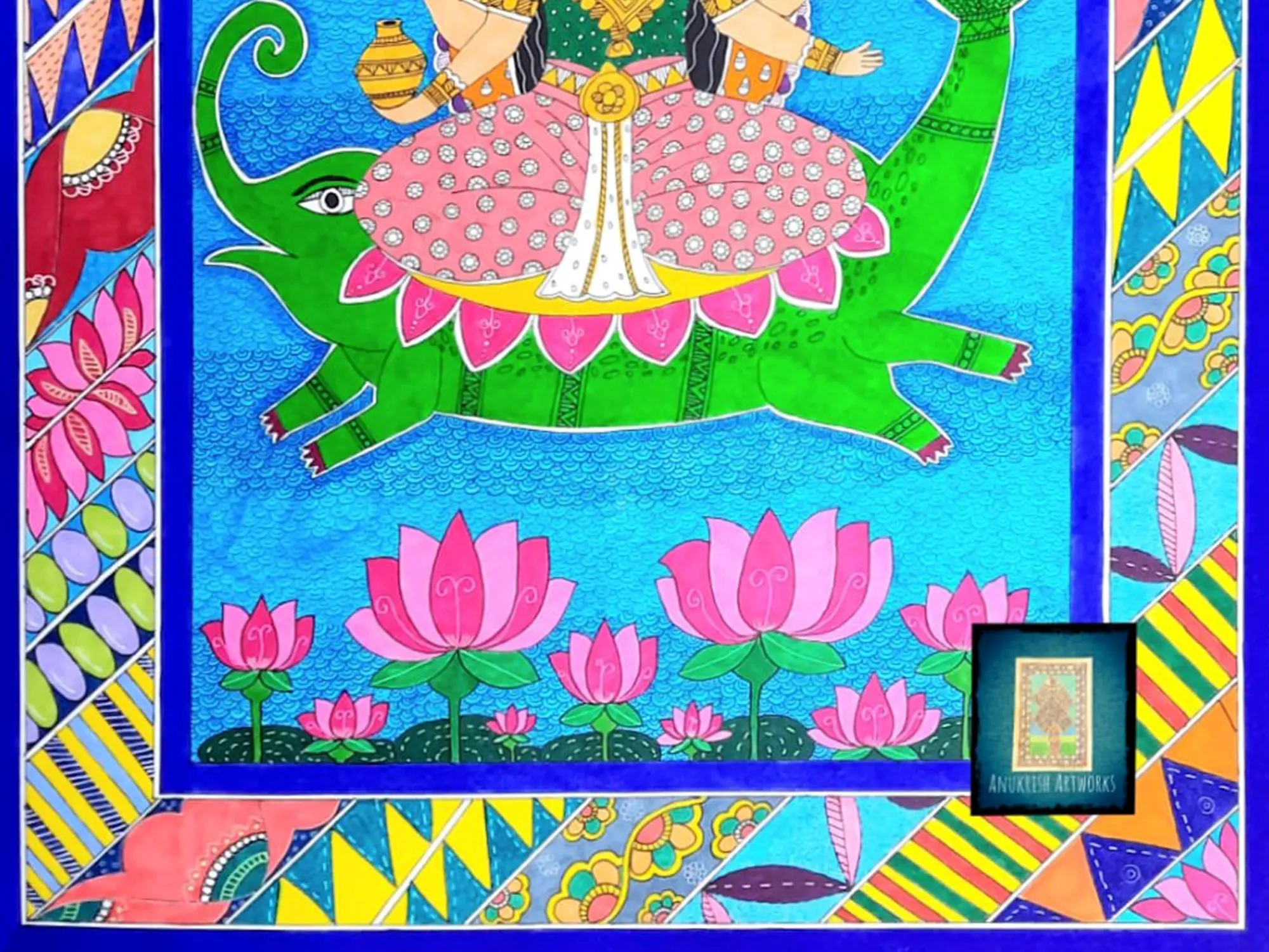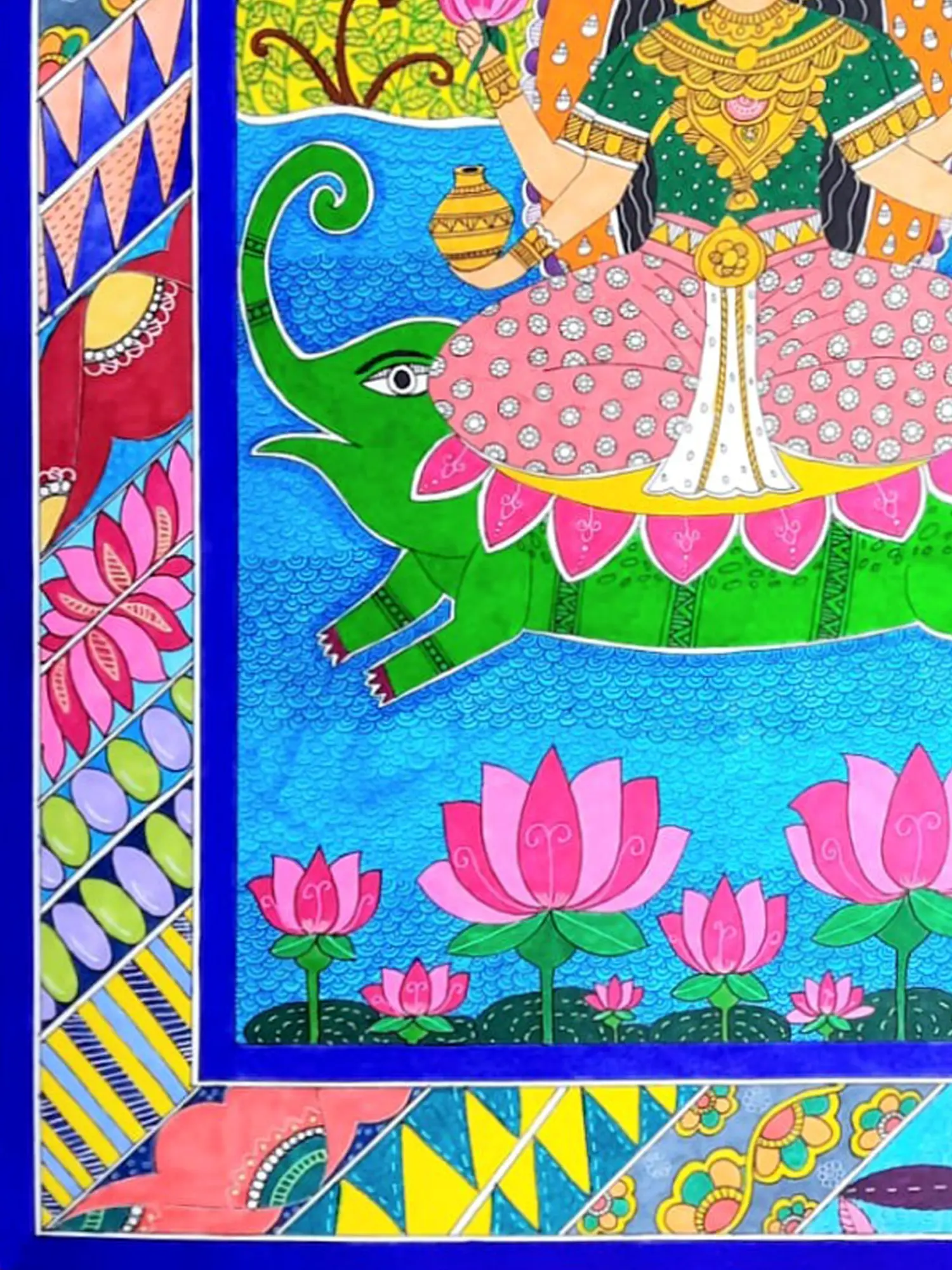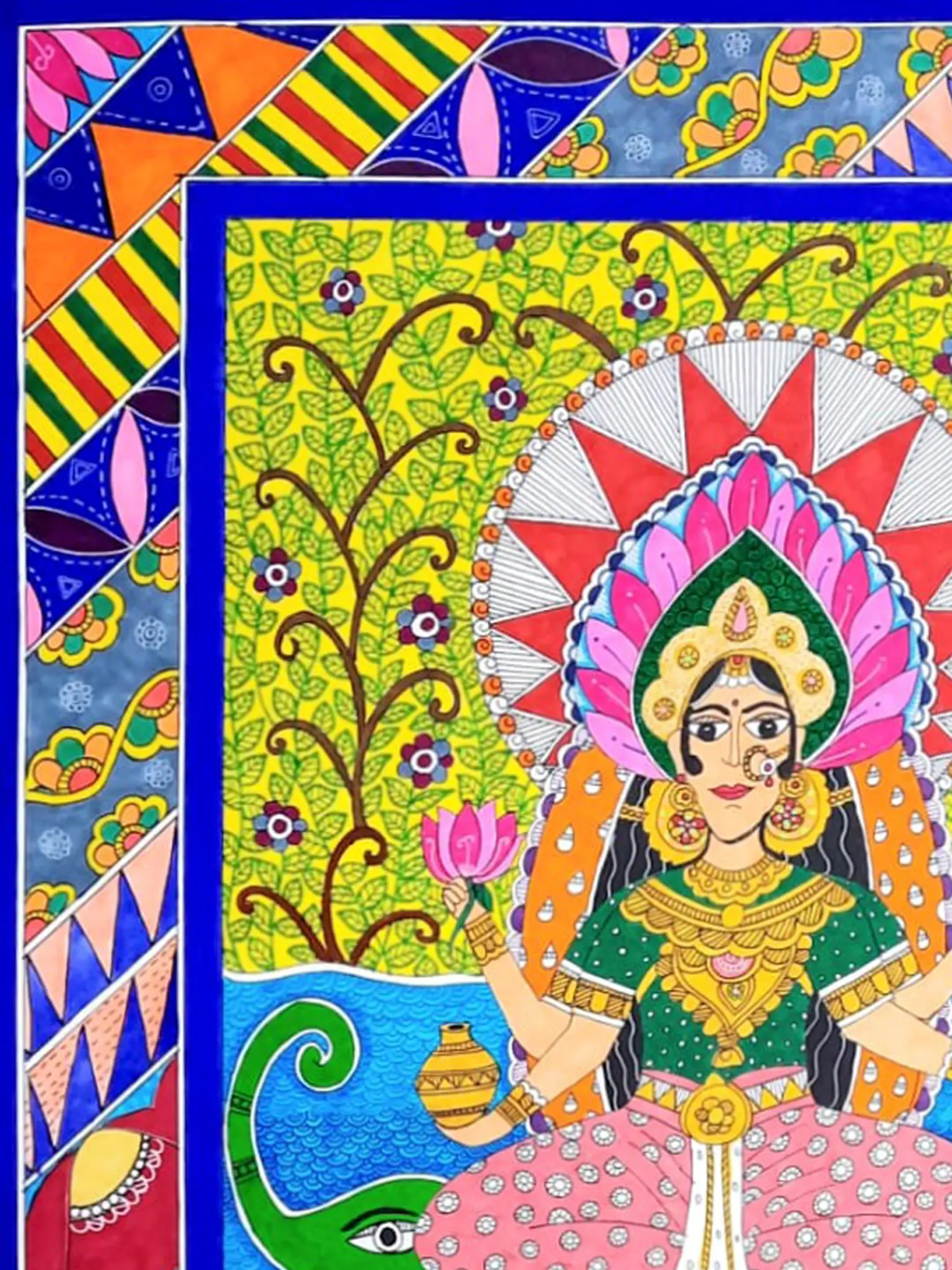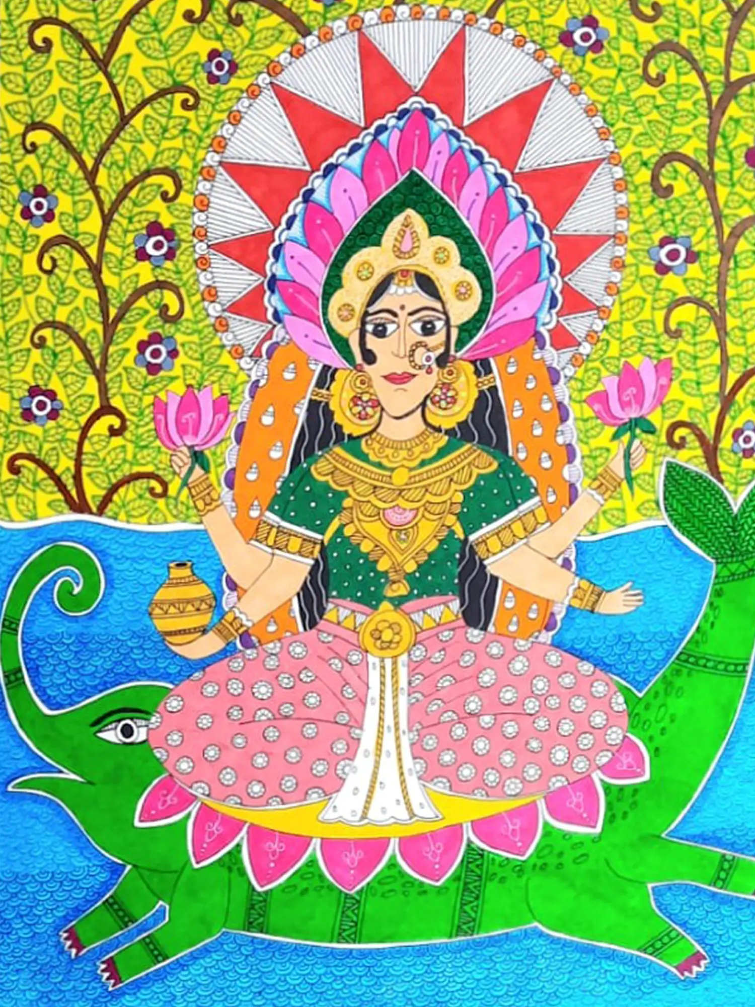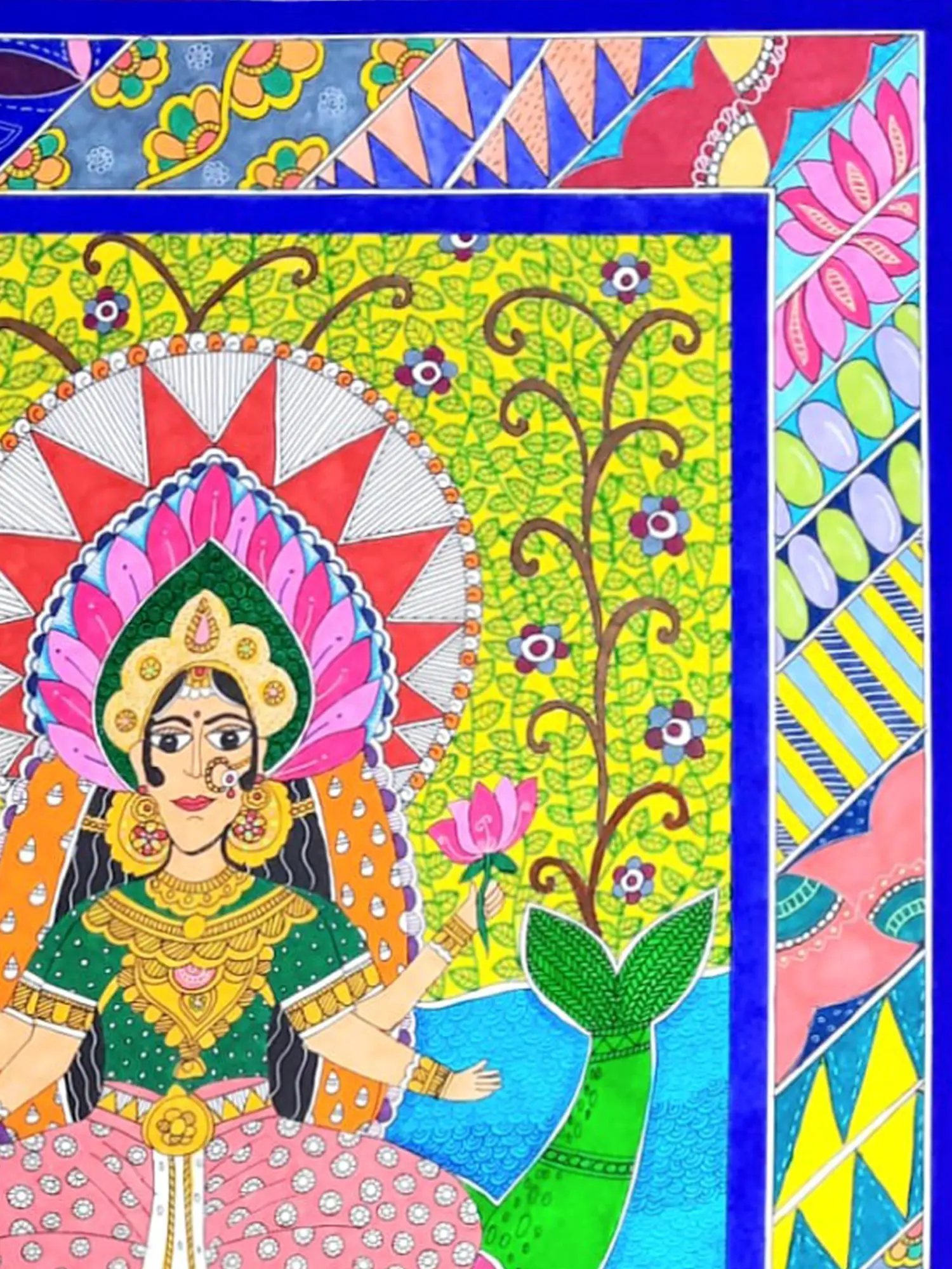 Goddess Parvati on Monitor Lizard Holding Shivling,Ganapati, Akshmala and Kamandalu | Painting on A4 Classic Style with Brush Pen | Anuj Shastrakar