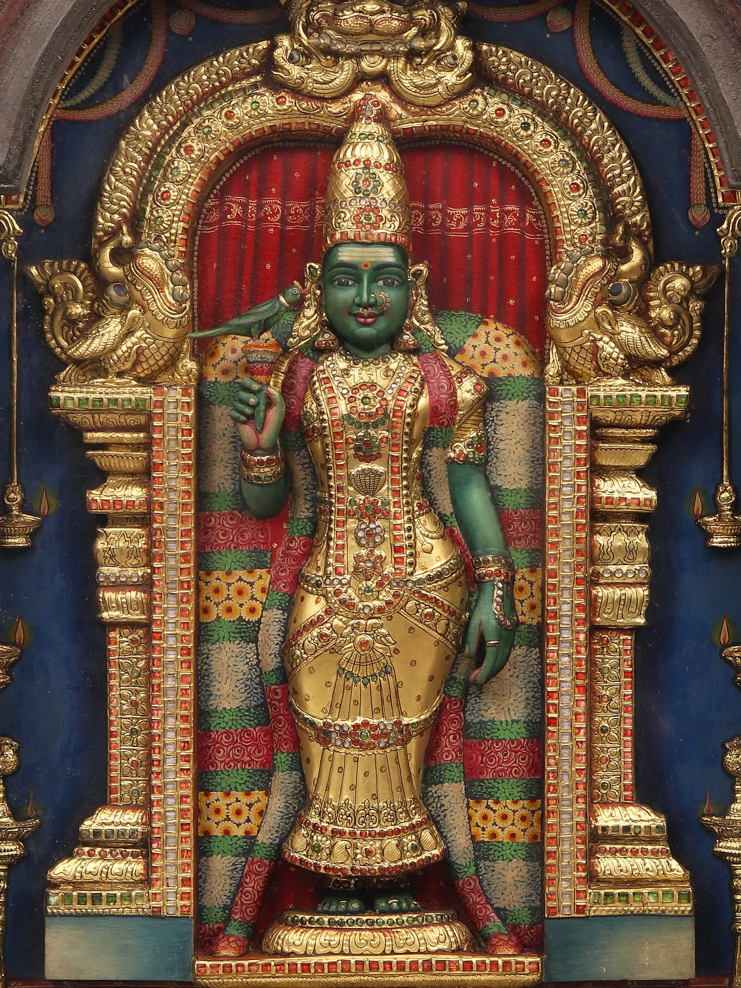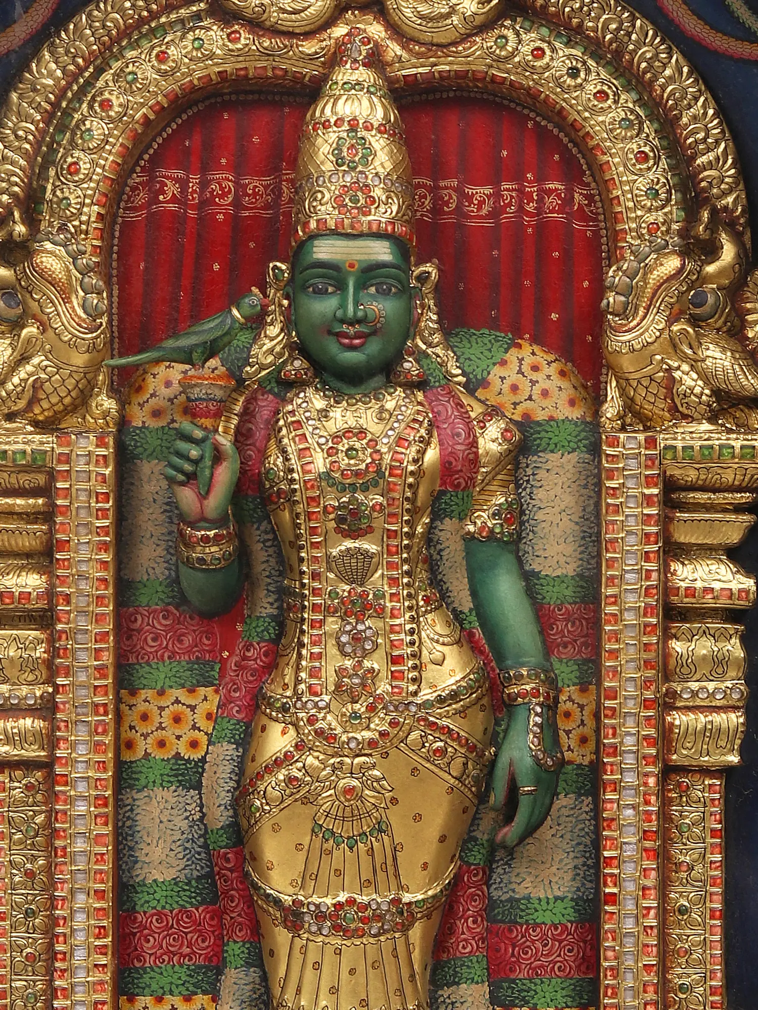 26" Goddess Meenakshi Painting with Frame | Traditional Colors with 24 Karat Gold