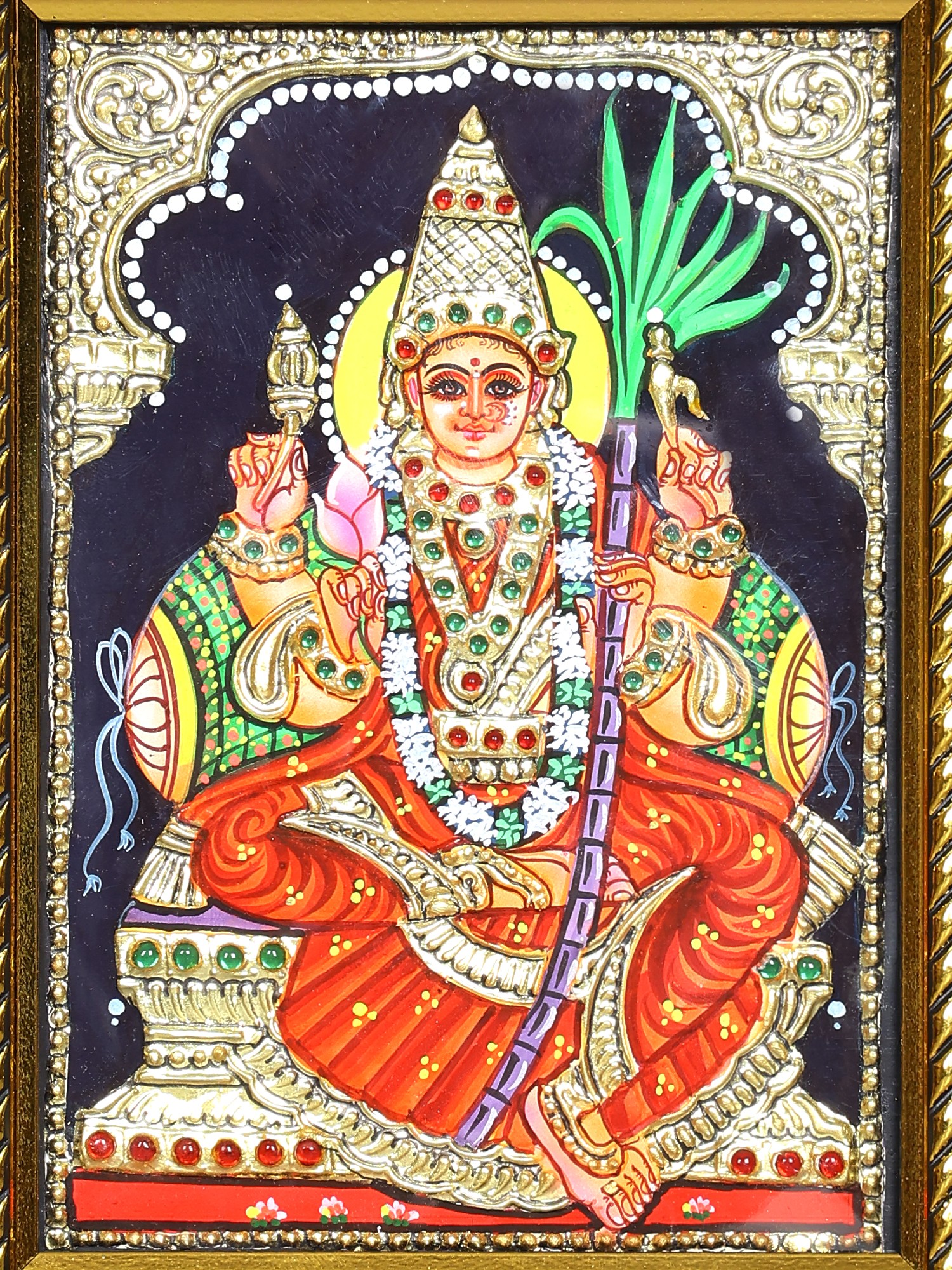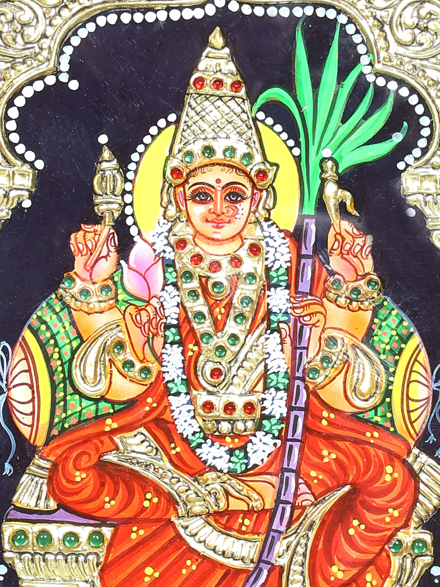 Goddess Rajarajeshwari Tanjore Painting with Frame | Traditional Colors with 24K Gold
