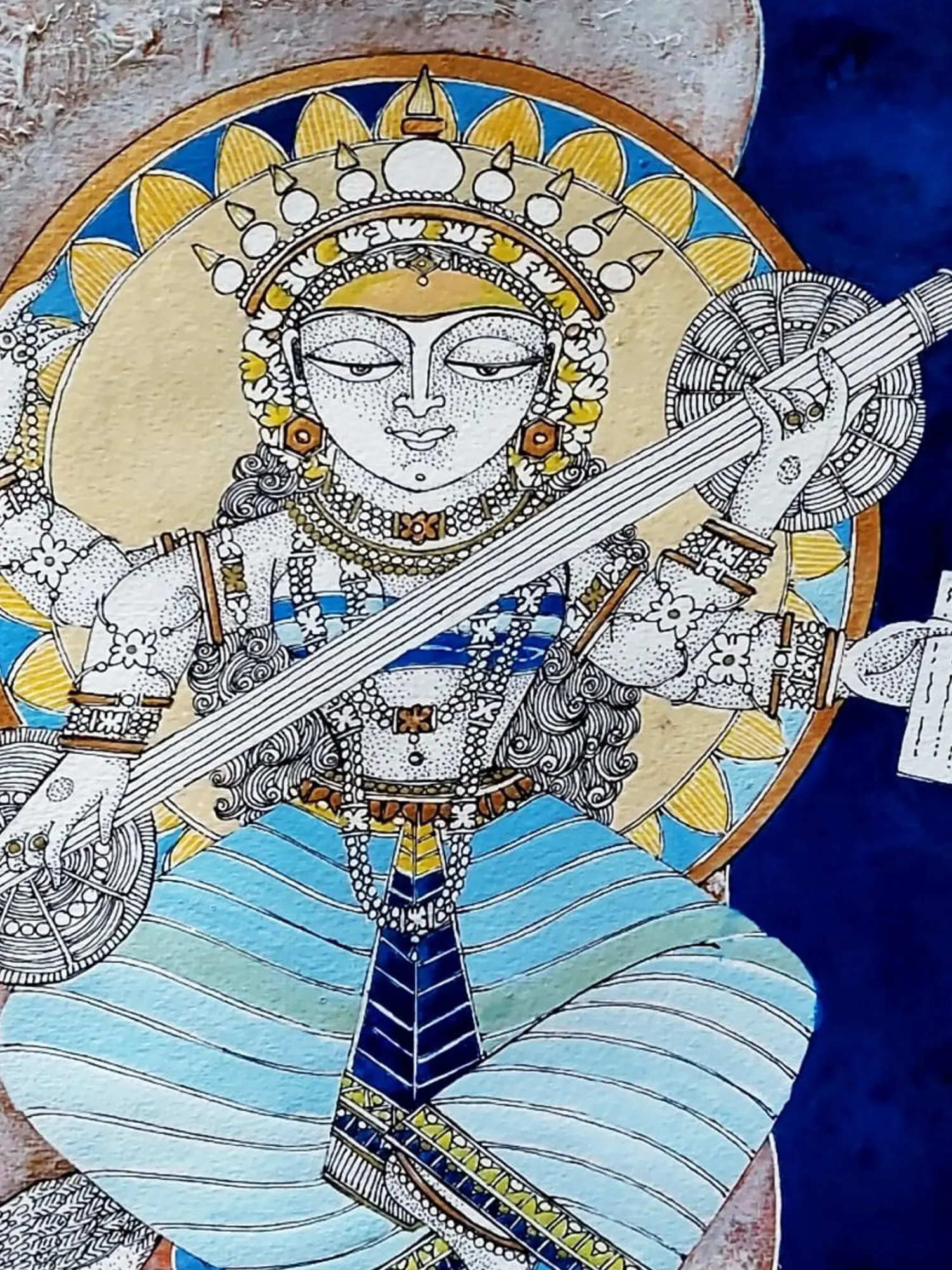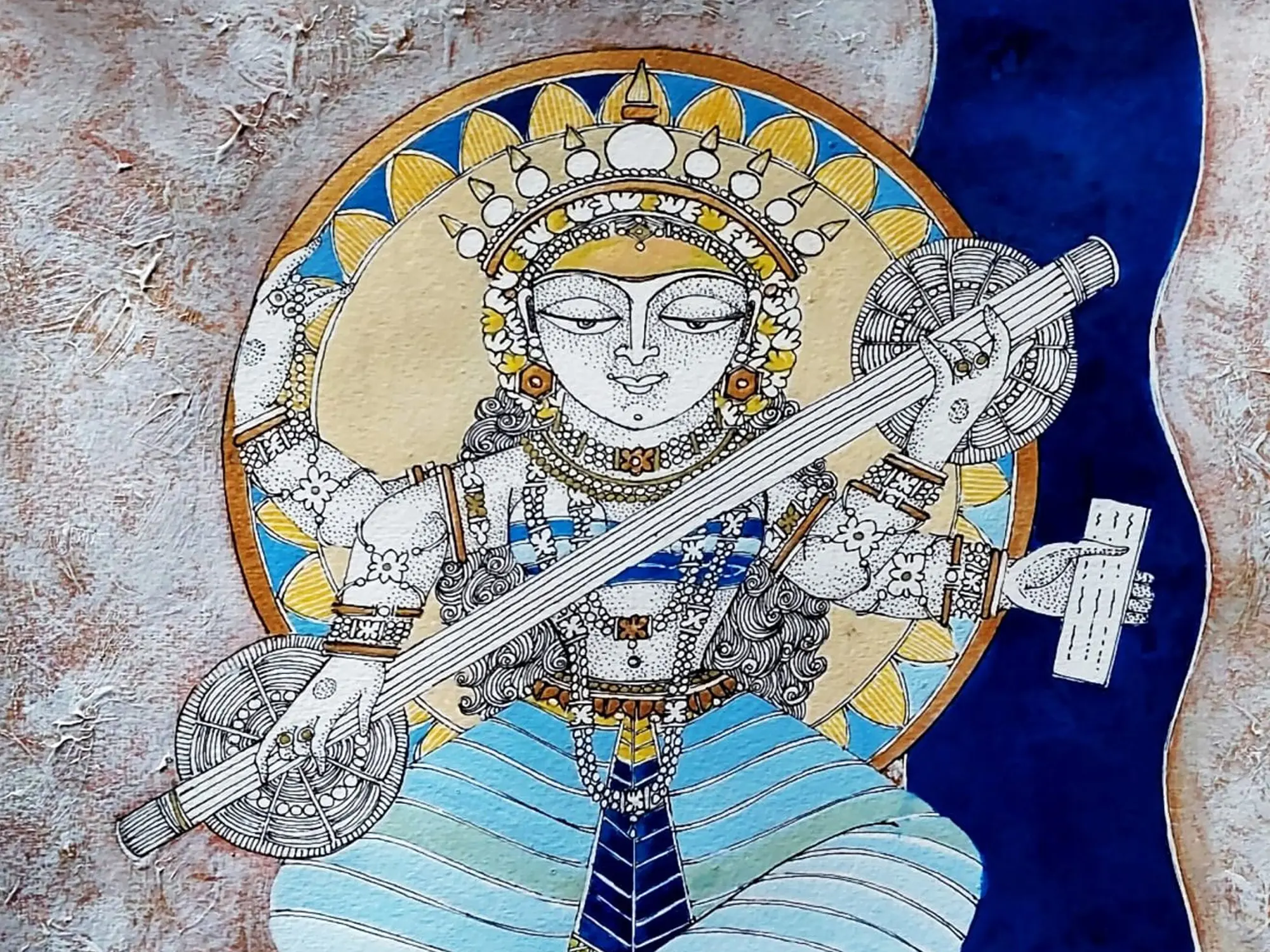 Shree Shakti Saraswati | Acrylic On Handmade Paper | By Shruti Subramani