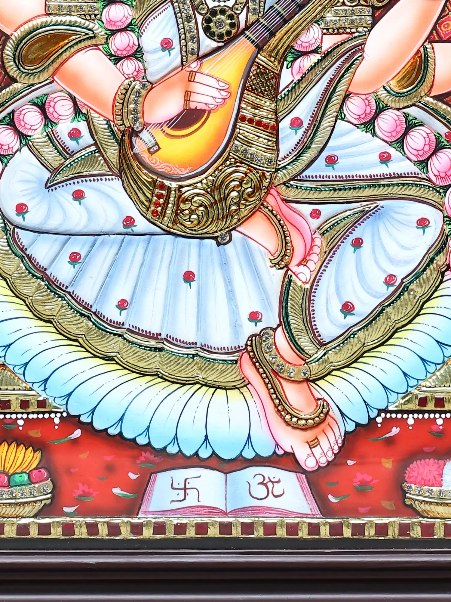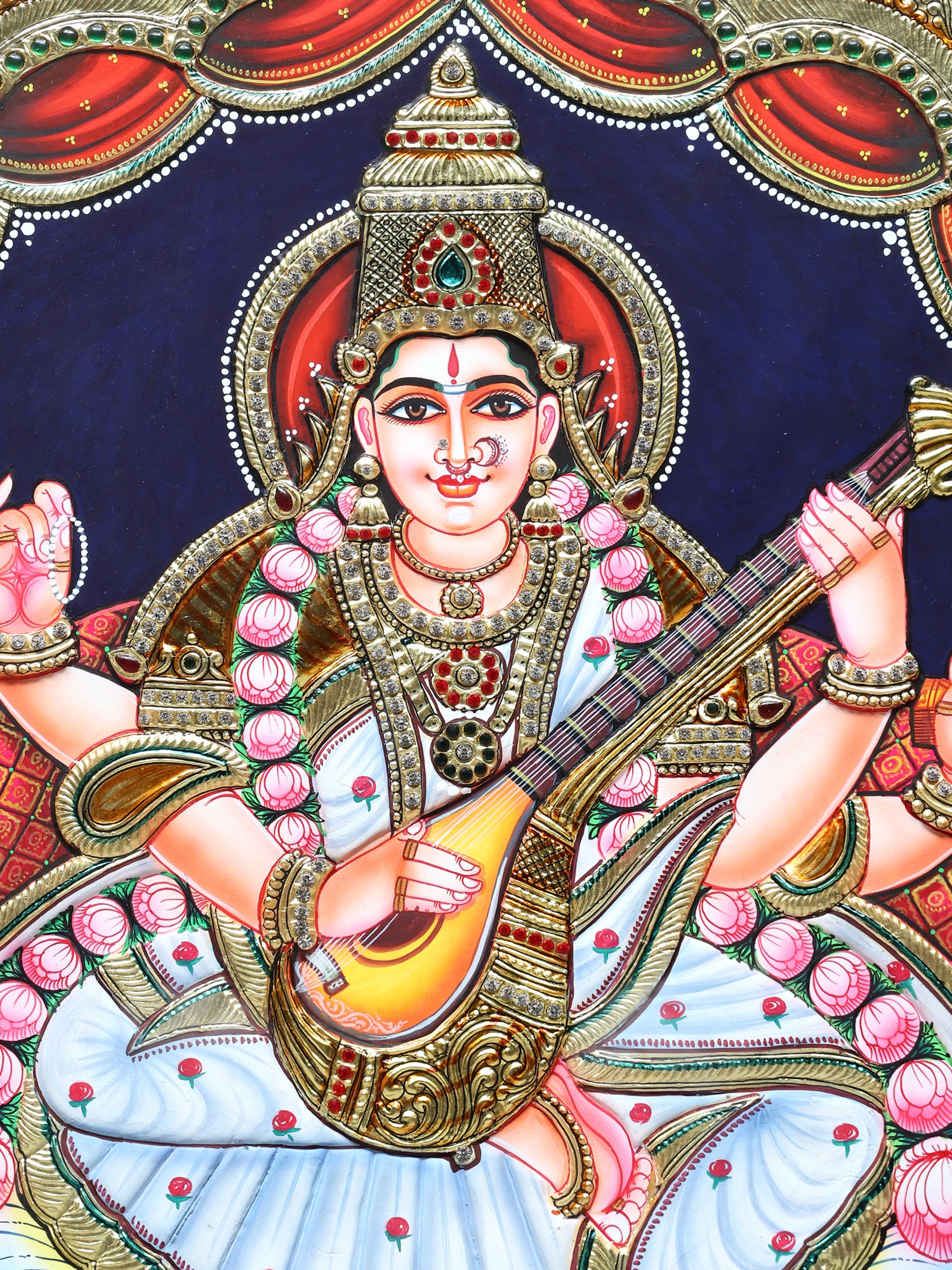 Devi Saraswati Tanjore Painting | Traditional Colors With 24K Gold | Teakwood Frame | Handmade