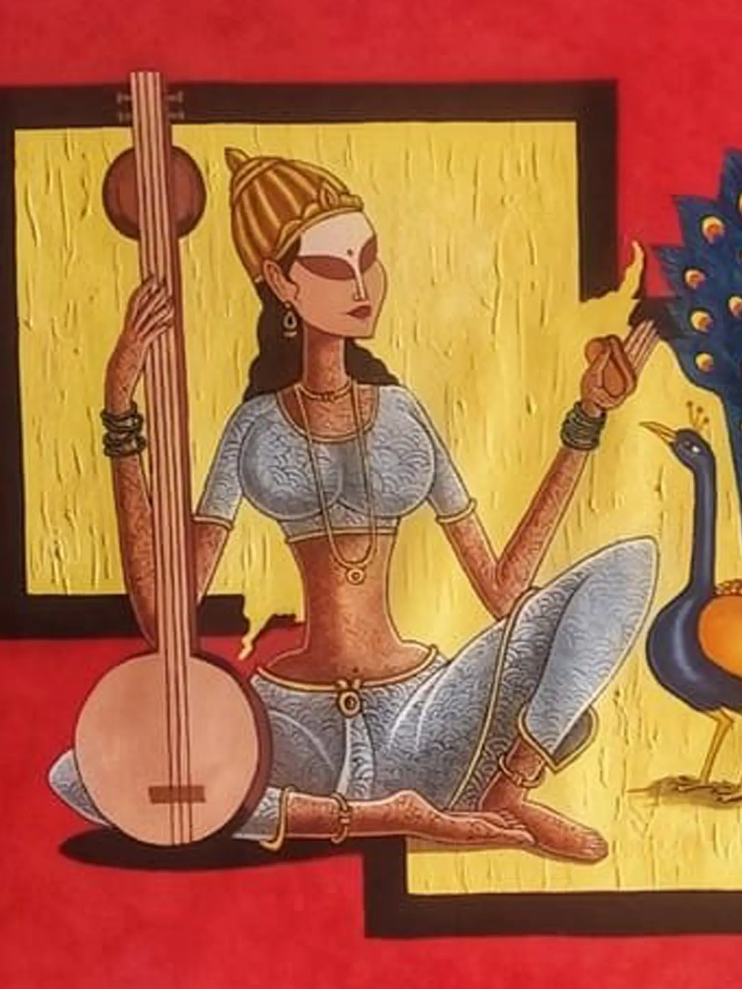 Goddess Saraswati With Sitar | Acrylic On Paper | By Tuhin Rakshit