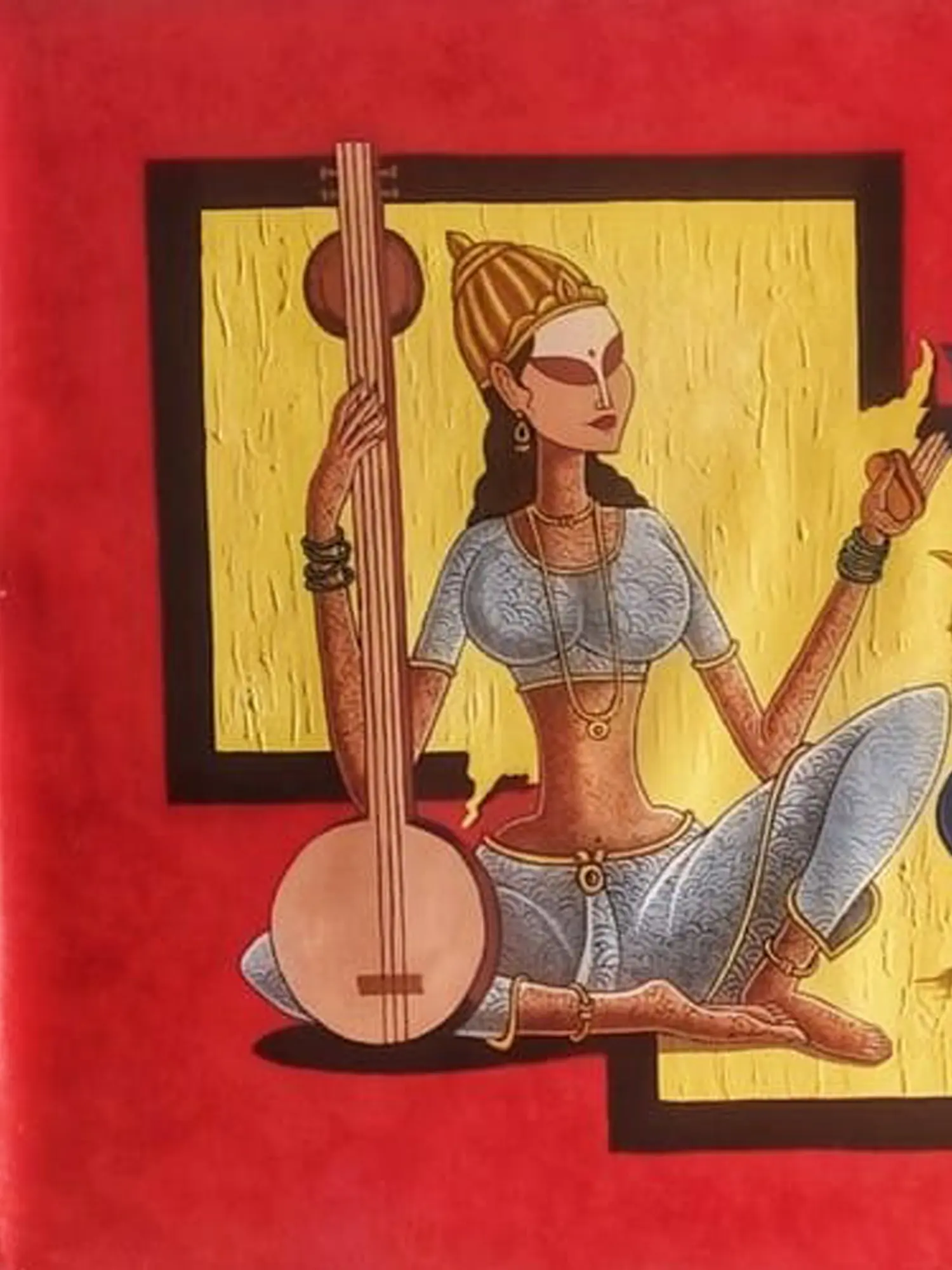 Goddess Saraswati | Acrylic On Canvas | By Ramesh Gujar