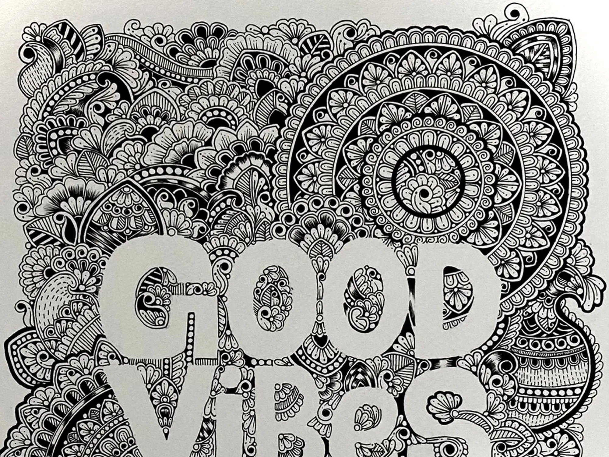 Mandala Art with Floral Circle with Frame | Pen on Canvas | By Priyanka Gupta