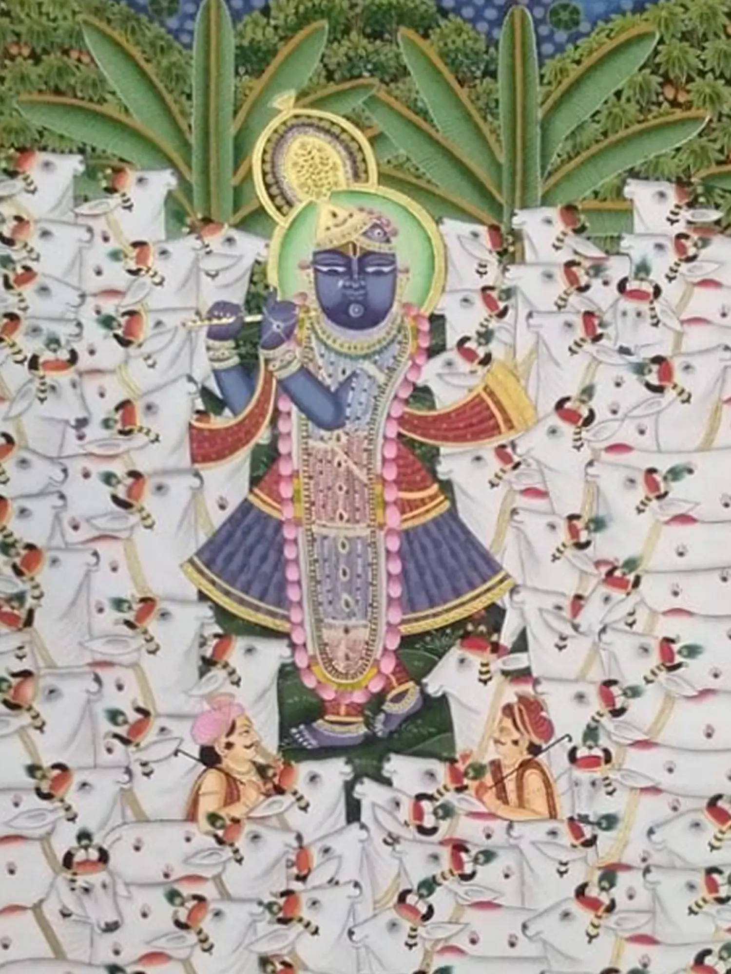 Shrinathji Gopashtami Pichwai Painting | Natural Color On Cloth | By Dheeraj Munot