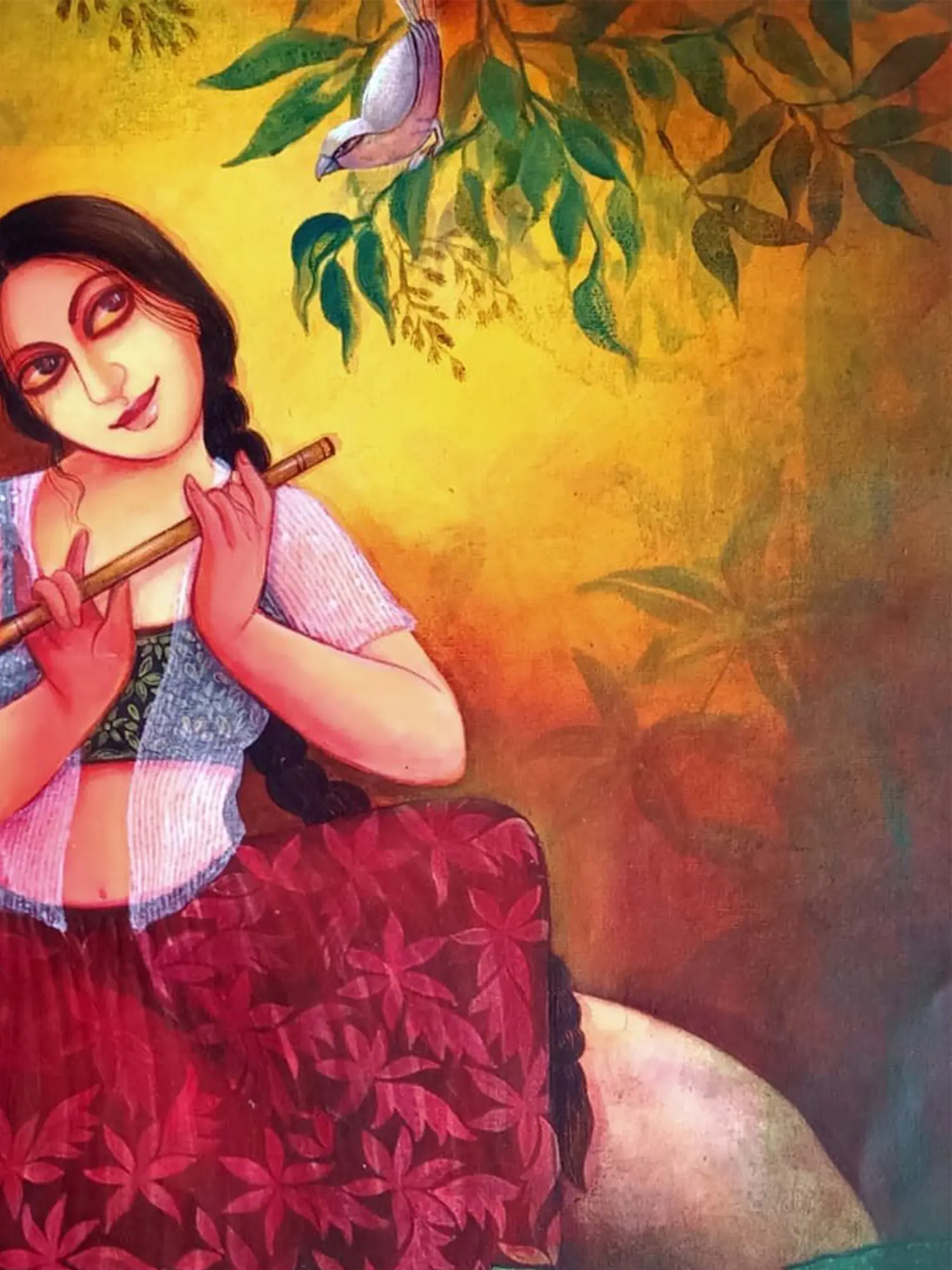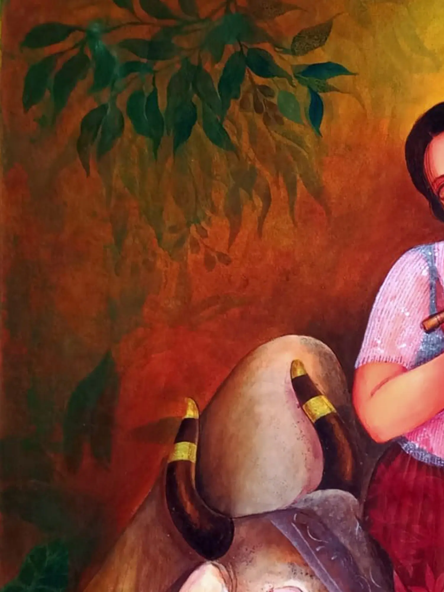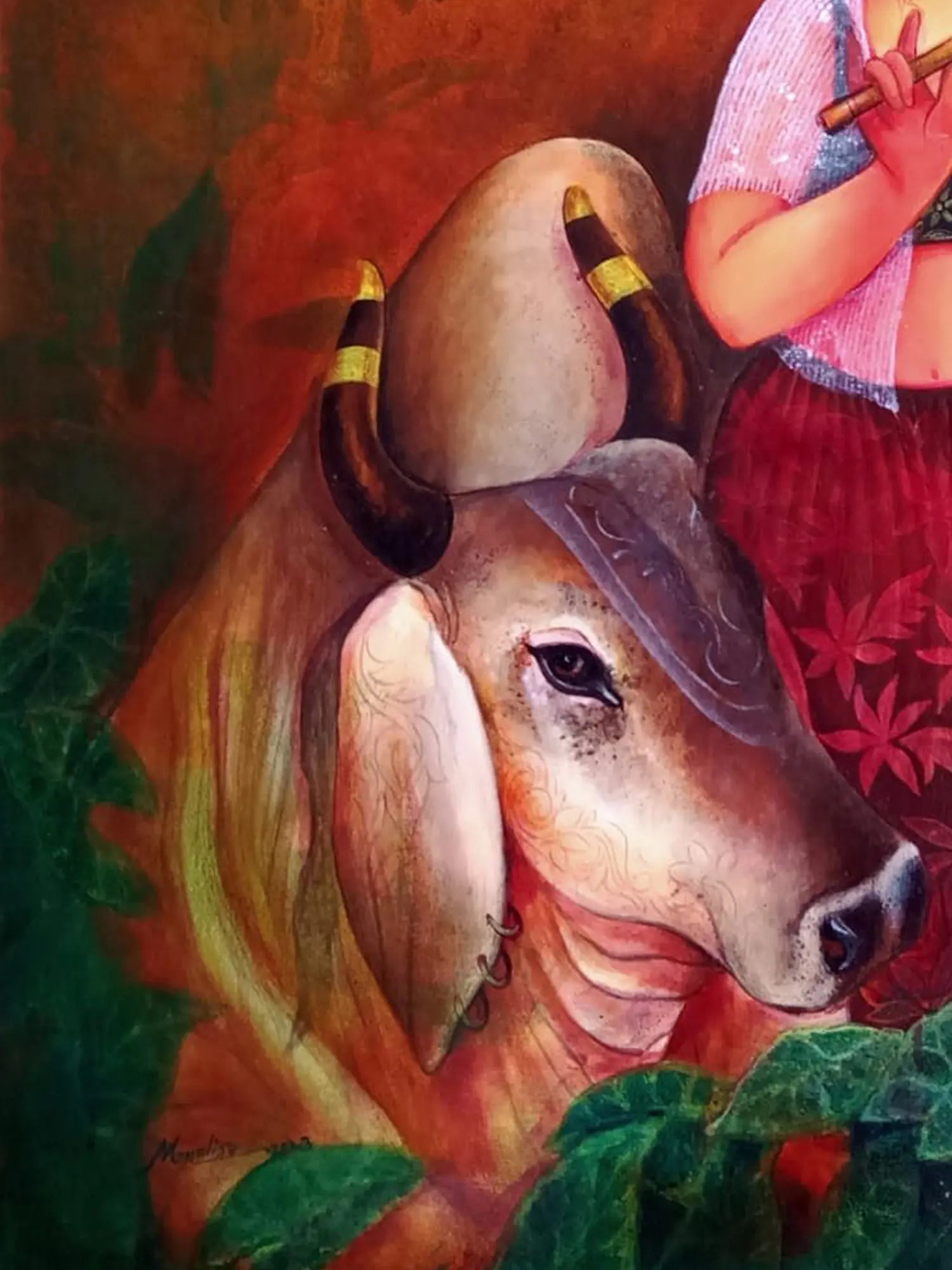 With Holy Cow-Friendship" - Acrylic hues portray a Gopi engrossed in