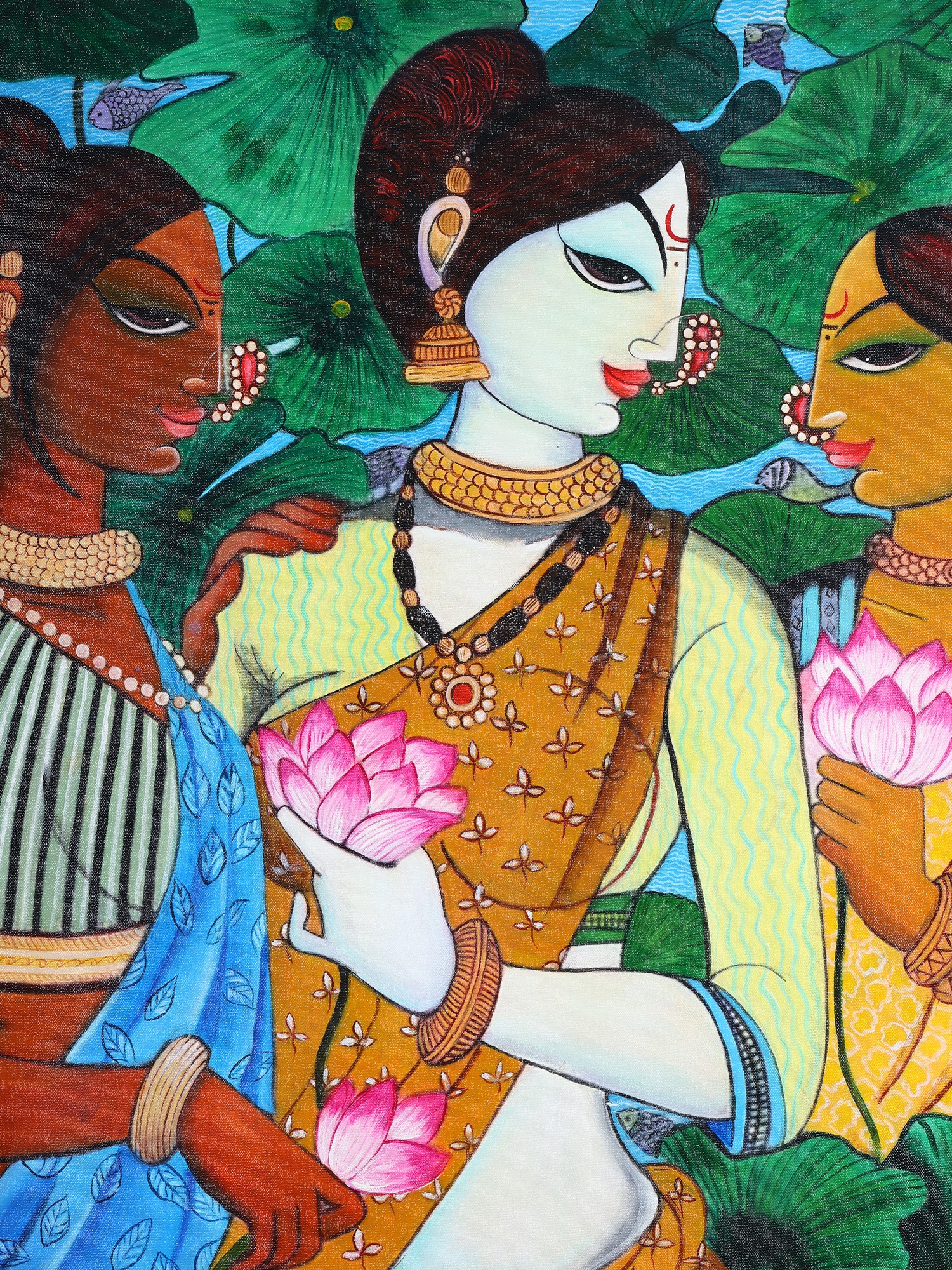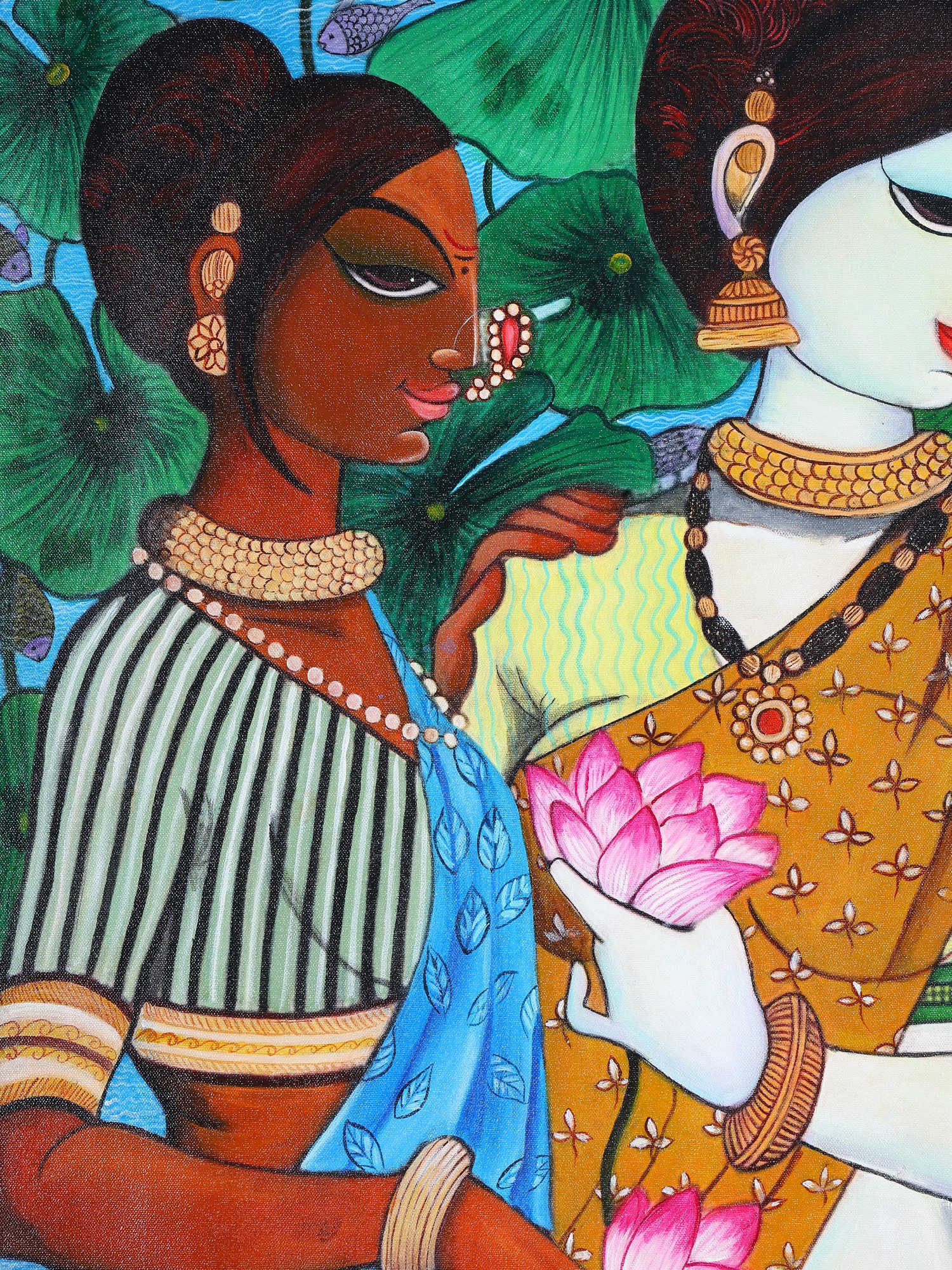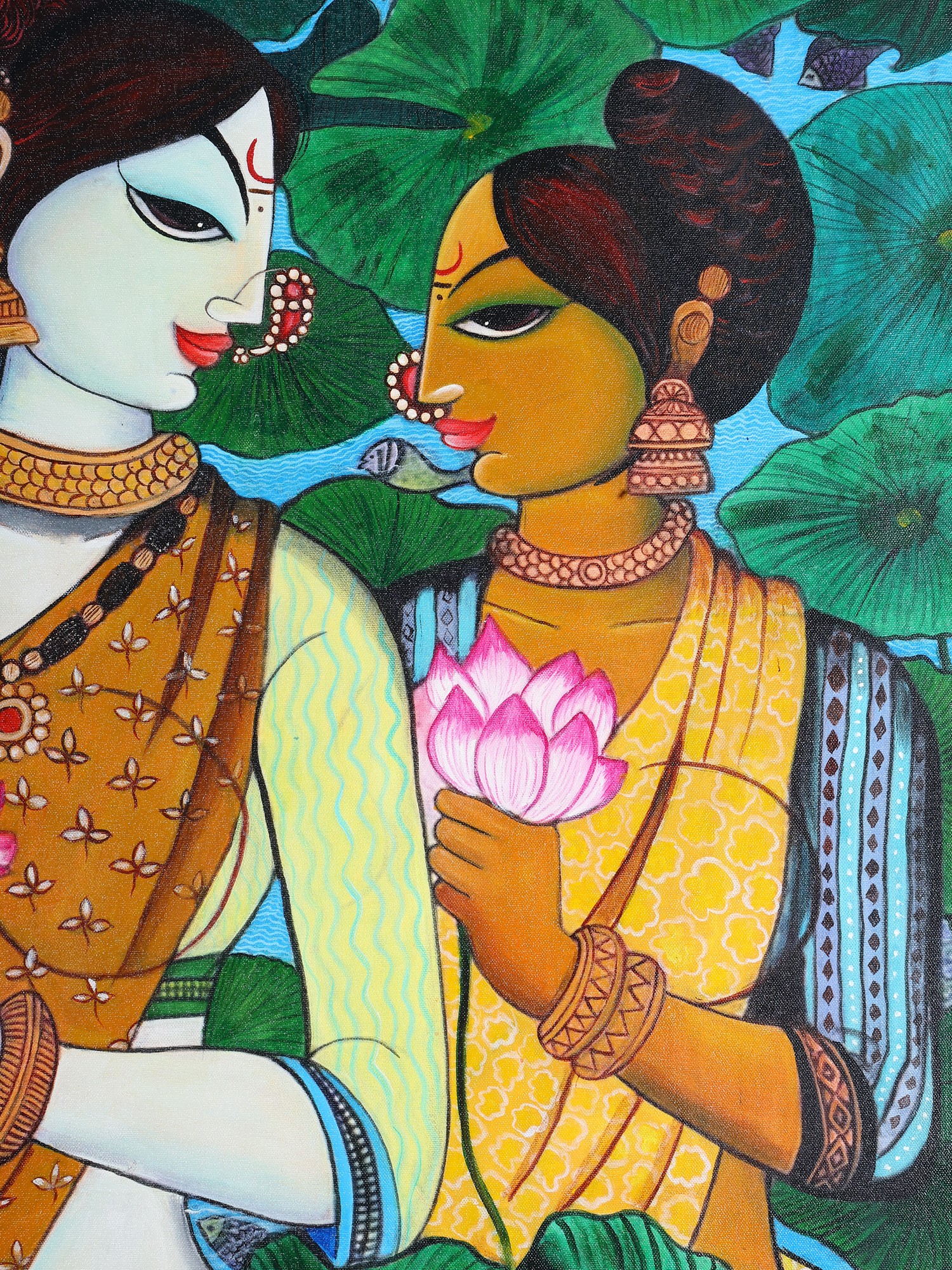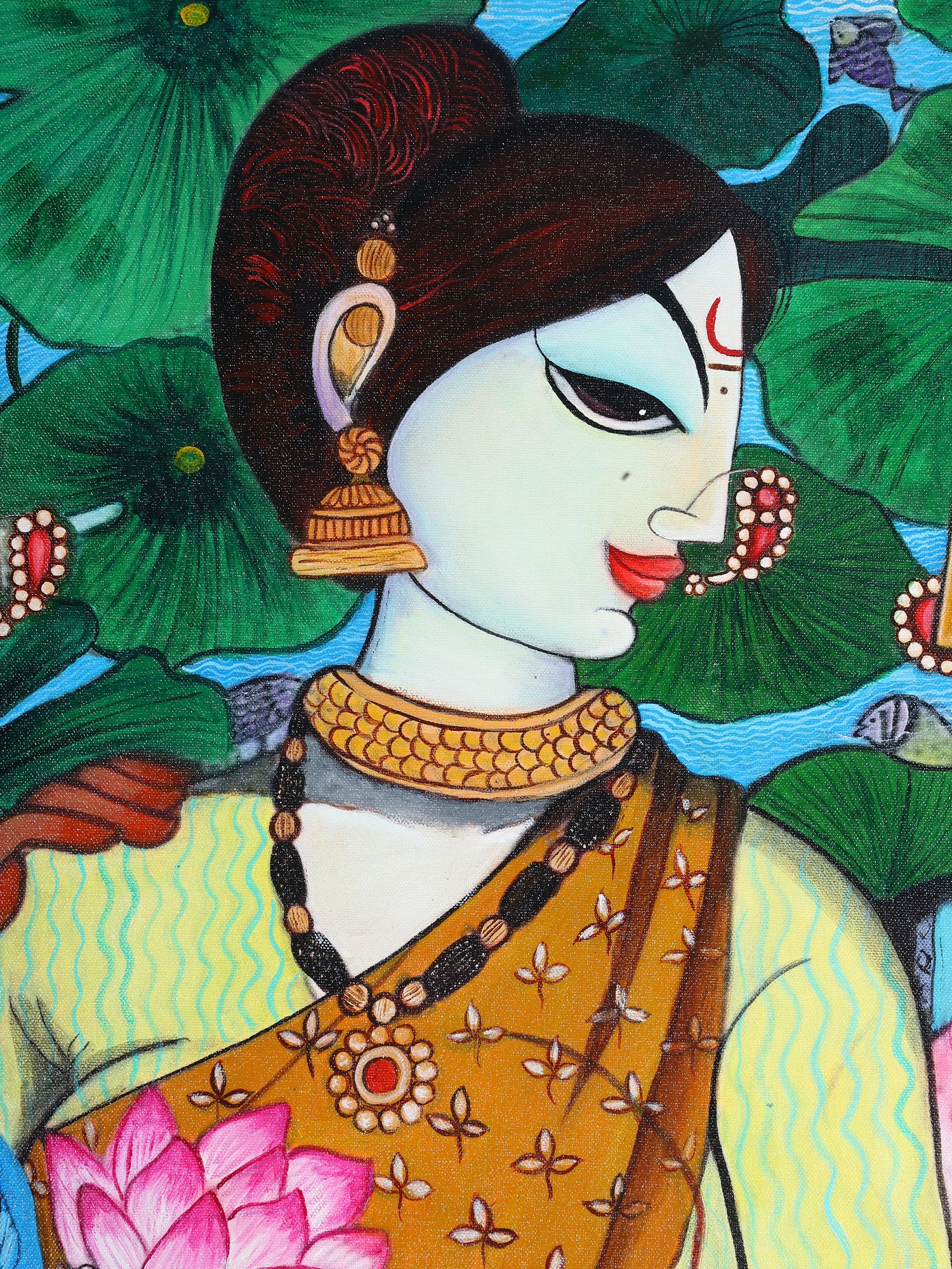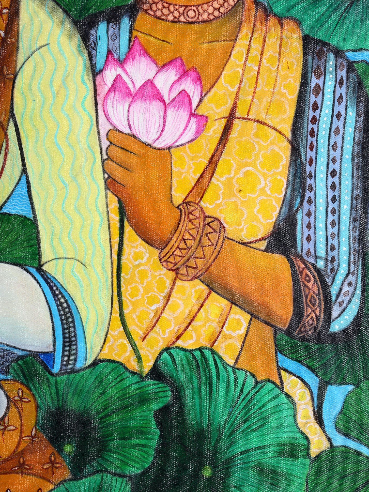 Ganesha With Her Devotee | Acrylic Painting On Canvas Board | By Arup Ratan Choudhury