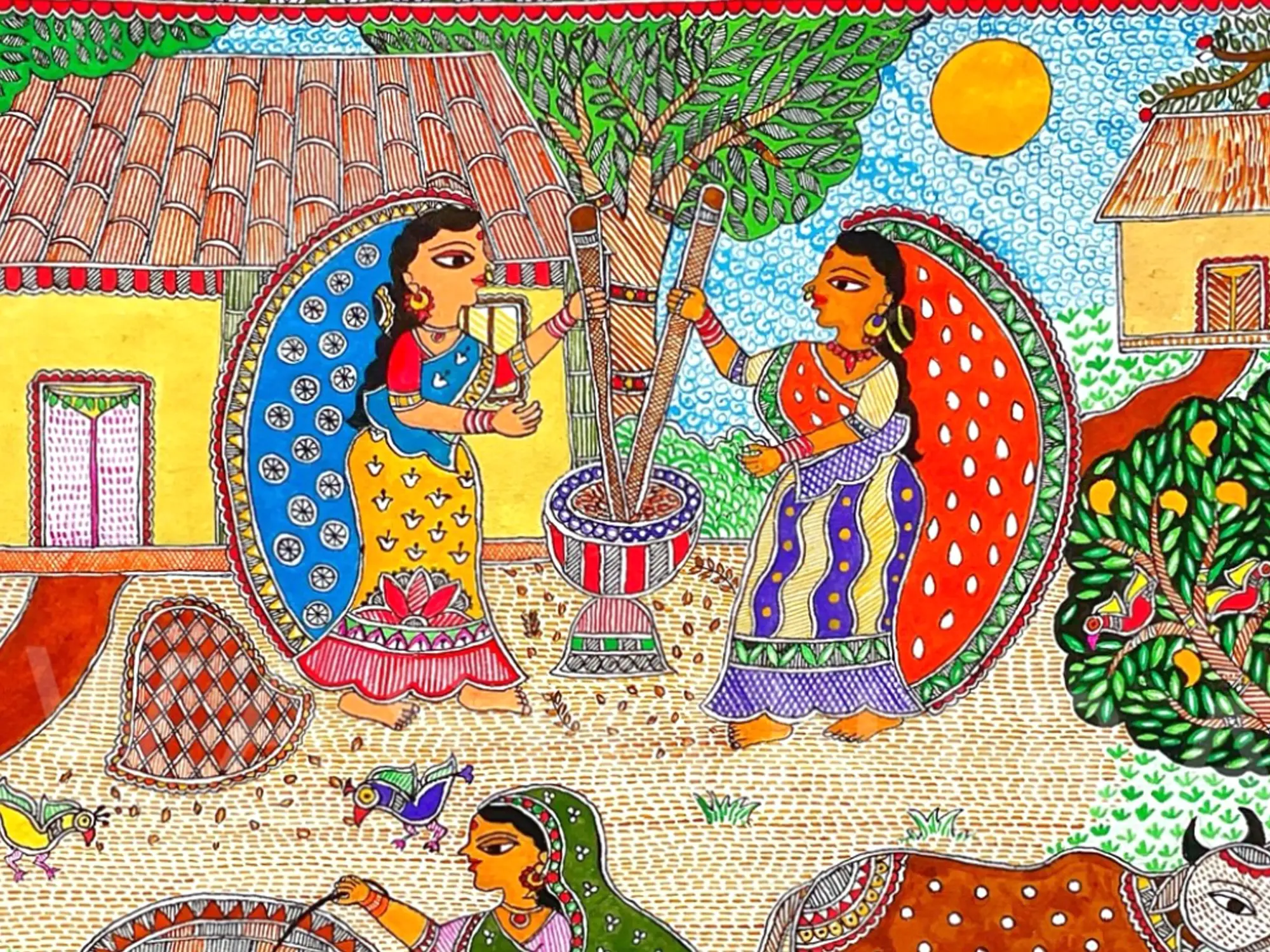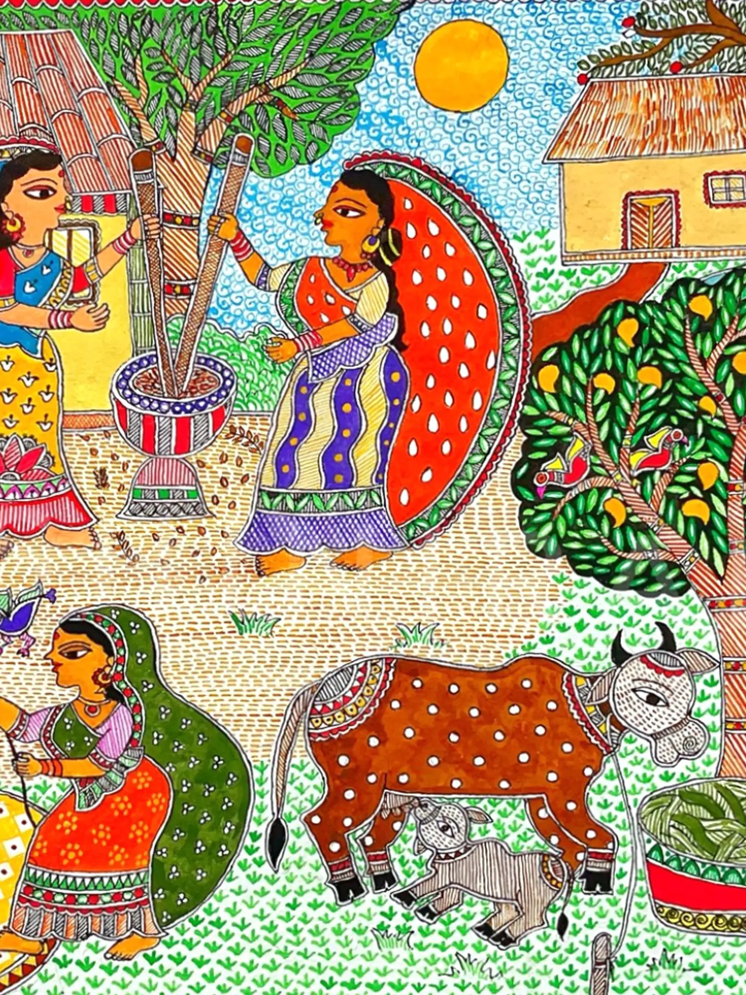 Immerse yourself in the tranquil rhythm of rural life with this captivating acrylic artwork. It invites you to step into a moment of everyday beauty, capturing the enduring spirit and vibrant traditions of a close-knit community. You’ll find yourself drawn into its narrative, appreciating the simple yet profound moments depicted with exquisite detail.