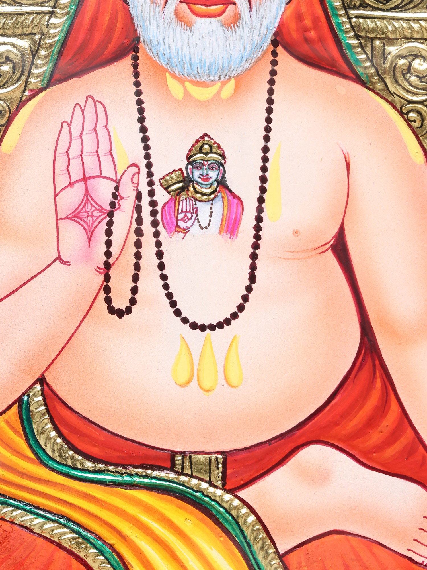 Raghavendra Swamy Tanjore Painting | Traditional Colors With 24K Gold | Teakwood Frame | Handmade