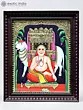 This handmade artwork is presented within a beautifully crafted frame, complementing the painting's traditional aesthetic and ensuring its preservation. The rich, dark wood of the frame adds a touch of sophistication and allows the vibrant colors and golden embellishments of the Tanjore painting to stand out prominently. The dimensions of the painting, including the frame, are thoughtfully proportioned for display in any devotional space, home altar, or as a significant piece of art that enriches any environment with its spiritual presence and artistic brilliance. This piece is more than just a painting; it is a conduit to devotion, a testament to artistic heritage, and a source of enduring peace and inspiration.