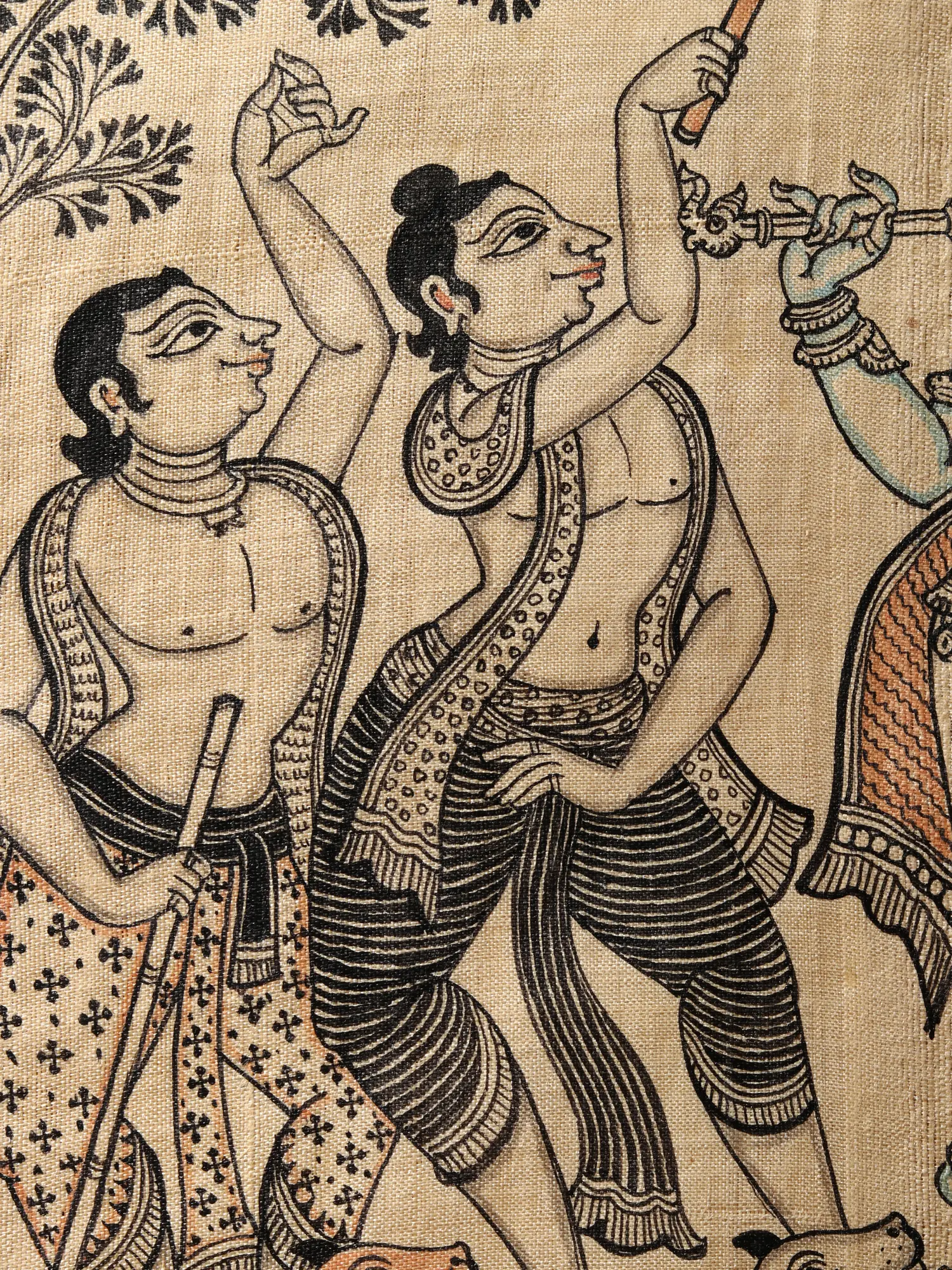 Dancing Lord Krishna with Brother Balaram | Pattachitra Painting from Odisha