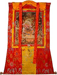A Thangka is a traditional Tibetan Buddhist painting that usually depicts a Buddhist Deity (Buddha or Bodhisattva), a scene, or a mandala. These paintings are considered important paraphernalia in Buddhist rituals. They are used to teach the life of the Buddha, various lamas, and Bodhisattvas to the monastic students, and are also useful in visualizing the deity while meditating. One of the most important subjects of thangkas is the Bhavacakra (the wheel of life) which depicts the Art of Enlightenment. It is believed that Thangka paintings were developed over the centuries from the murals, of which only a few can be seen in the Ajanta caves in India and the Mogao caves in Gansu Province, Tibet. Thangkas are painted on cotton or silk applique and are usually small in size. The artist of these paintings is highly trained and has a proper understanding of Buddhist philosophy, knowledge, and background to create a realistic and bona fide painting.