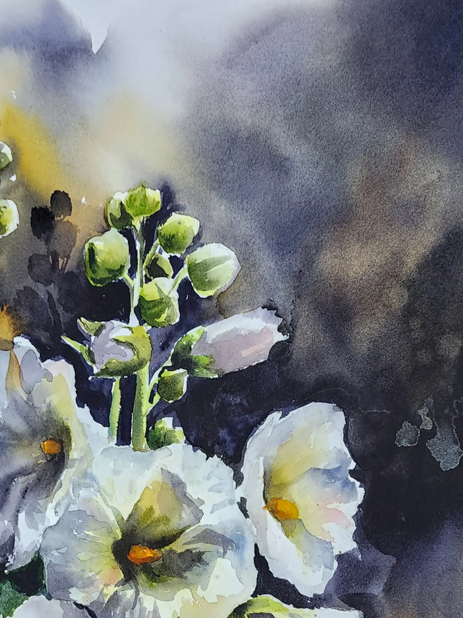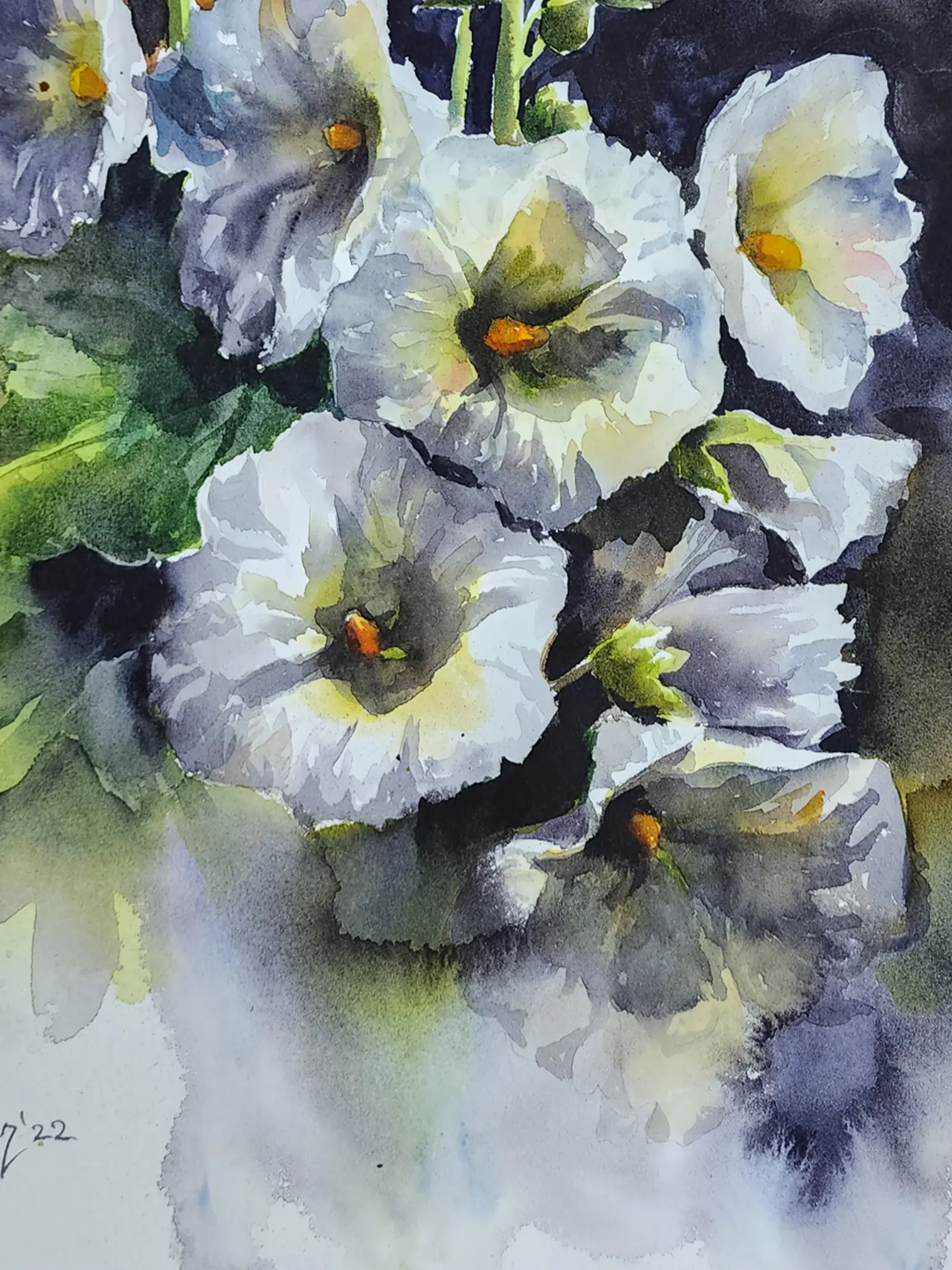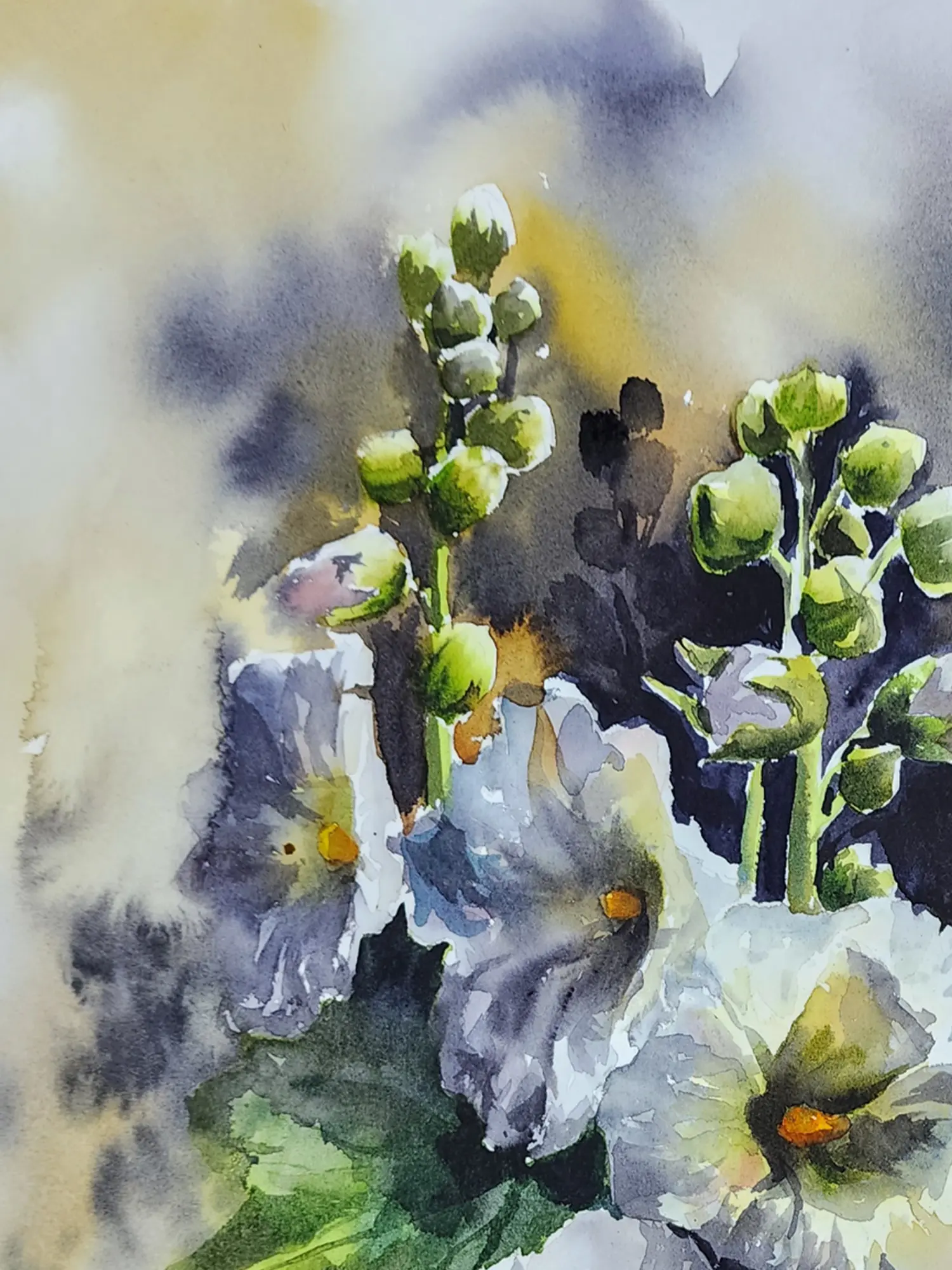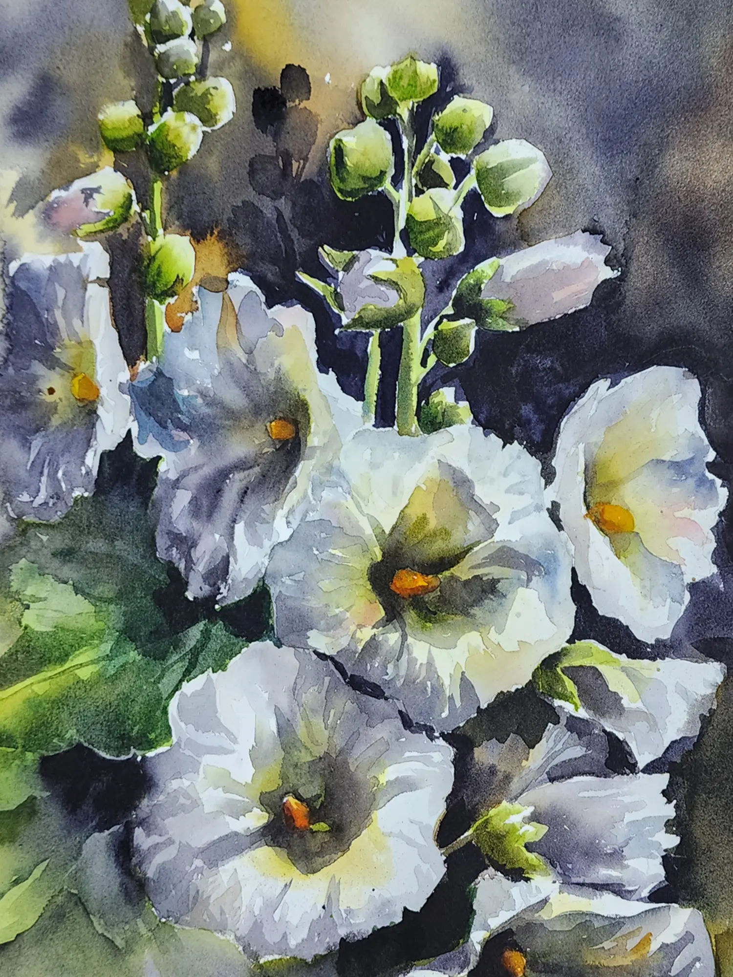Amidst a garden of dreams, the Hollyhocks Flowers bloom with radiance and grace. Each delicate petal dances in the breeze, whispering tales of nostalgia and enchantment. Through the medium of watercolour, the artist captures the ephemeral beauty of nature's poetry, inviting viewers to wander through fields of imagination. The painting embodies the philosophy of innocence and wonder, reminding us to embrace the childlike joy that resides within us all.