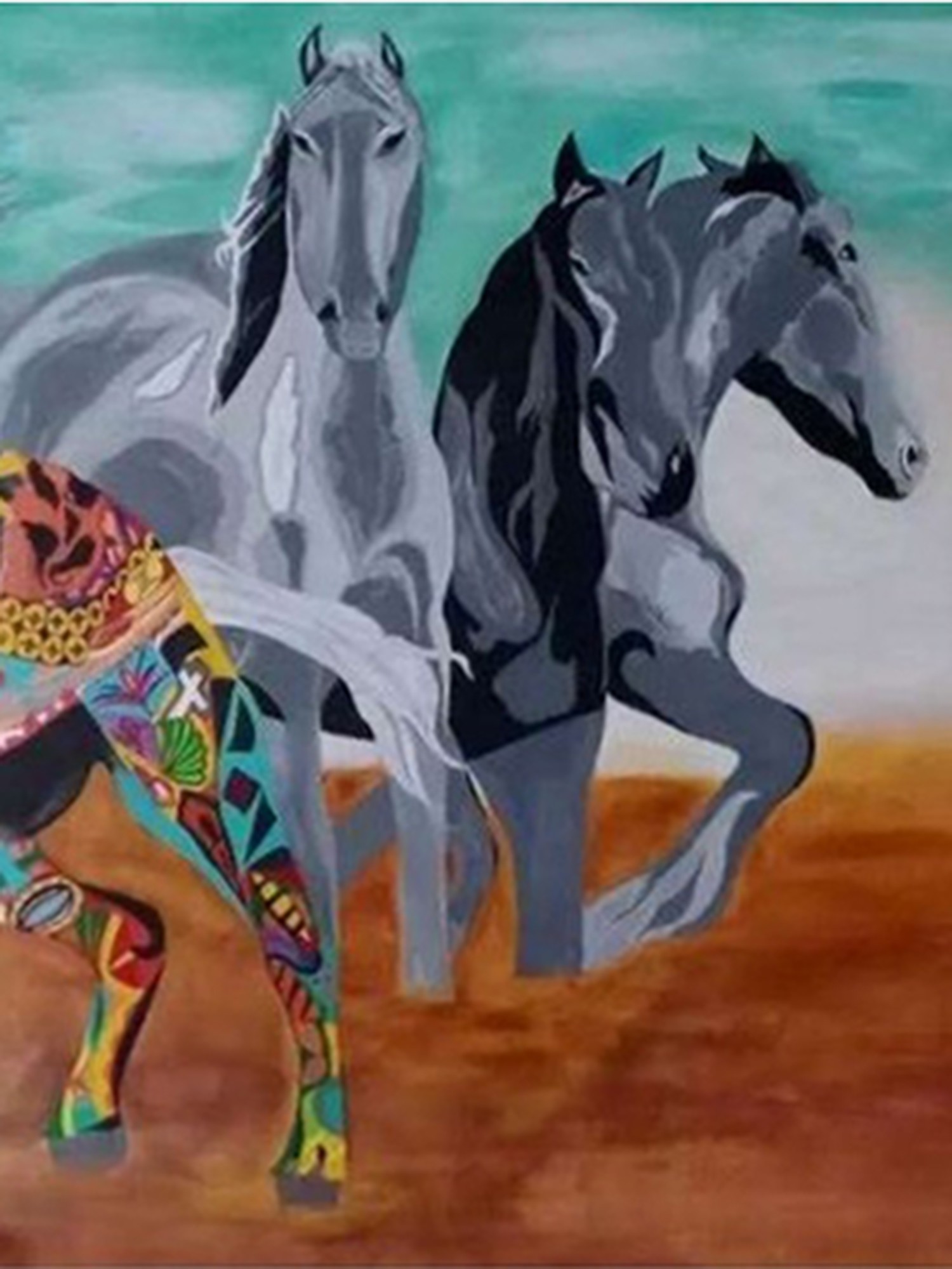 Beautiful Abstract Painting of Horse (Braham) | Acrylic on Canvs | By Maadhvan Goyal
