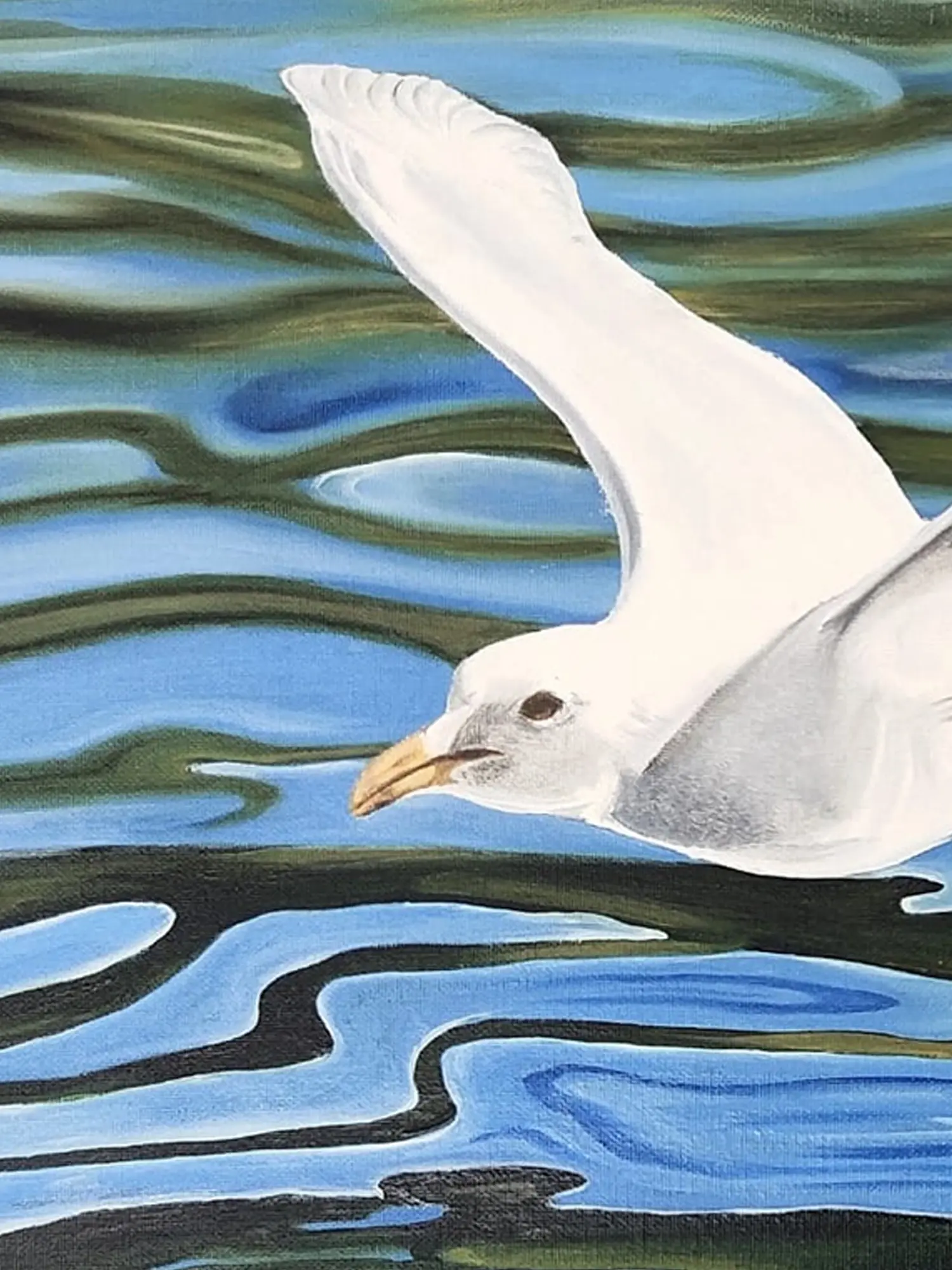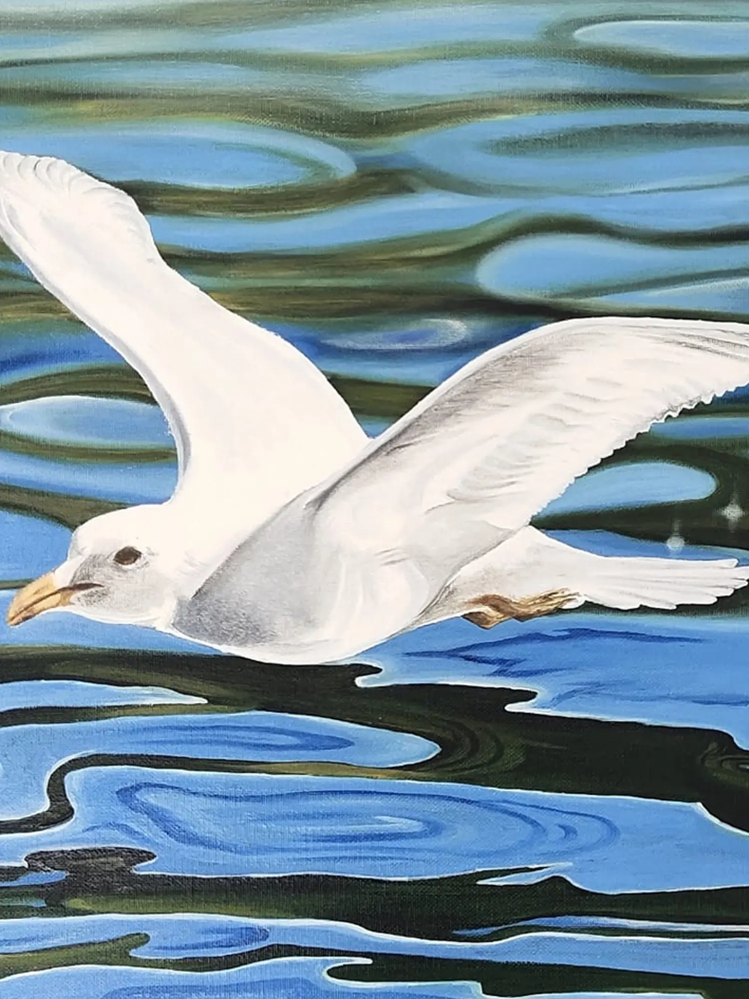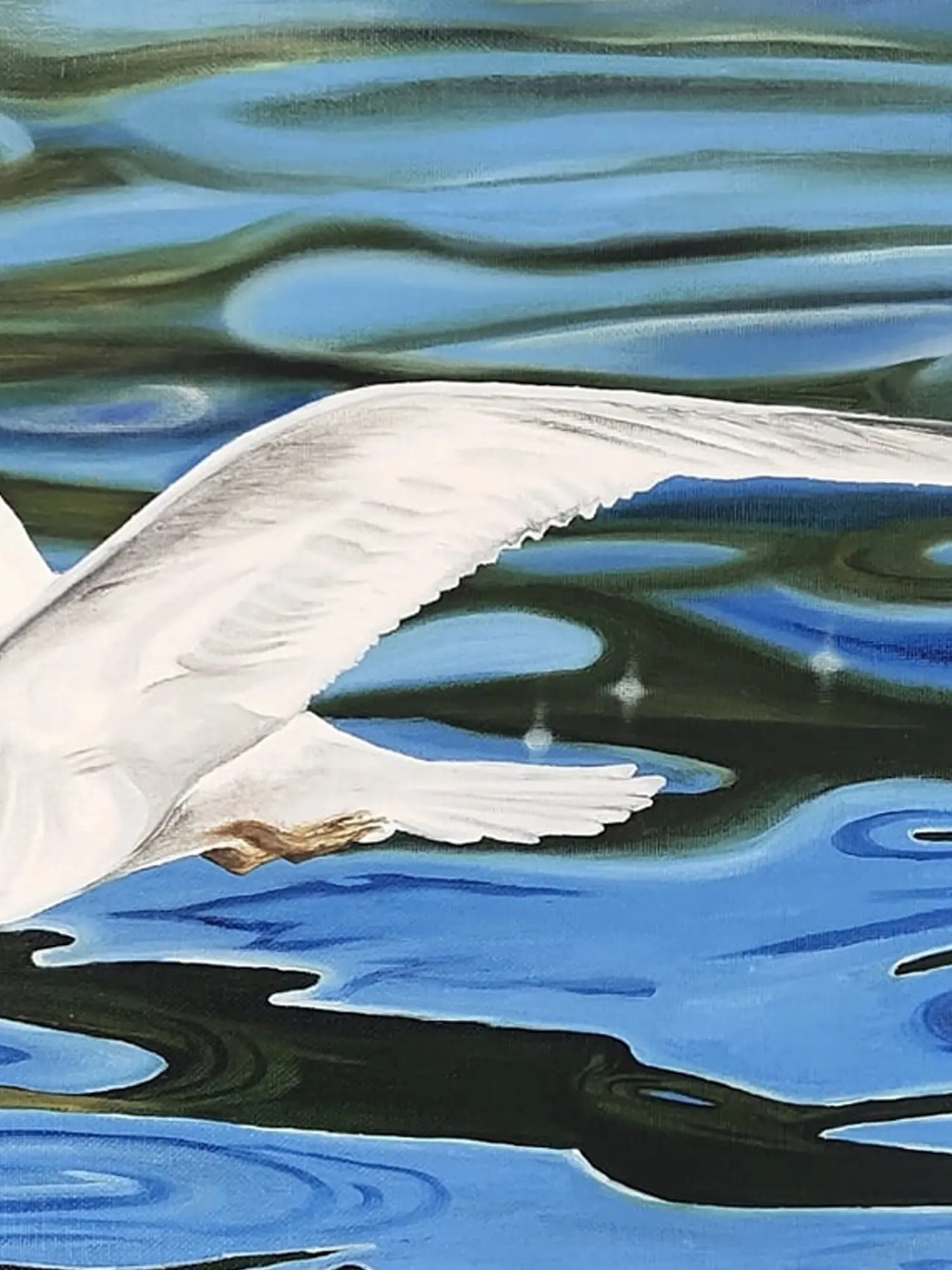 Singh's brushstrokes convey the bird's effortless glide, accentuating the sense of freedom and serenity. The dynamic composition and subtle color palette evoke the vastness of the open sea, creating a visually captivating experience that mirrors the awe-inspiring elegance of these magnificent seabirds in their natural habitat.
