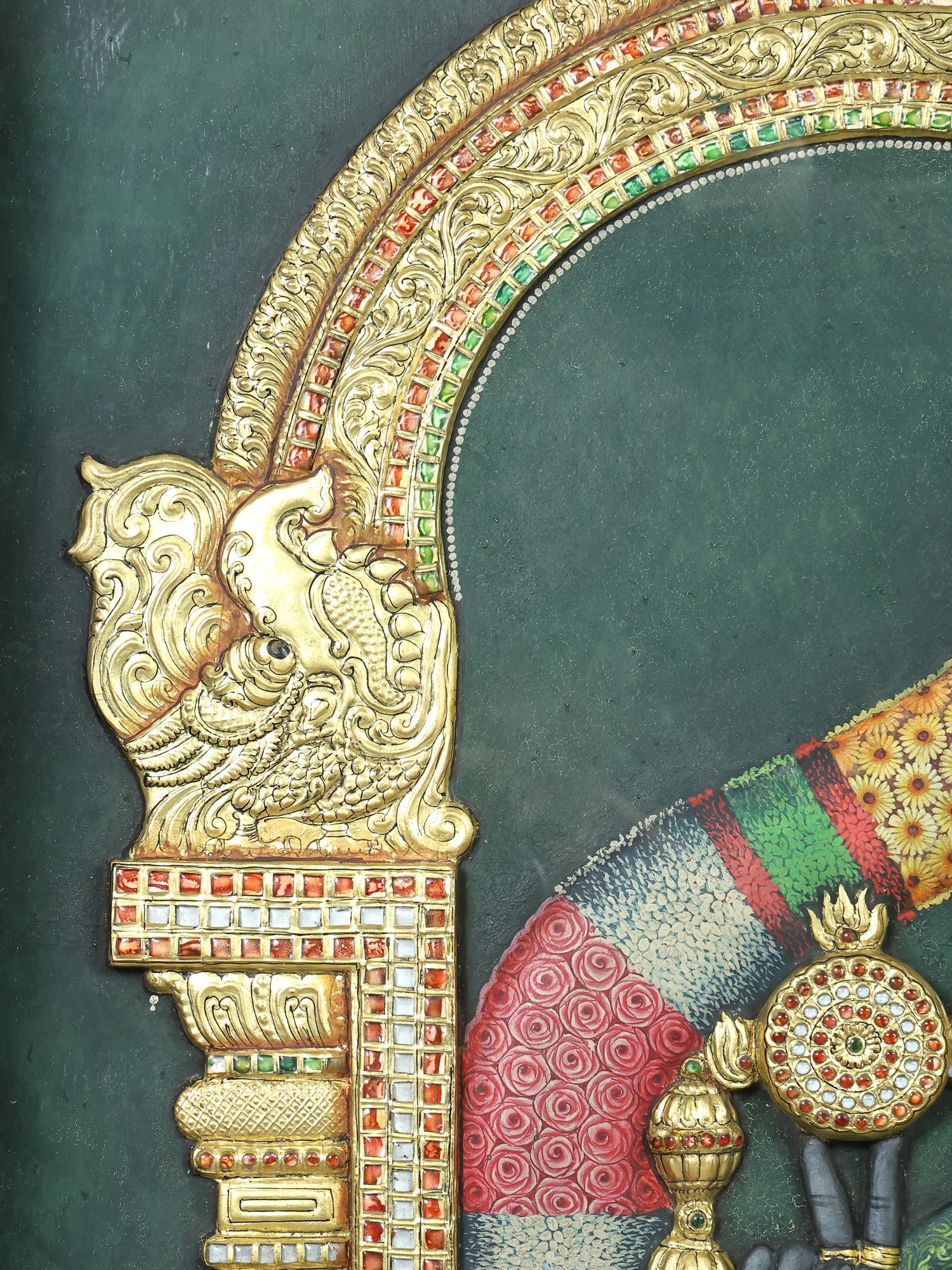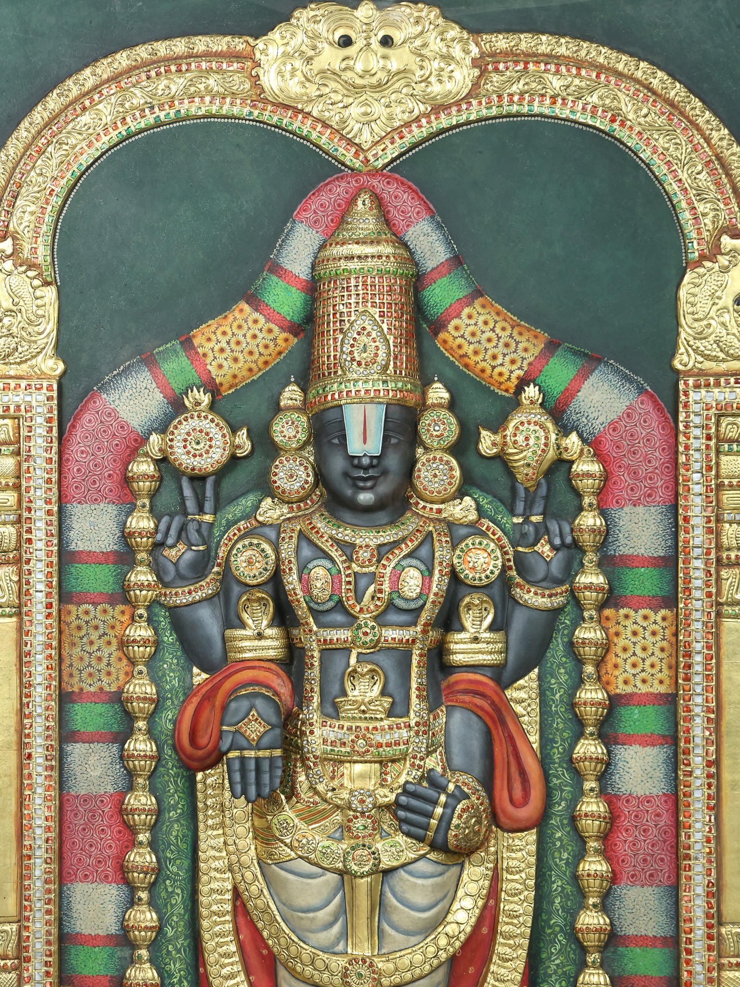 Lord Tirupati Balaji (Venkateshvara) with Kirtimukha Prabhavali | Framed Tanjore Painting with 24 Karat Gold Work
