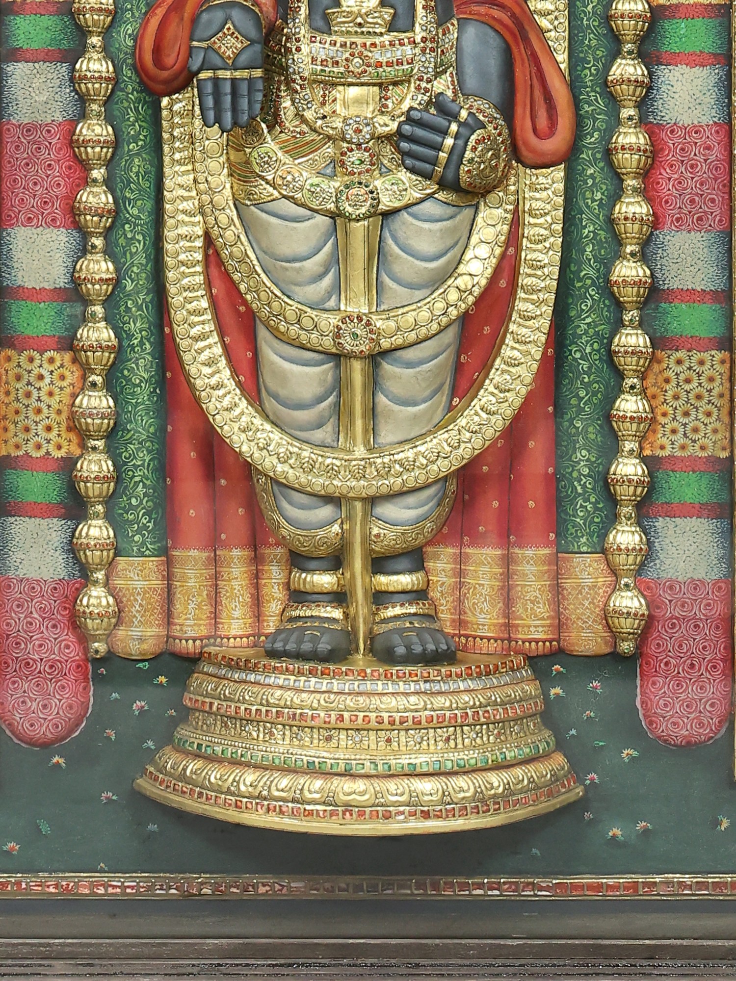 Lord Venkateswara (Tirupati Balaji) in Standing Gesture | Traditional Colors with 24 Karat Gold | Framed Tanjore Painting