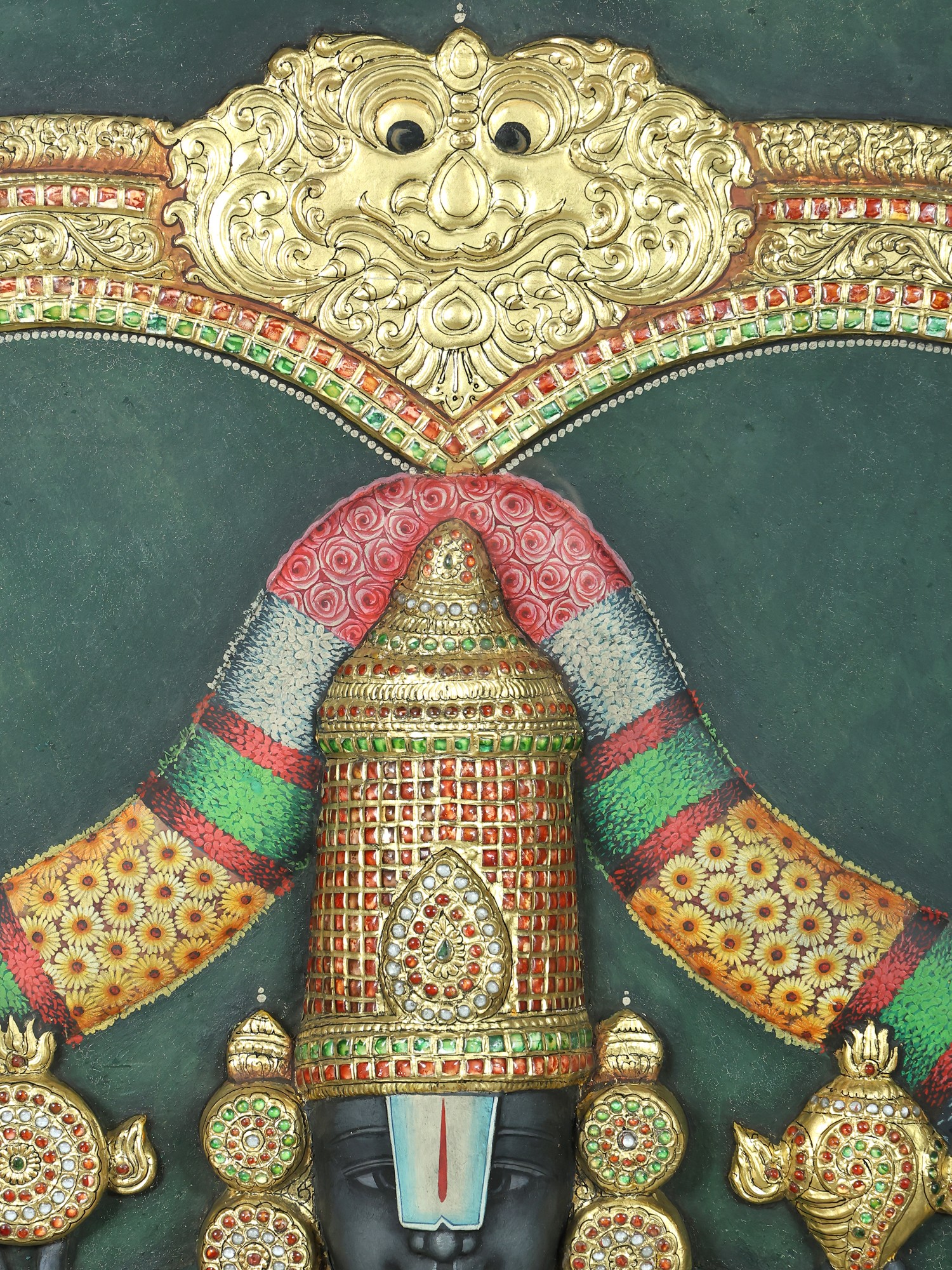 Lord Venkateswara (Tirupati Balaji) with Intricate Details | Handmade Tanjore Painting | Traditional Colors with 24 Karat Gold | With Frame