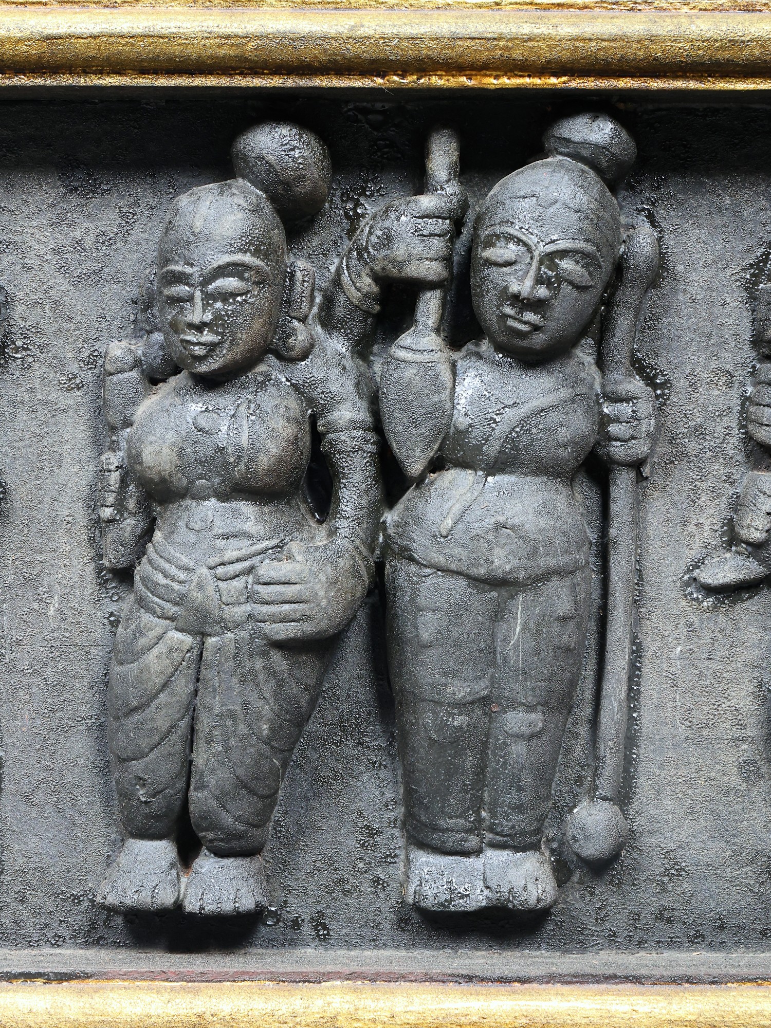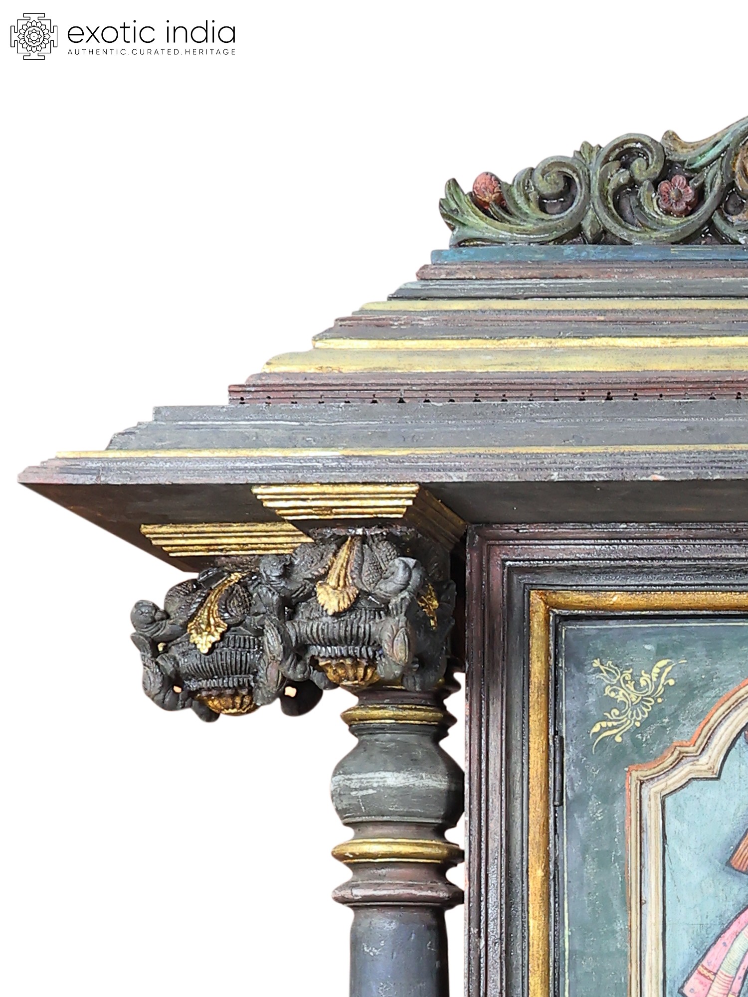 Standing Lord Krishna with Rukmini | 24 Karat Gold Work | Embossed Tanjore Painting with Vintage Frame
