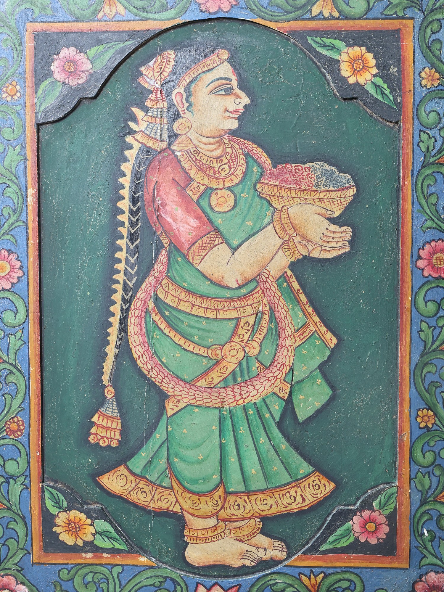Divine Lord Shrinathji Playing the Flute | Pichwai Painting on Cotton | by Narendra