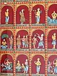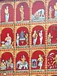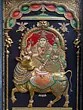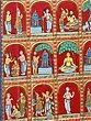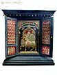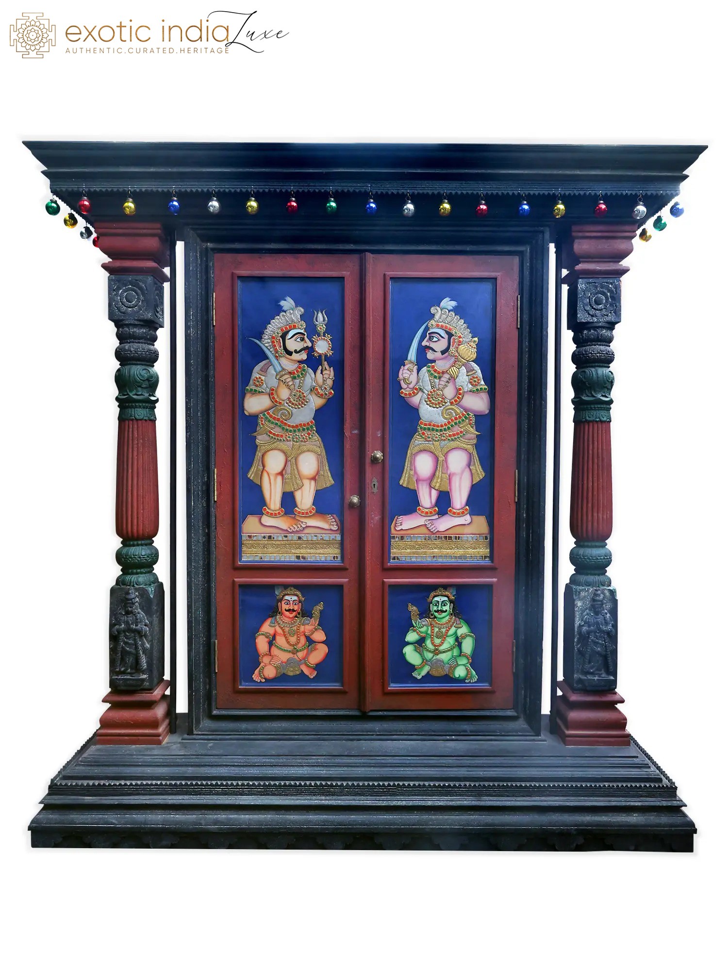 Flanking the central masterpiece are two intricately decorated doors, opening to reveal a treasure trove of visual narratives. Each door is adorned with numerous smaller panels, meticulously painted, that illustrate various episodes from Hindu mythology and the lives of the gods. These detailed vignettes offer glimpses into ancient tales, moral lessons, and the cosmic play of the divine. On the left door, one can observe scenes of devotion, celestial events, and the interplay of cosmic forces, while the right door might depict different mythological narratives, showcasing the breadth and depth of Indian spiritual traditions. Below these, two striking panels present further divine figures. One showcases the beloved elephant-headed deity, Lord Ganesha, alongside other divine beings, while the other depicts a powerful depiction of Lord Shiva in a dynamic pose, surrounded by ascetics and celestial attendants. These supplementary panels enrich the visual experience, providing a holistic representation of the divine pantheon and their significant roles in the cosmic order.