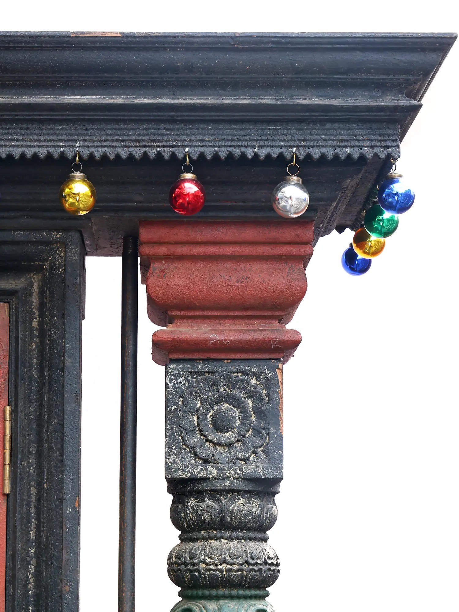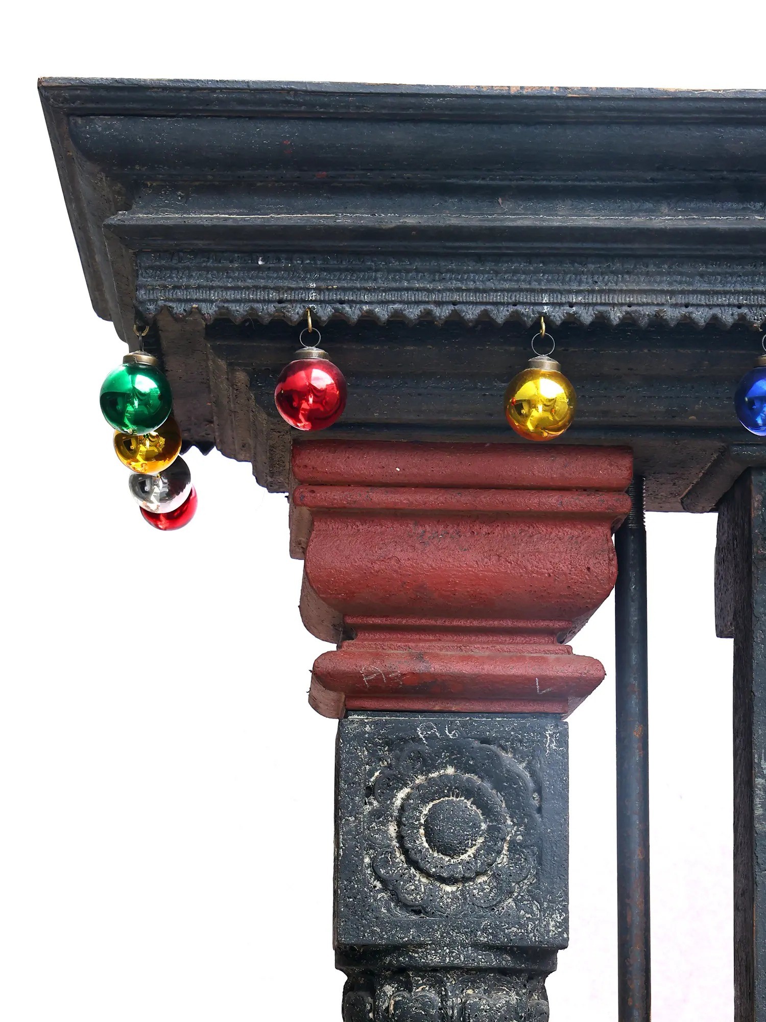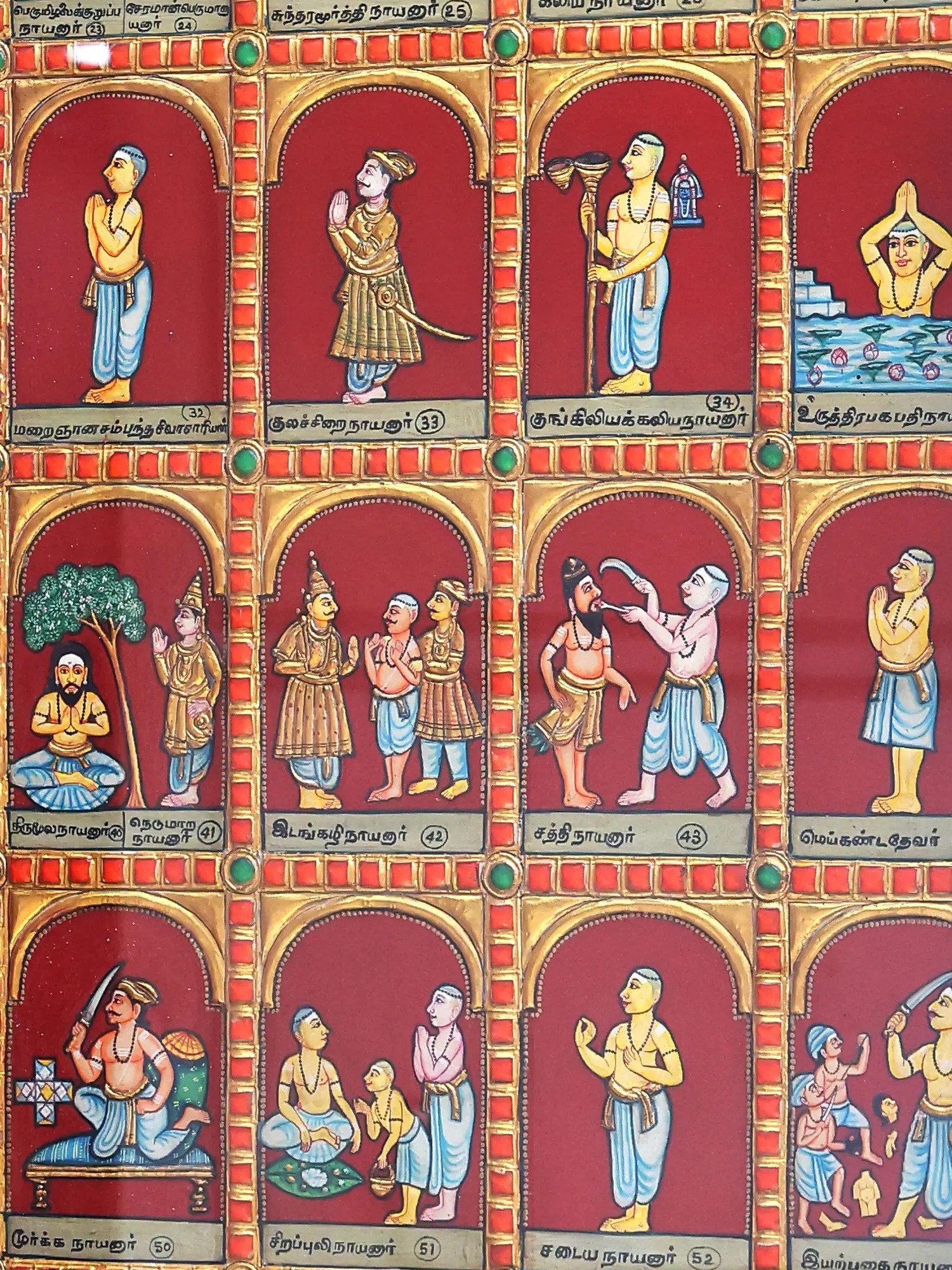 This monumental eight-foot Tanjore painting, with its scale and sacred theme, blends art with architecture. Standing in front of it, you become a part of its universe; the experience of Darshana engulfs and invites you, and with that, momentarily, the boundary between viewer and viewed disappears.