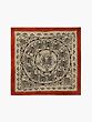 This Madhubani art on handmade paper portrays humans dancing around a pair of peacocks in exquisite detail, all in black and white tones. In this artwork, the dancers and peacocks are depicted with delicate lines and patterns, showcasing the artist's skill and creativity.