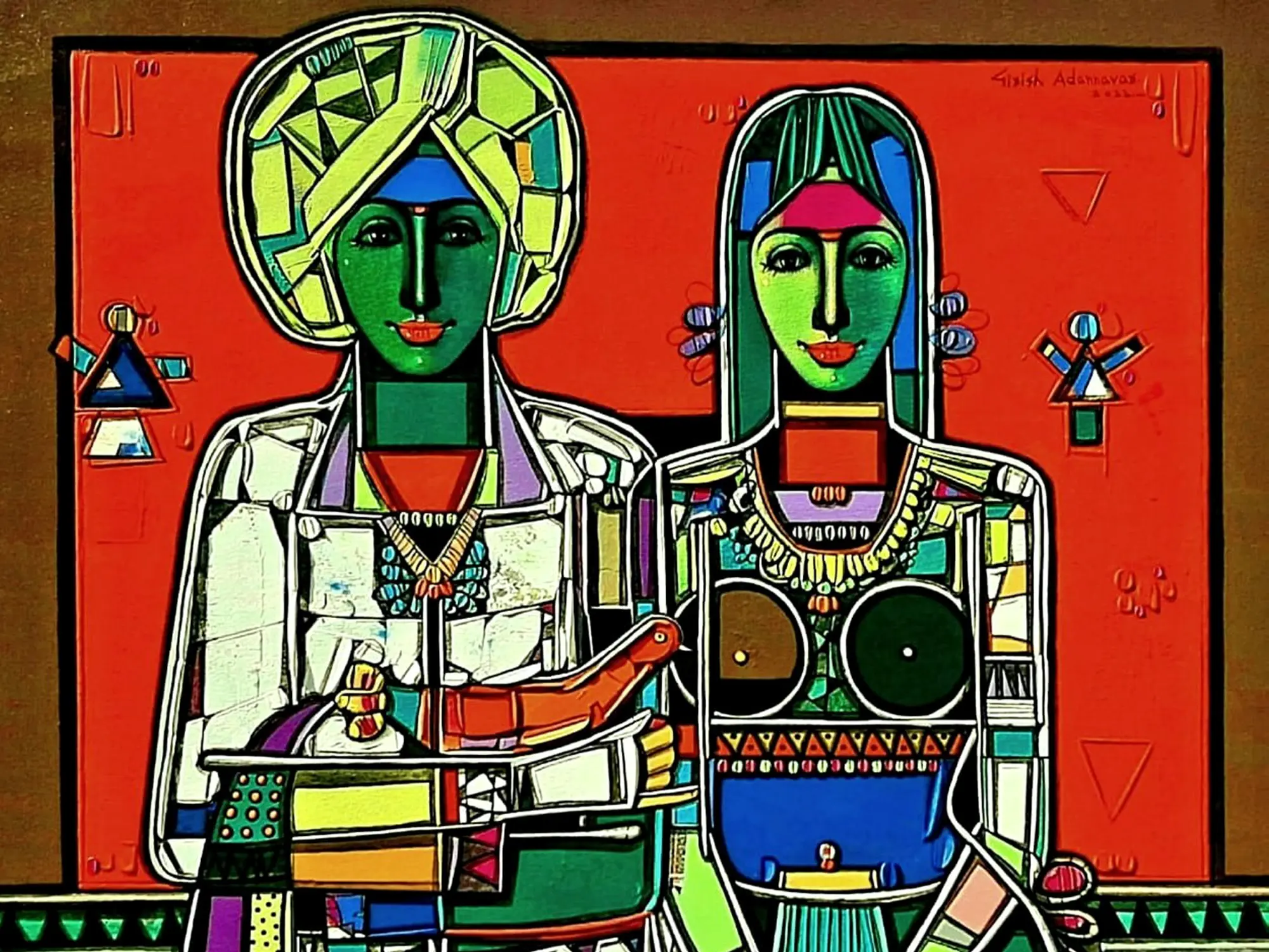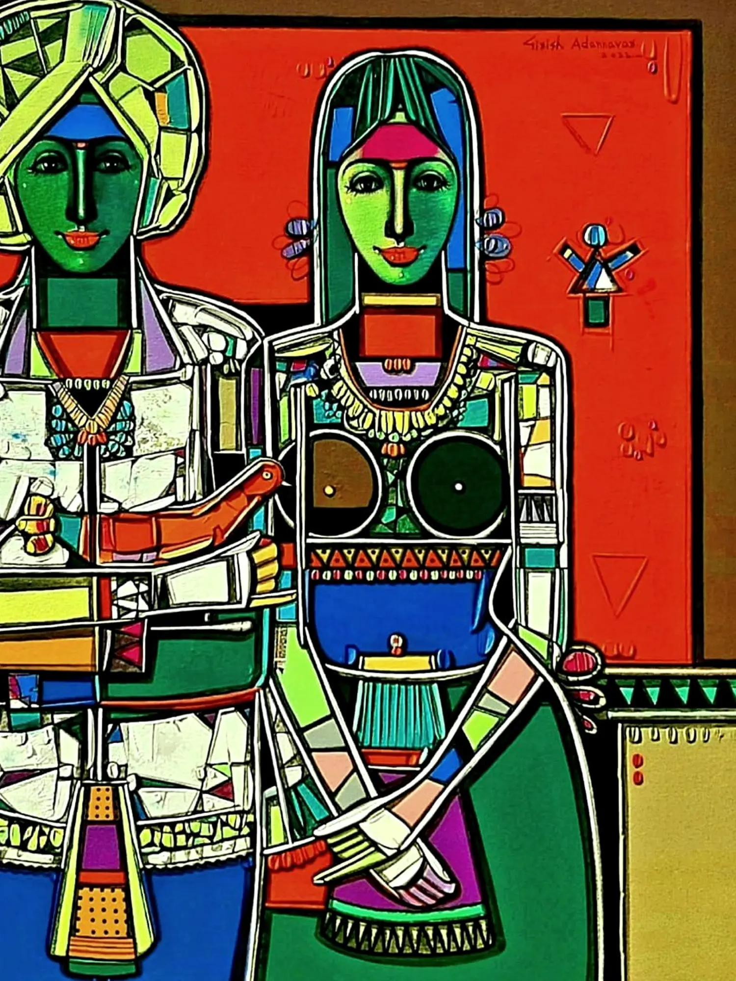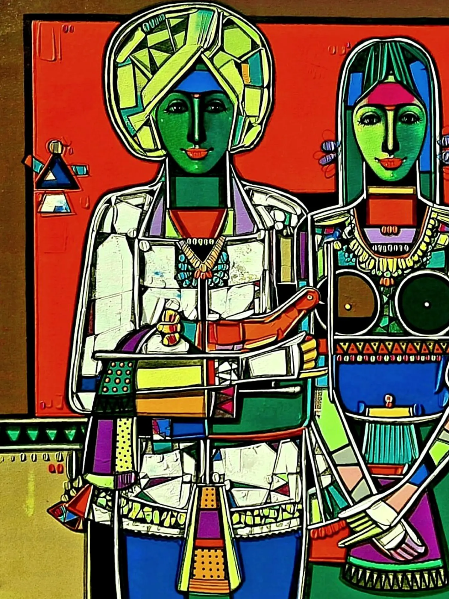 Behold the vibrancy of an Indian couple depicted in multicoloured acrylic art. This painting captures the essence of togetherness and cultural richness through a spectrum of hues. It embodies the philosophy of unity in diversity, where the intertwining colours mirror the complexities and harmonies of human relationships. With each brushstroke, the canvas narrates tales of love, resilience, and celebration, inviting viewers to immerse themselves in the kaleidoscope of emotions.