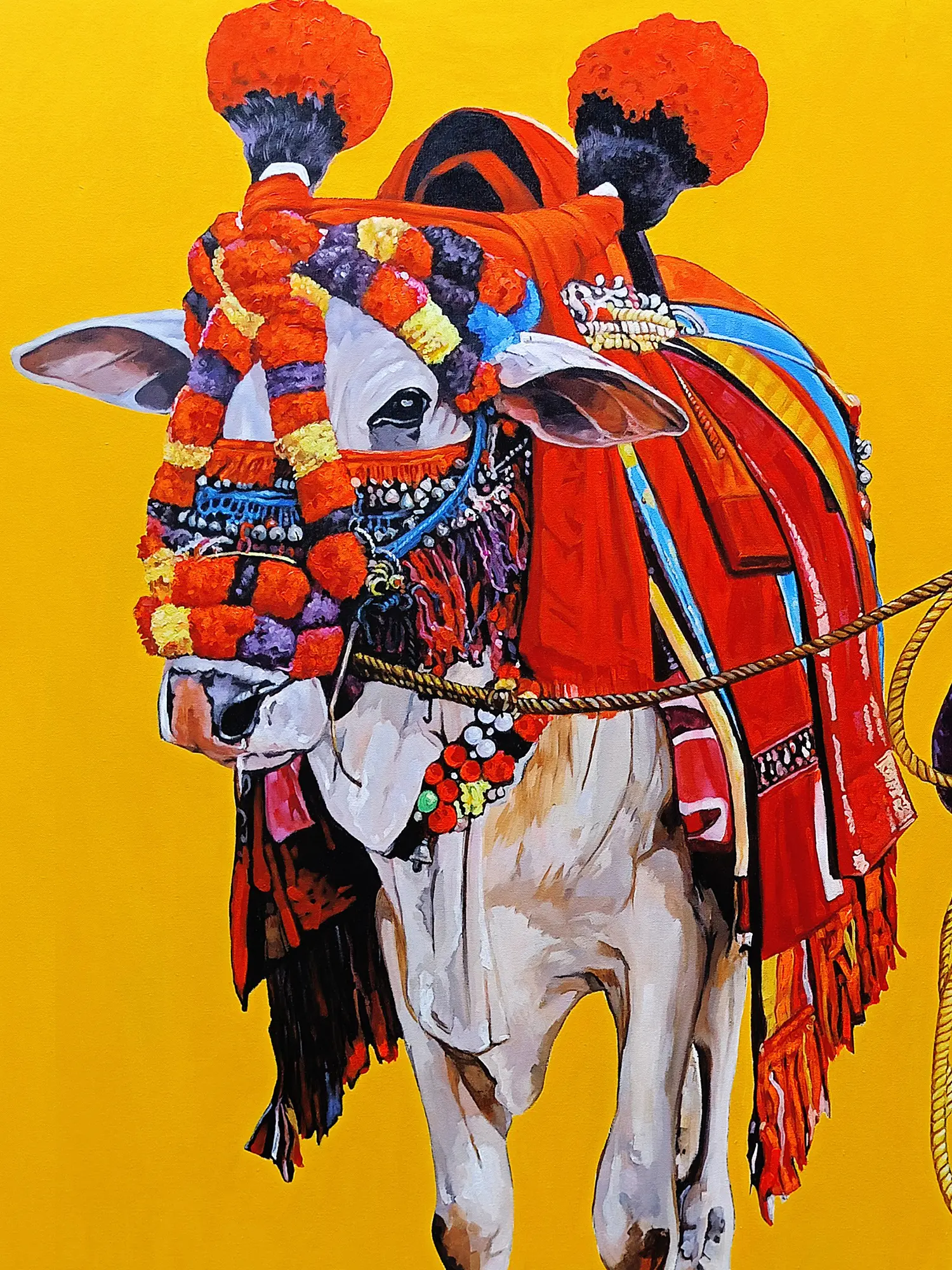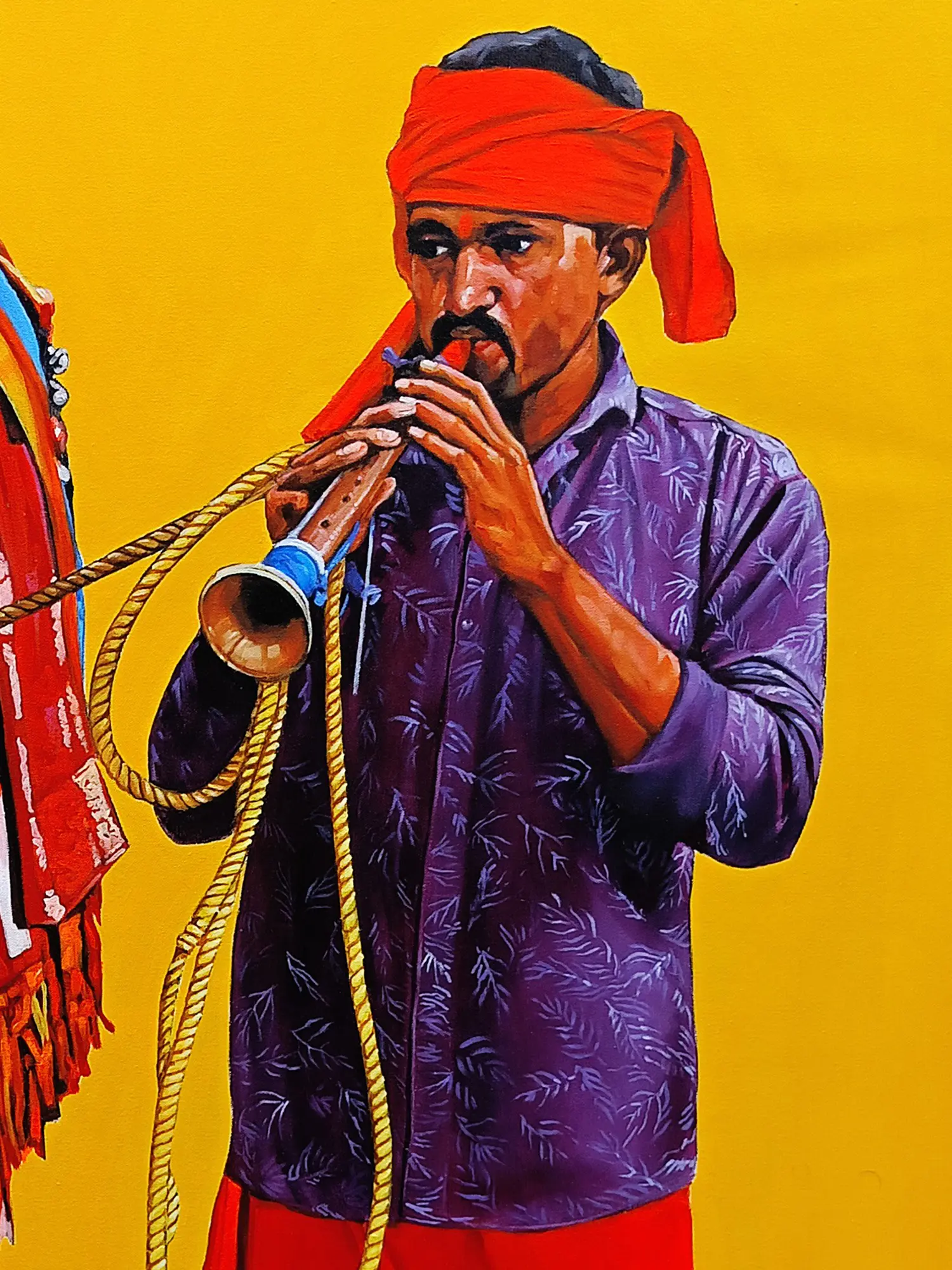 Indian Old Man Waving a Religious Flag | Painting by Noharika Deogade