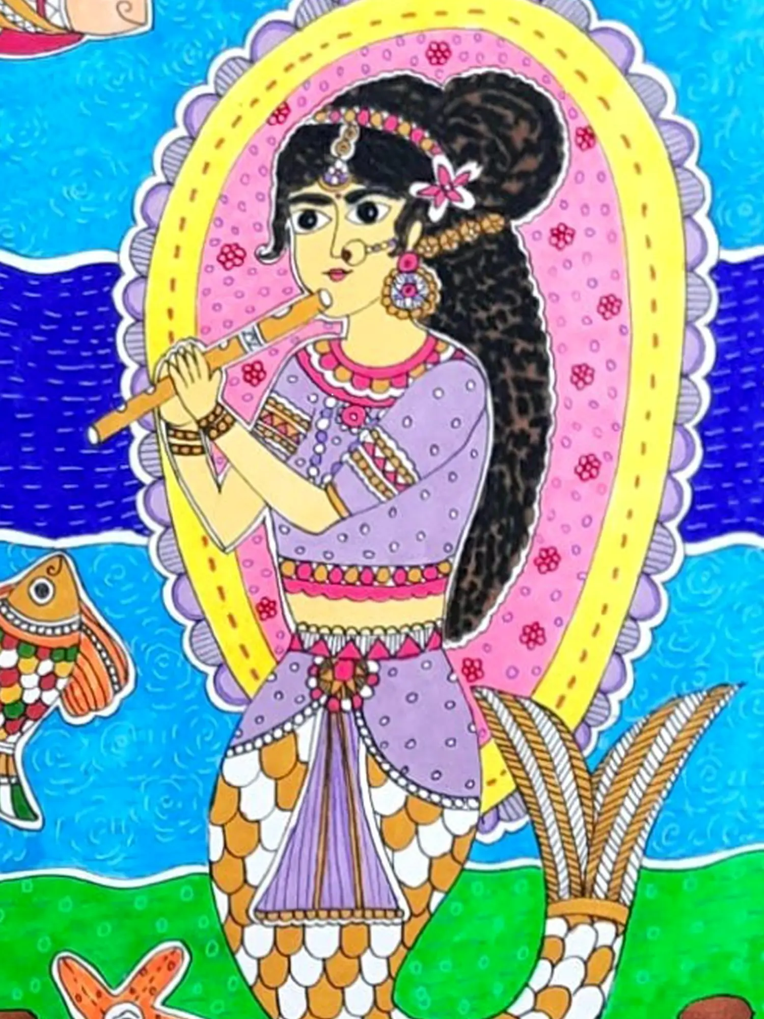 Embrace the enchantment of the Jalpari in this captivating watercolour creation. The artist skillfully captures the mystical allure of a water nymph playing a flute, combining ethereal beauty with musical grace. The watercolour medium adds a dreamlike quality, making this artwork a pot of colour and form. Whether you're a lover of mythology or simply appreciate the beauty of fantasy, let the charm of this piece transport you to a world where music meets magic.