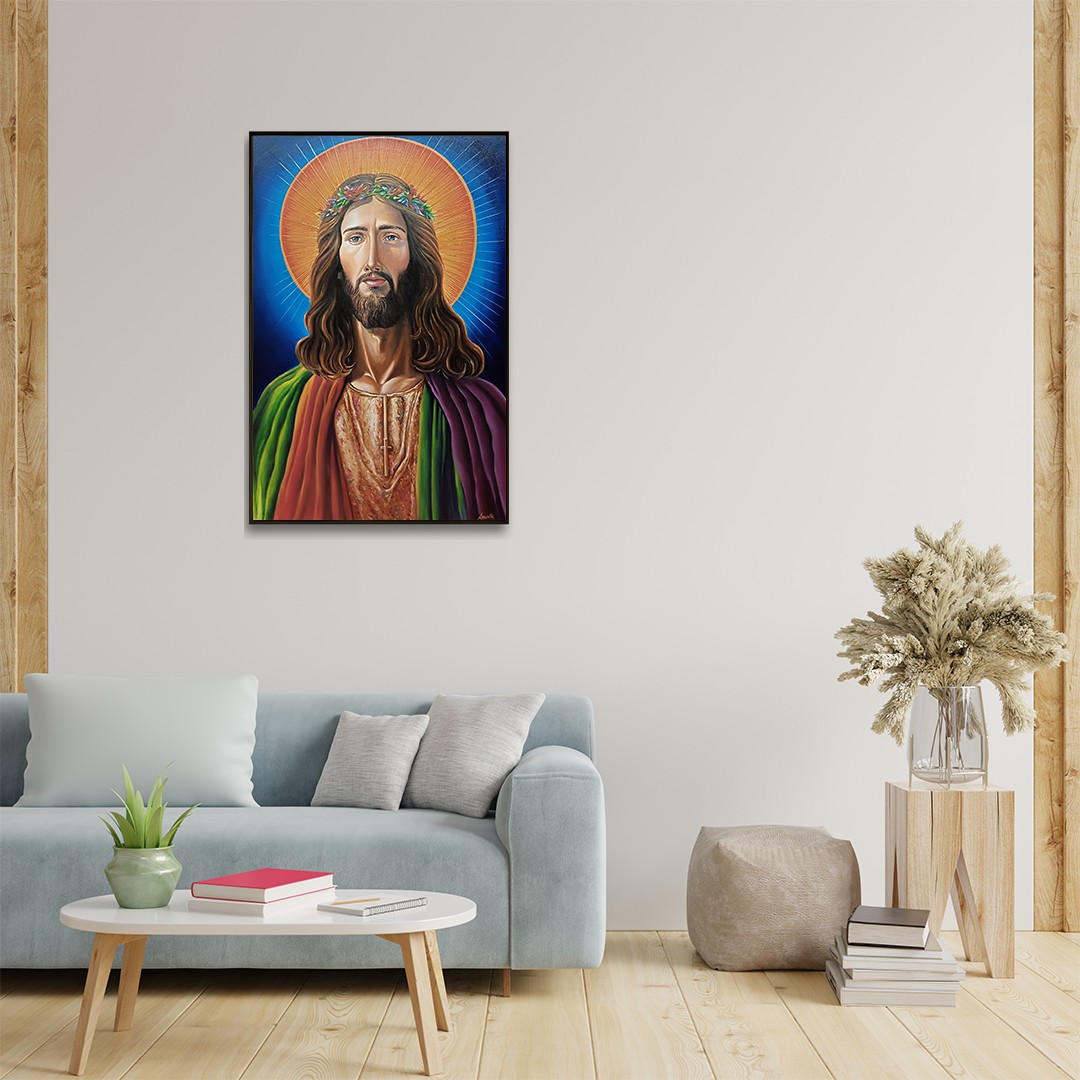 Souvik Hazra's artistic skill is evident in the masterful execution of this piece. The smooth blending of colors, the meticulous attention to detail in facial features and the expressive use of light and shadow all contribute to the emotional depth and spiritual resonance of this painting. Hazra’s style blends traditional techniques with a modern sensibility, producing a piece that is both timeless and relevant to contemporary audiences. The artist's unique approach invites viewers to engage with the timeless image of Jesus in a fresh and meaningful way. The painting serves as a testament to Hazra's artistic talent and his ability to infuse a familiar subject with new life and meaning. This piece would be an excellent addition to any home or gallery, inspiring reflection and adding a captivating focal point to any space.