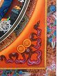 A Thangka is a traditional Tibetan Buddhist painting that usually depicts a Buddhist Deity (Buddha or Bodhisattva), a scene, or a mandala. These paintings are considered important paraphernalia in Buddhist rituals. They are used to teach the life of the Buddha, various lamas, and Bodhisattvas to the monastic students, and are also useful in visualizing the deity while meditating. One of the most important subjects of thangkas is the Bhavacakra (the wheel of life) which depicts the Art of Enlightenment. It is believed that Thangka paintings were developed over the centuries from the murals, of which only a few can be seen in the Ajanta caves in India and the Mogao caves in Gansu Province, Tibet. Thangkas are painted on cotton or silk applique and are usually small in size. The artist of these paintings is highly trained and has a proper understanding of Buddhist philosophy, knowledge, and background to create a realistic and bona fide painting.