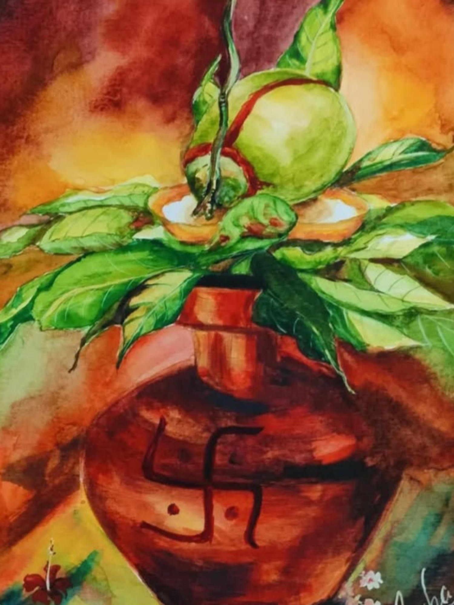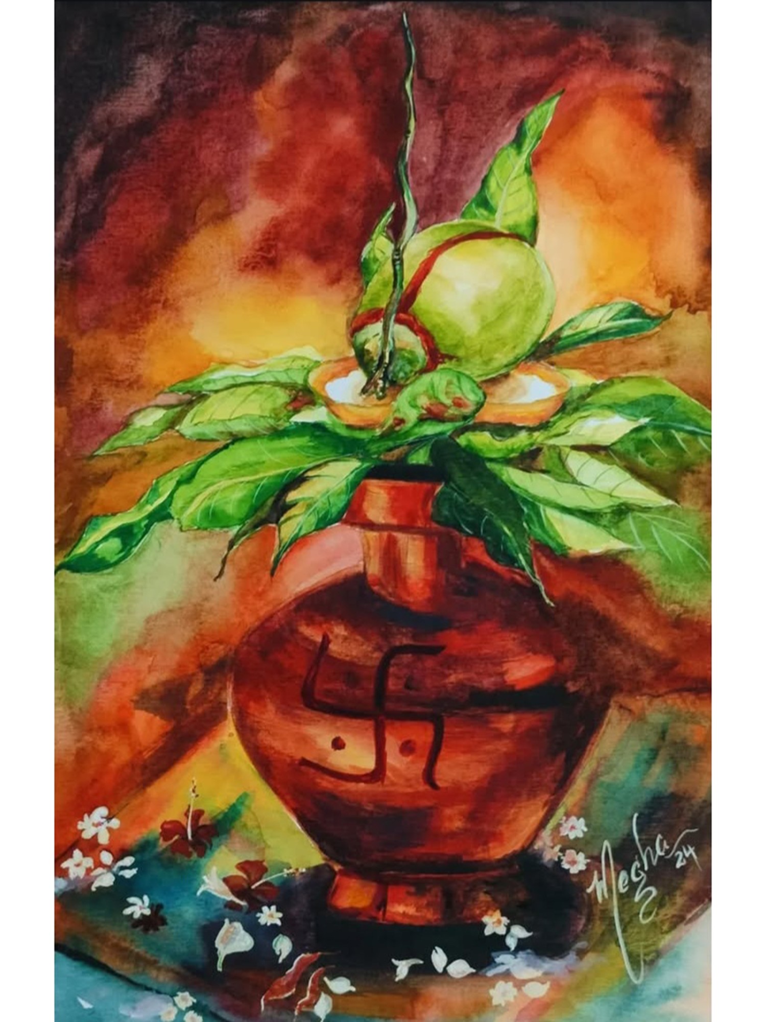 Woman Dancing With Kalasha With Shloka | Phad Painting by Kalyan Joshi