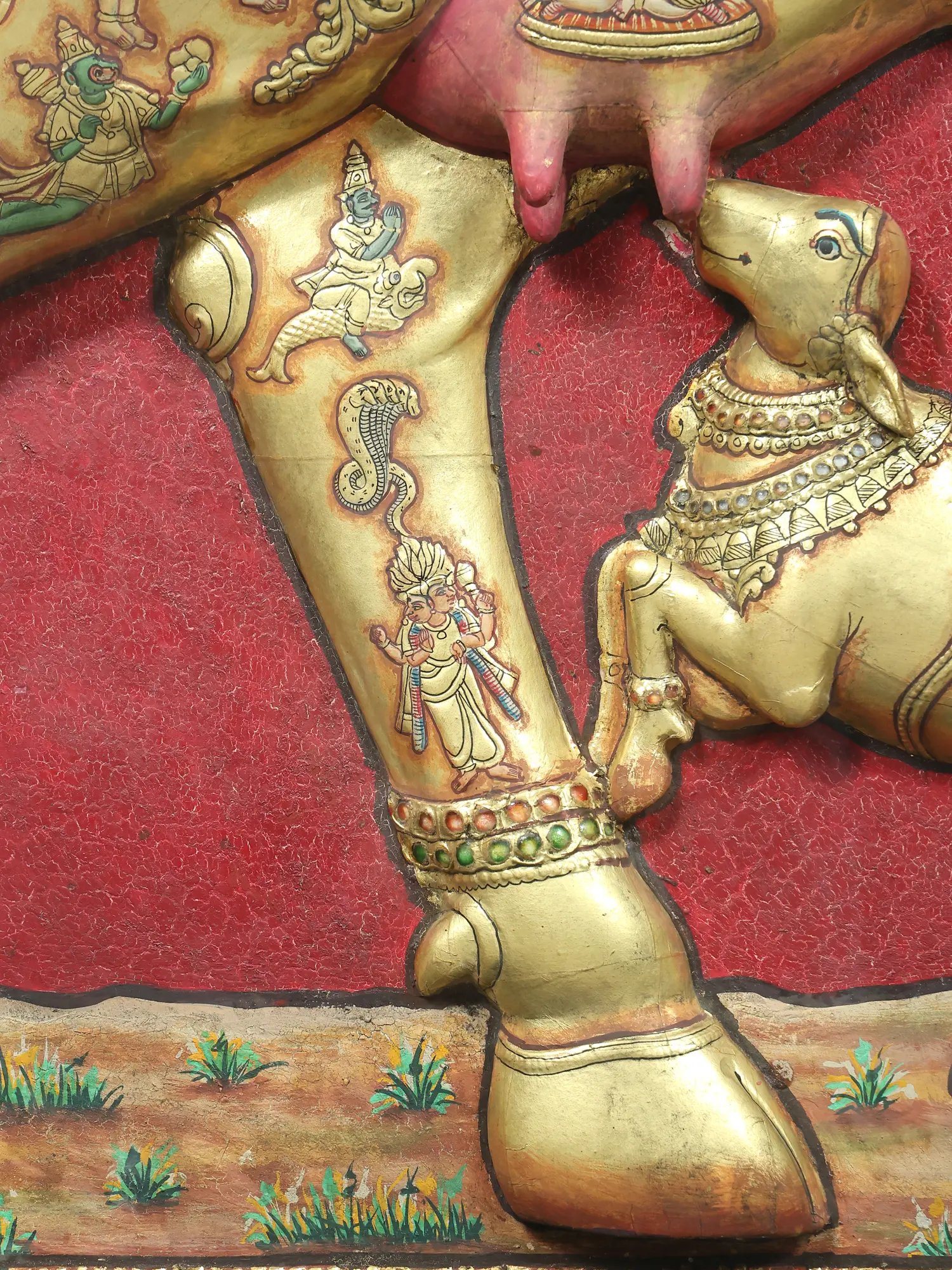 Kamadhenu: All Gods Live Inside the Sacred Cow (Embossed Three Dimensional Tanjore Painting)