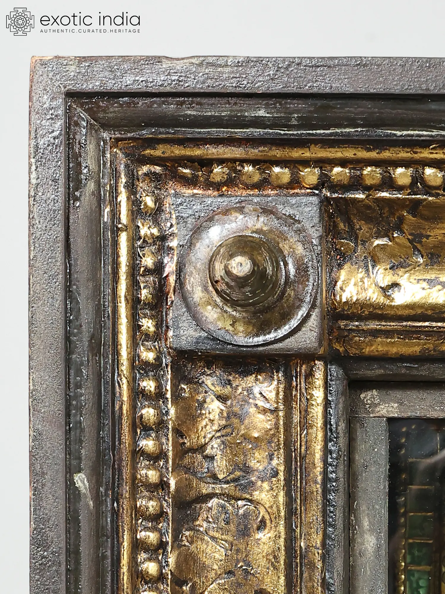 The commanding presence of this artwork, with its substantial height of 56 inches and width of 68 inches, ensures it will be a striking centerpiece in any space. The detailed embossing showcases a myriad of figures, telling stories that unfold with each glance. The radiant gold work catches the light beautifully, highlighting the divine forms and intricate motifs that adorn the sacred form.