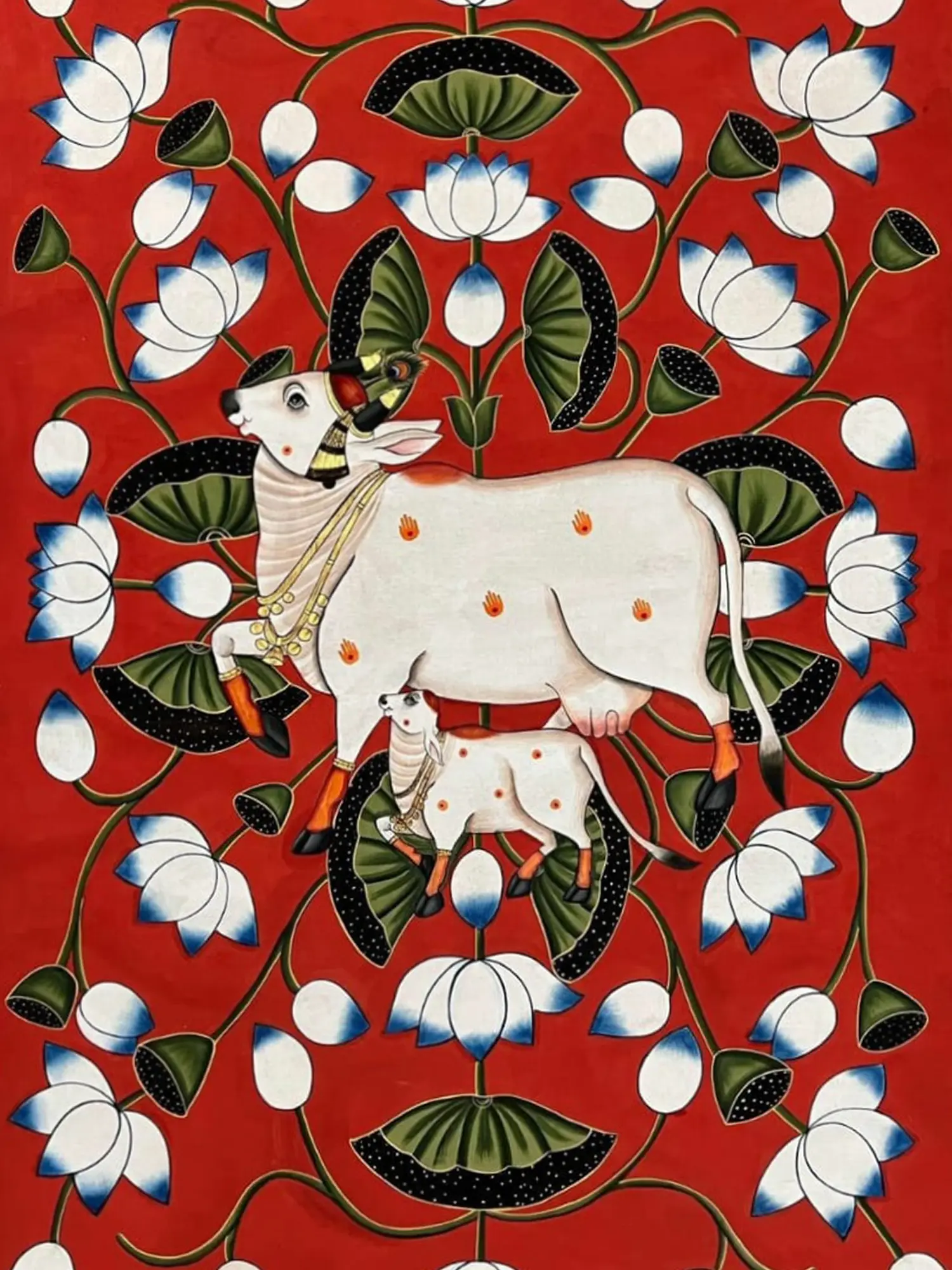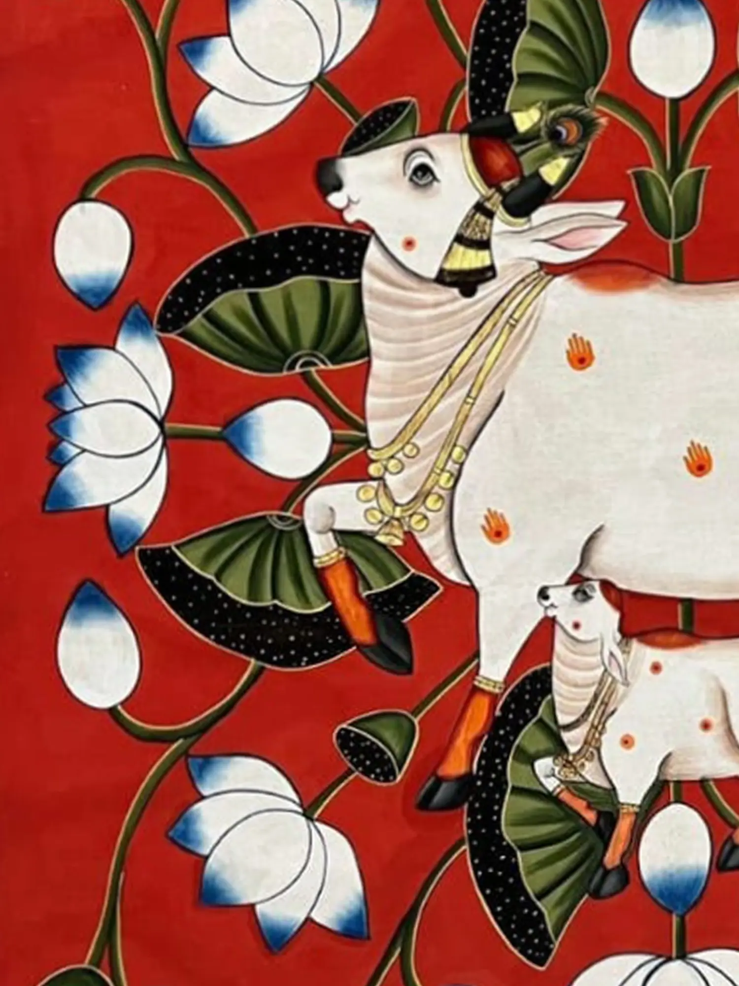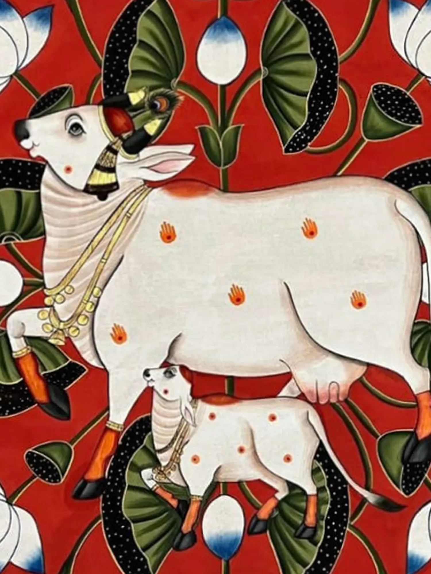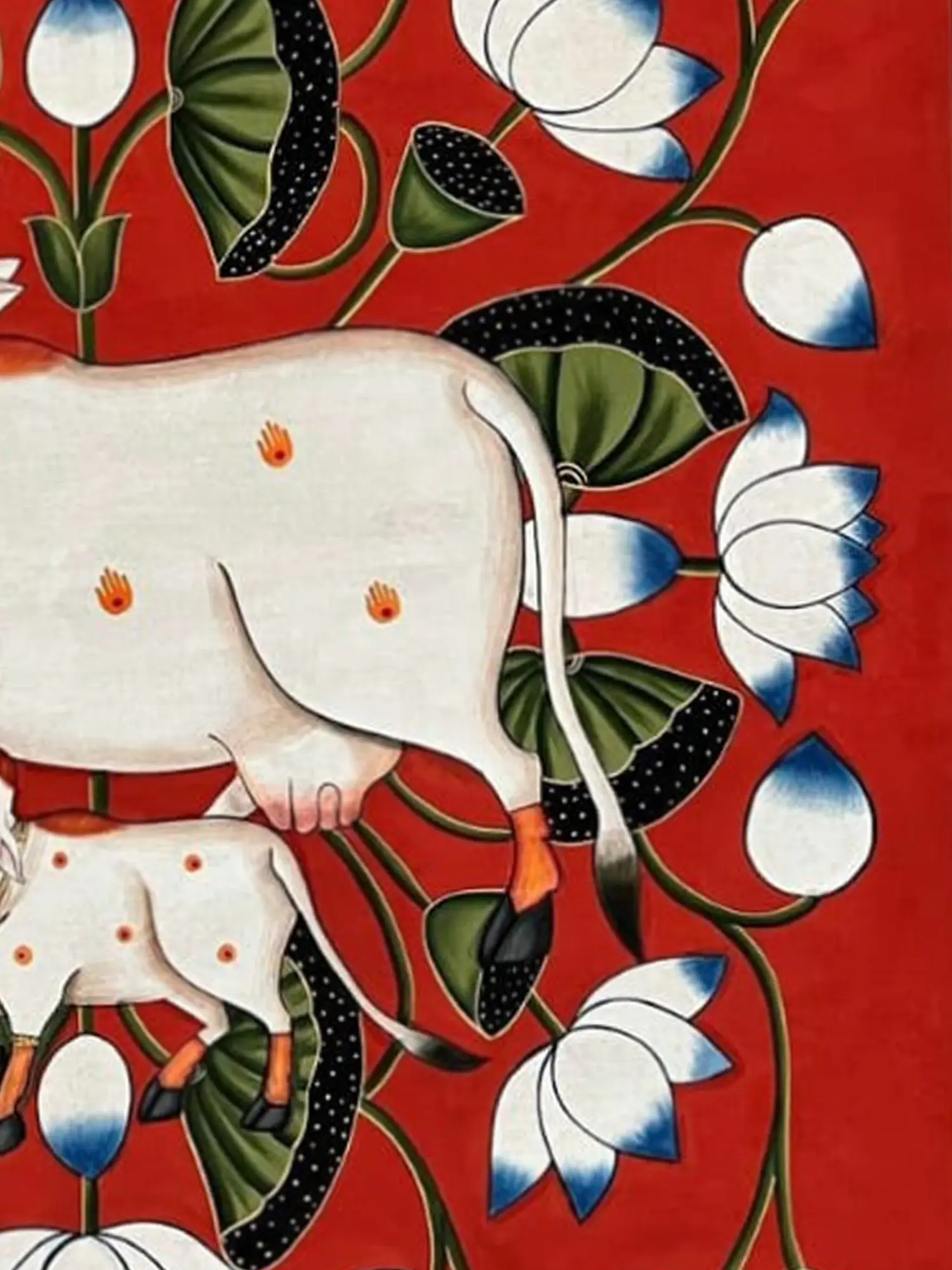 Shrinathji with Kamdhenu Cow | Natural Color on Cloth | By Jagriti Bhardwaj