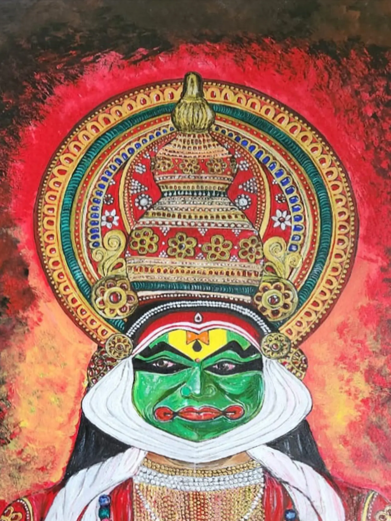Face Mask of Kathakali | Acrylic on Canvas | Roshni Jashnani
