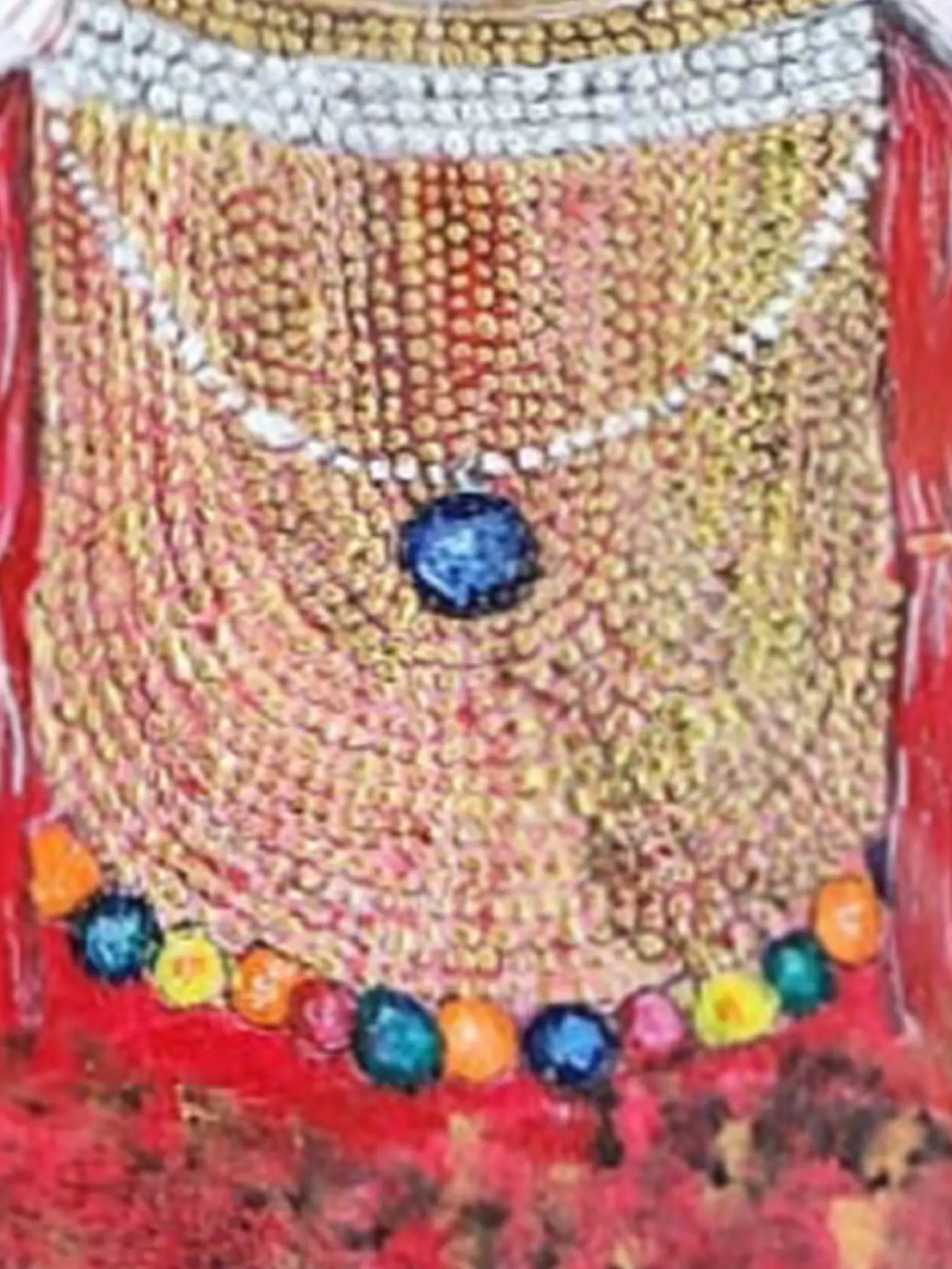 Crafted with a masterful blend of mixed media, this artwork showcases the artist's profound skill and dedication. Each stroke is thoughtfully placed, layering textures and colors to create a tactile and visually rich experience. The chosen materials are expertly handled to evoke the opulence and vibrancy of the dancer's elaborate costume and headdress, ensuring a piece that is both substantial and refined.