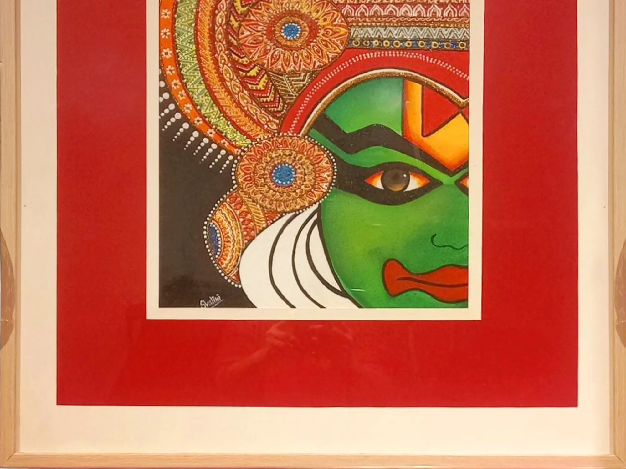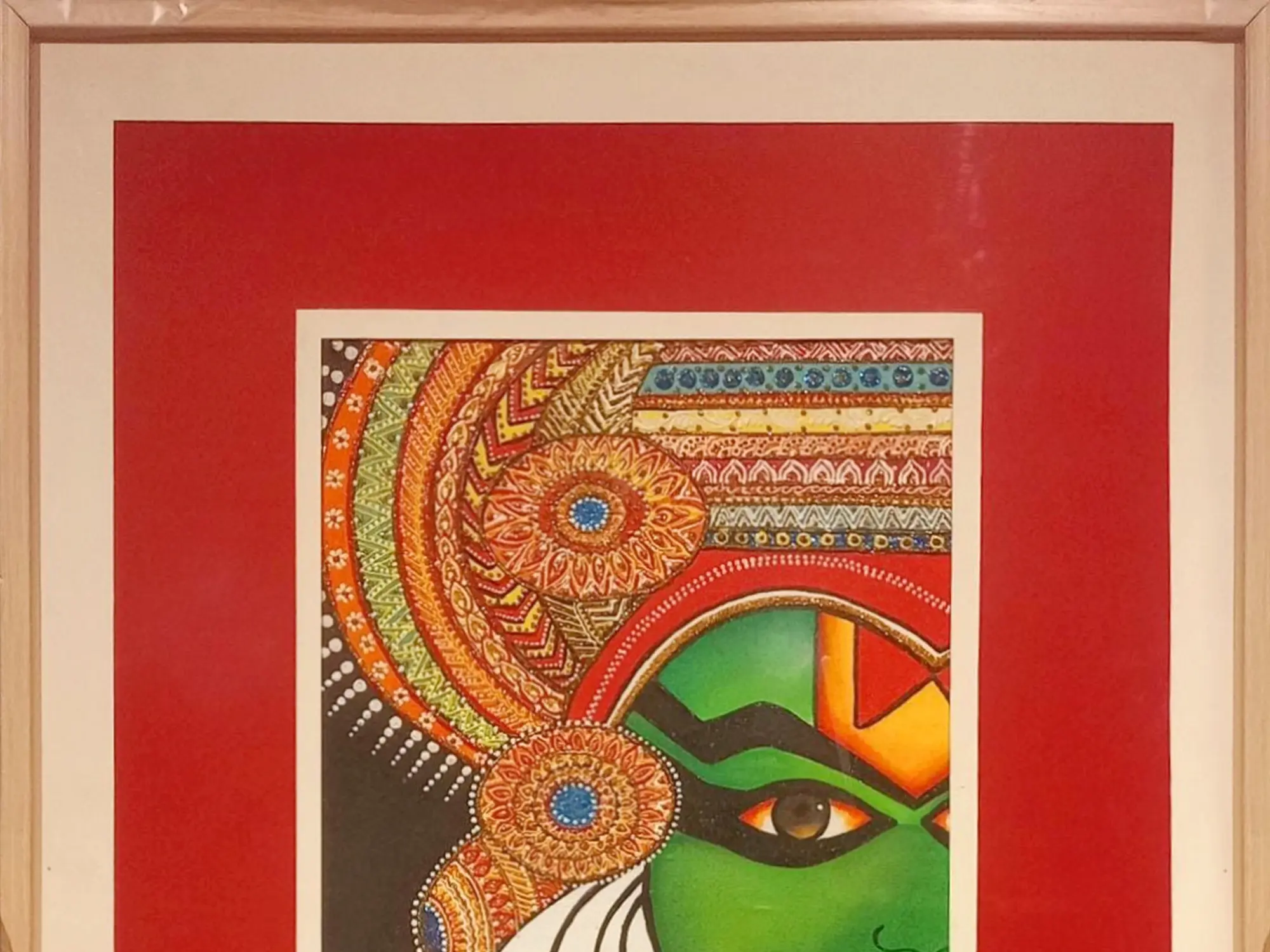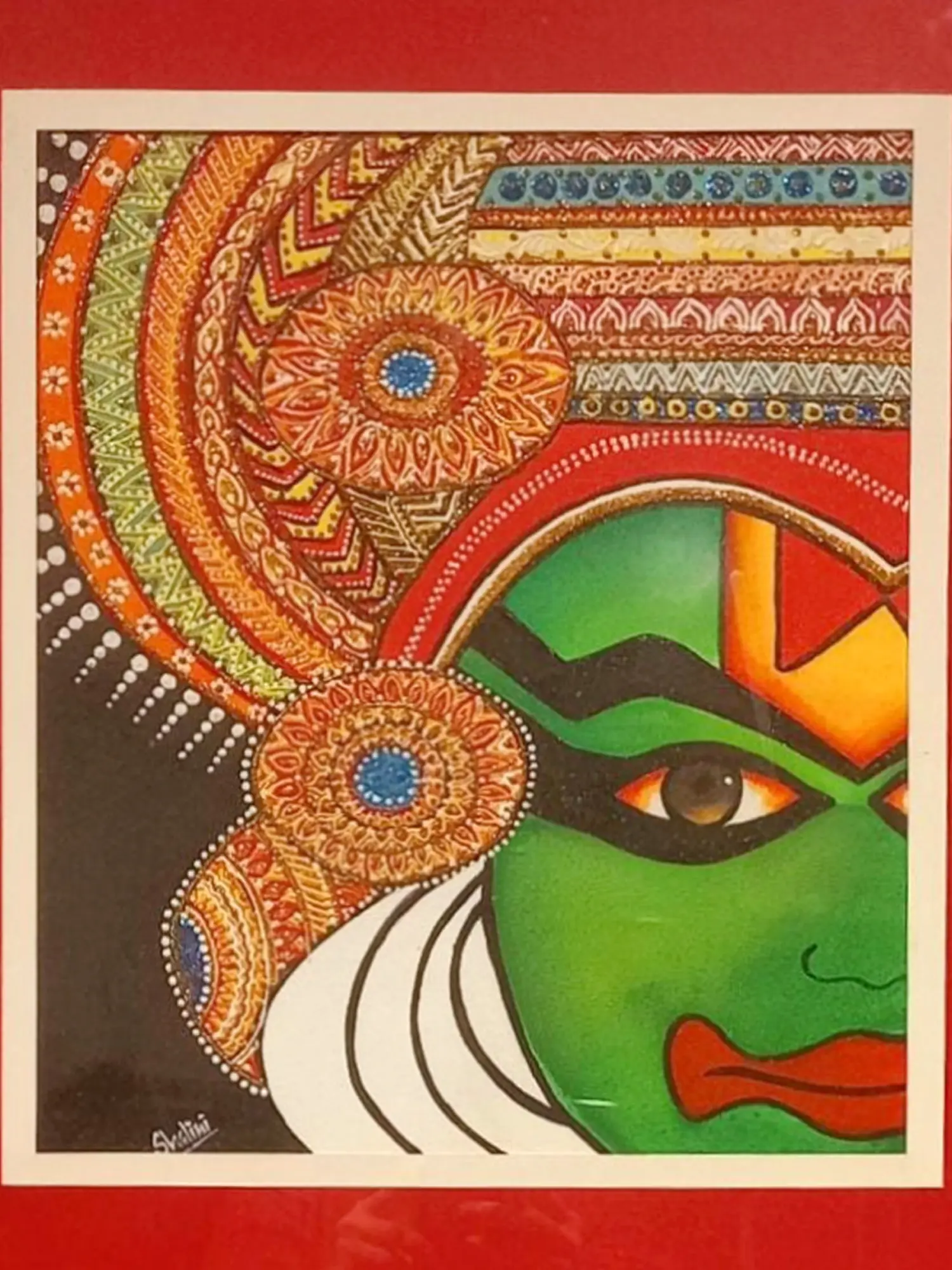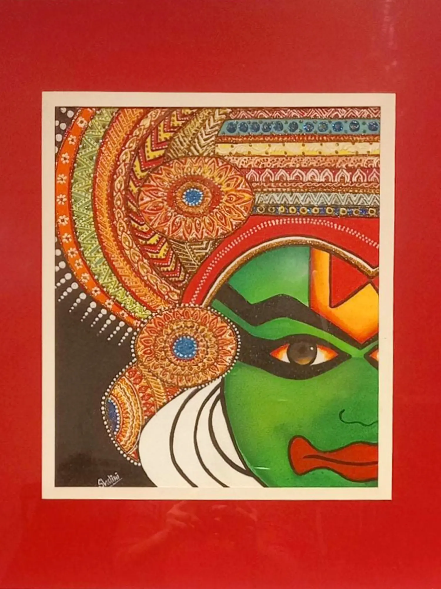Experience the dramatic allure of Kathakali with this mesmerising acrylic painting, capturing the essence of this ancient Indian dance form. The vivid colours and expressive strokes bring to life the elaborate makeup and deep emotions of the Kathakali performer. Each brushstroke is a testament to the artist's skill and dedication, conveying the intensity and passion of the performance. Immerse yourself in the world of myth and legend, where every expression tells a story of love, betrayal, and redemption.
