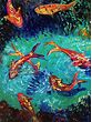 In a masterful symphony of vivid hues and celestial brushwork, this masterpiece by Konika Banerjee mesmerises the senses and transcends the mortal realm. Each delicate stroke, like a whispered caress from the heavens, unveils a tapestry of ethereal beauty. The resplendent scales of the koi fish shimmer like molten gold, capturing the essence of divine grace and wisdom. Legends whisper of their mystical nature, as they symbolise prosperity, transformation, and the indomitable spirit. The tranquil waters become a mirror of dreams, reflecting the ethereal dance of serenity and strength. This enchanting masterpiece invites you to immerse yourself in the boundless depths of artistic reverie.
