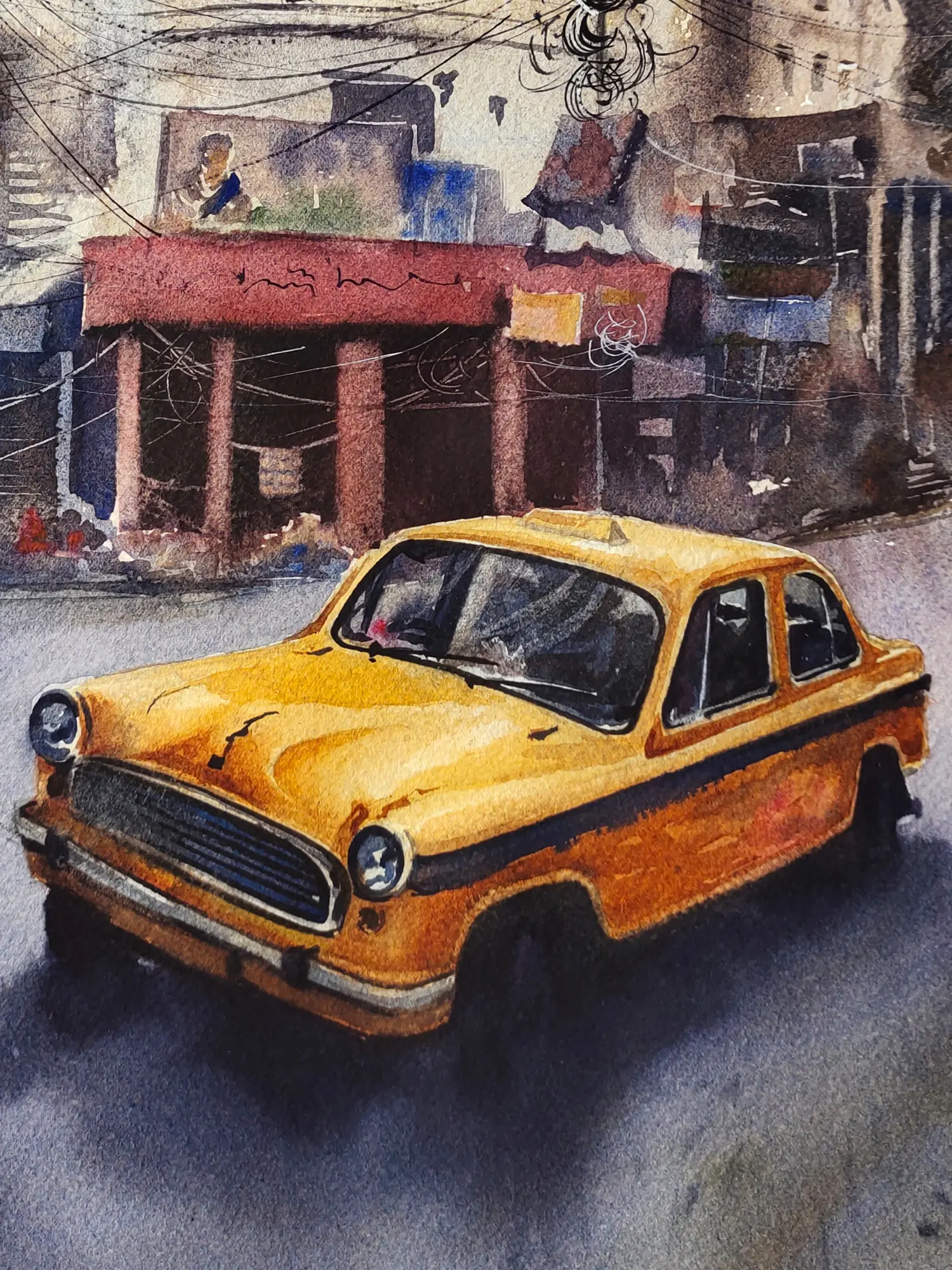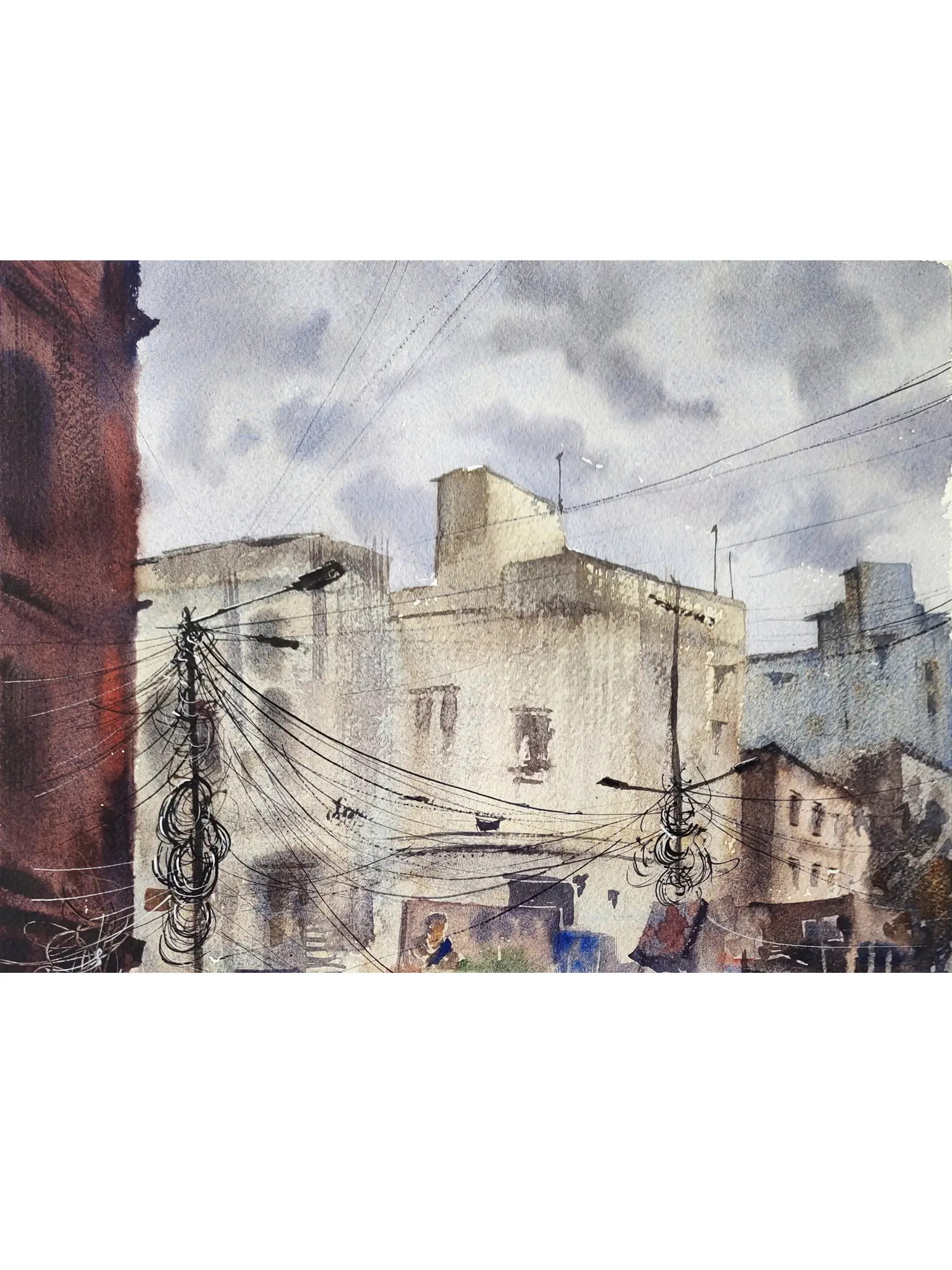 This painting of Kolkata's cityscape captures the bustling energy and vibrant colours of the bustling metropolis. From bustling markets to colonial architecture, each stroke resonates with the city's rich cultural heritage and urban vitality. The painting celebrates the eclectic charm and timeless allure of Kolkata's cityscape, inviting viewers to explore its labyrinthine alleys and vibrant neighbourhoods.